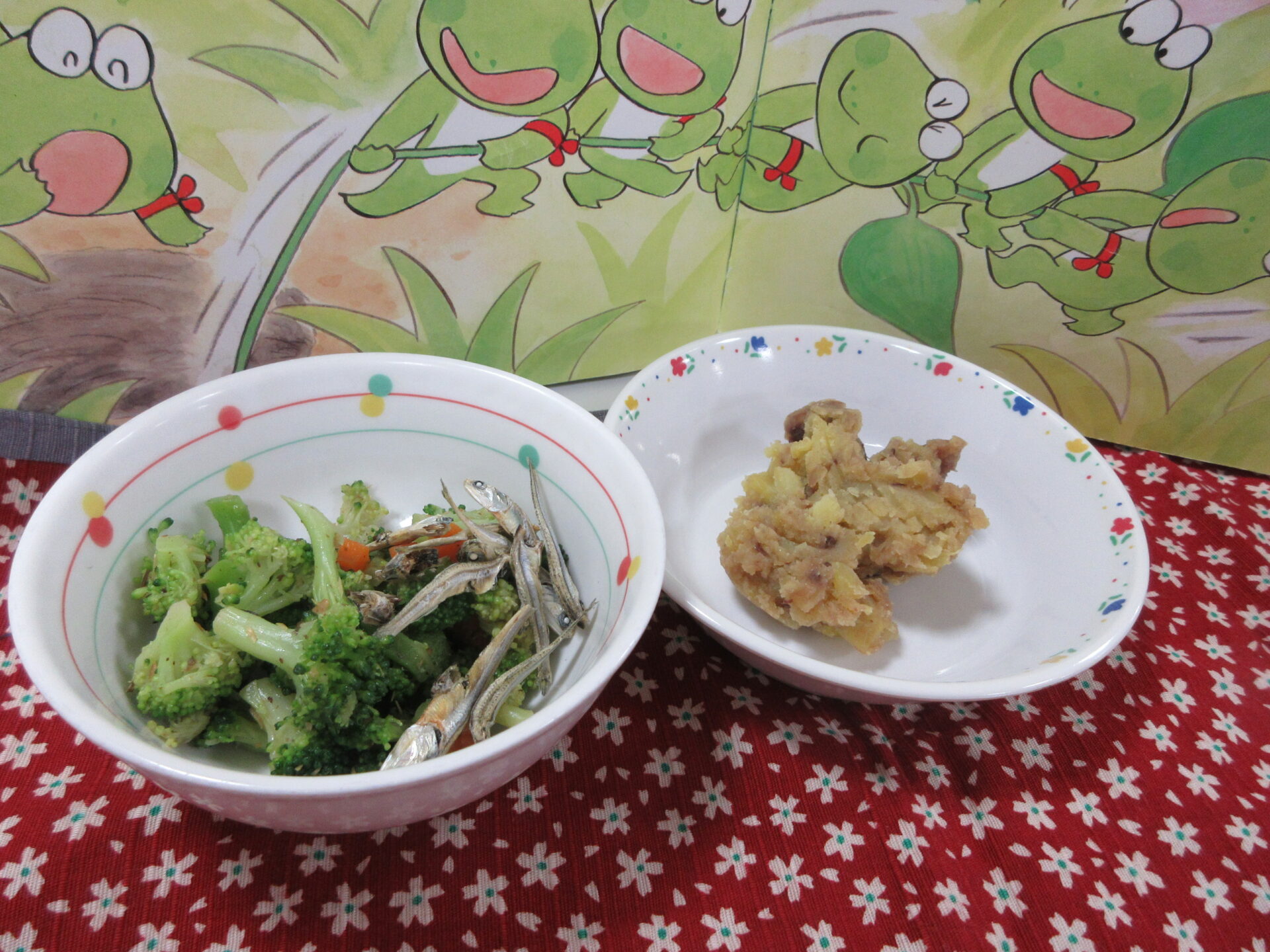 【🦊きつねうどん 🍠さつま芋小豆煮 🥦ブロッコリーのおかか和え 食べる煮干し】