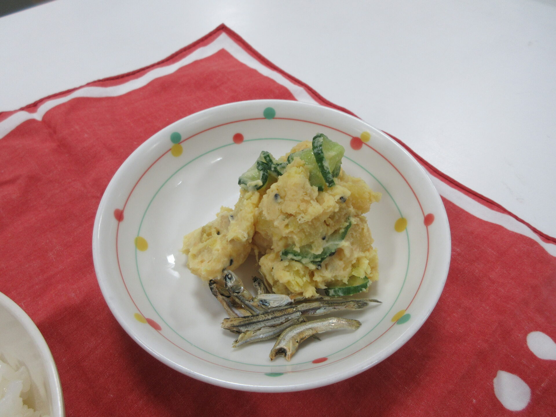 麻婆豆腐には、🥕人参や椎茸、ネギなどが入り、ニンニクや生姜の風味で白米にとても良く合いました。さつま芋のポテトサラダはコク旨で甘く美味しかったです。