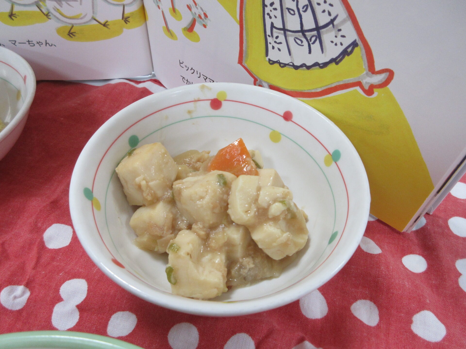 【ご飯(白) 麻婆豆腐 🍠さつま芋の黒ゴマきなこサラダ 野菜スープ 食べる煮干し】