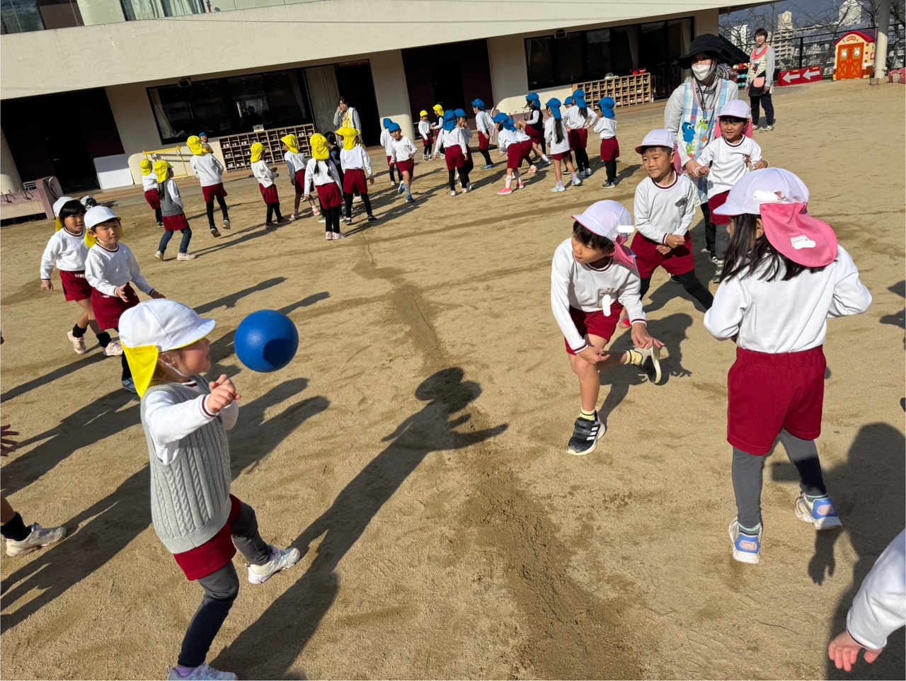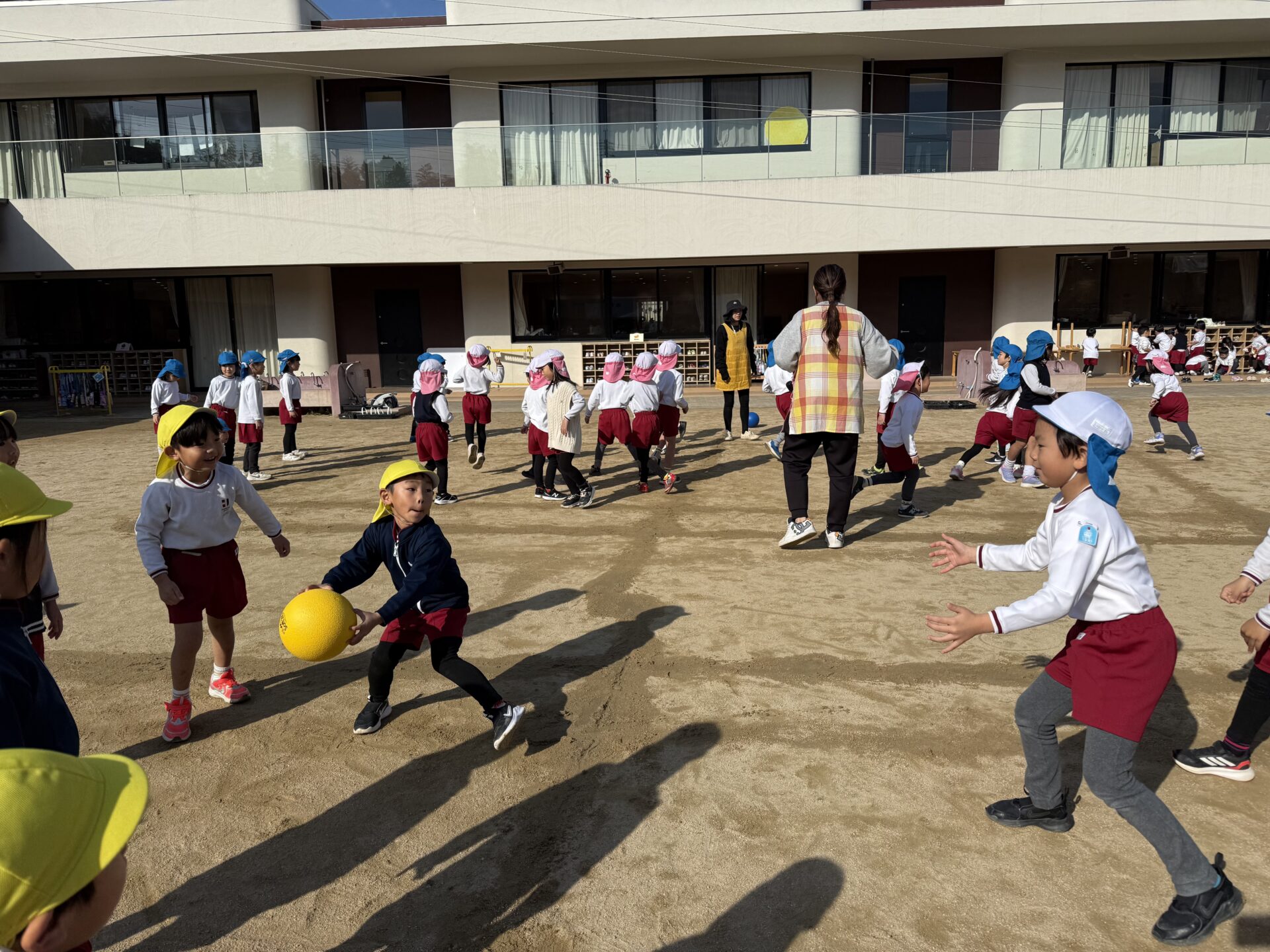 終業式と大掃除を終えた後は園庭へ出て、クラス対抗のドッジボール大会。