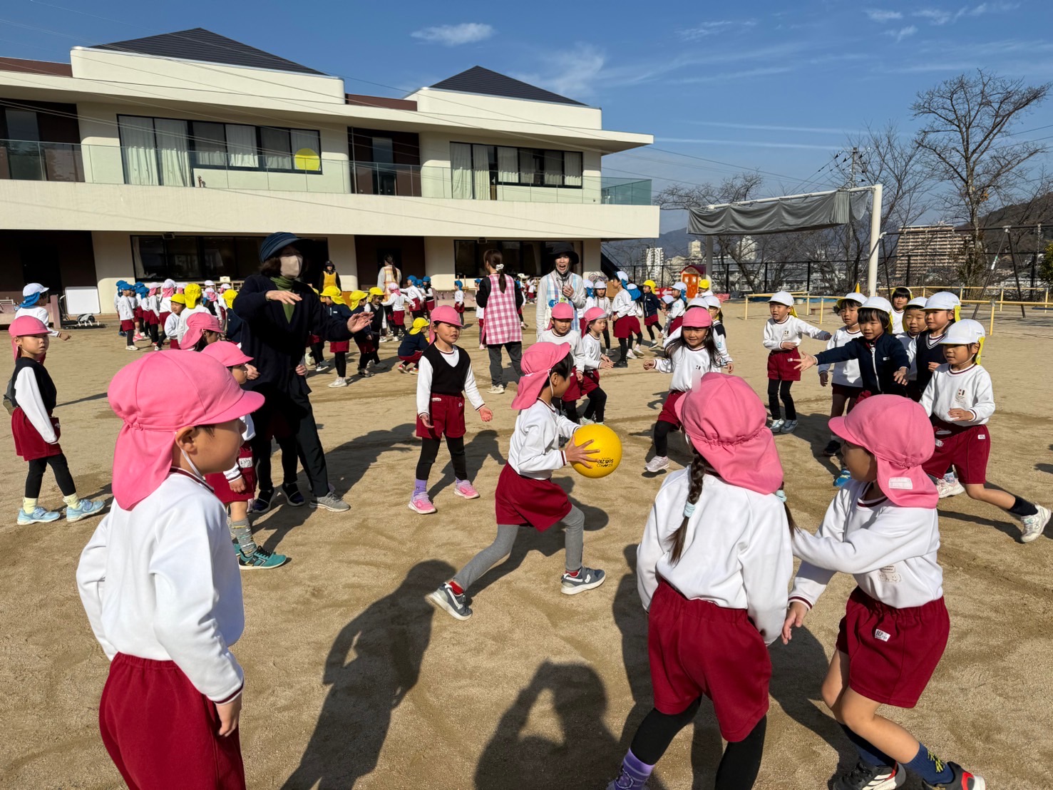 終業式と大掃除を終えた後は園庭へ出て、クラス対抗のドッジボール大会。
