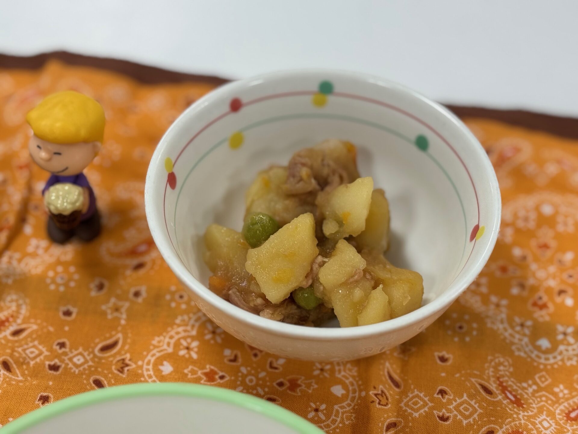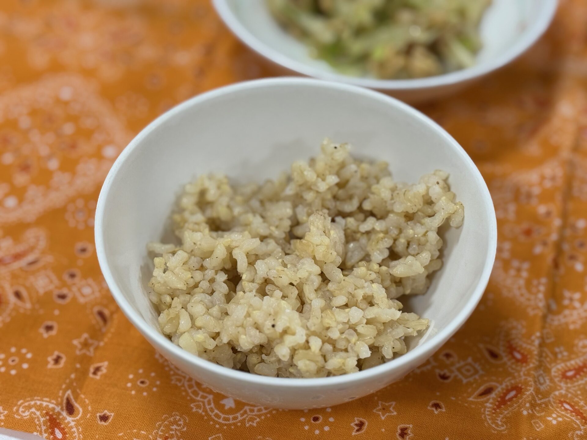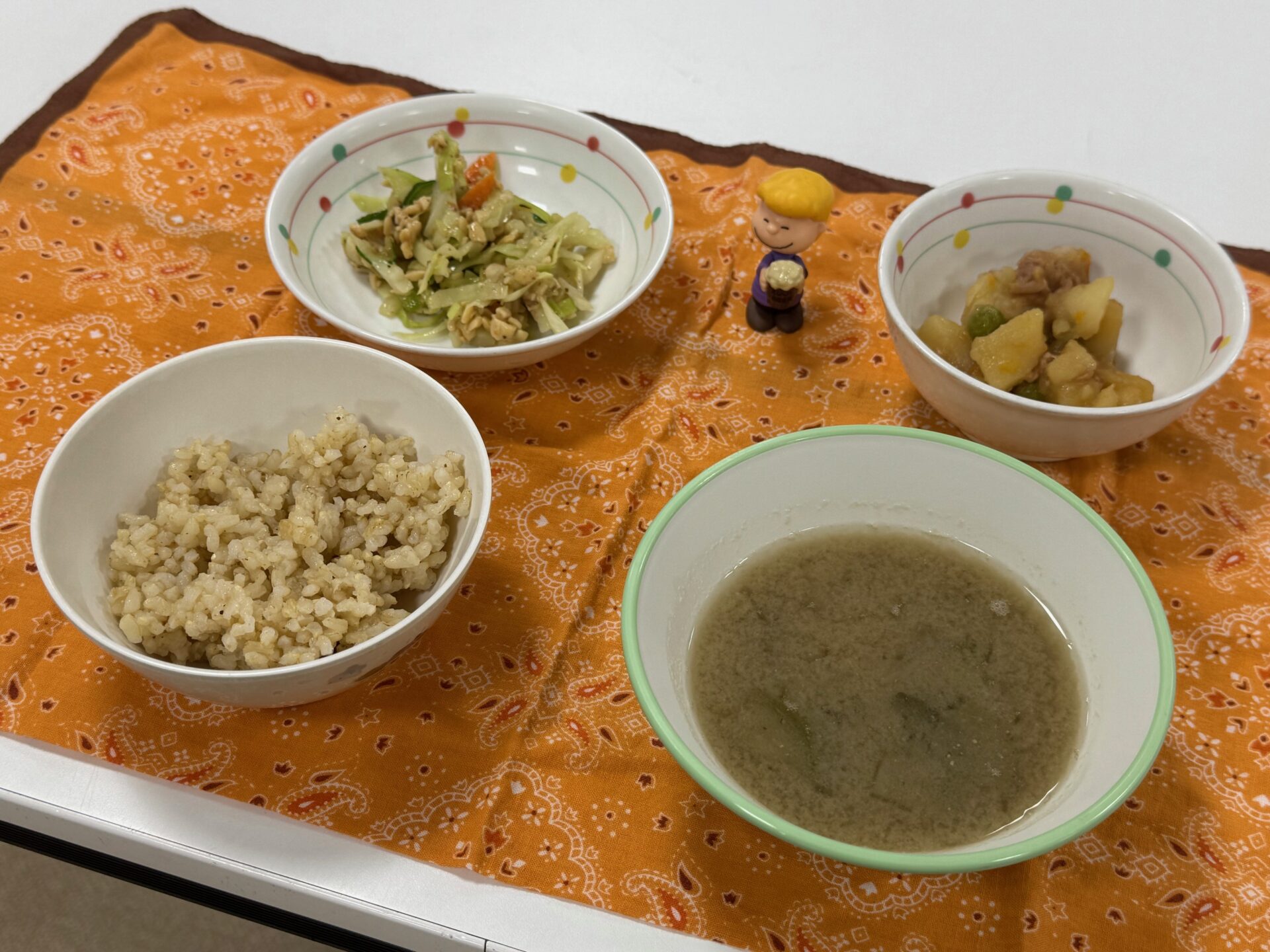 発芽玄米ご飯はふっくらと炊けていました。豚肉入りの肉じゃがは甘く、おかか納豆は塩味もあり、茄子汁は味噌だしがとても美味しかったです。