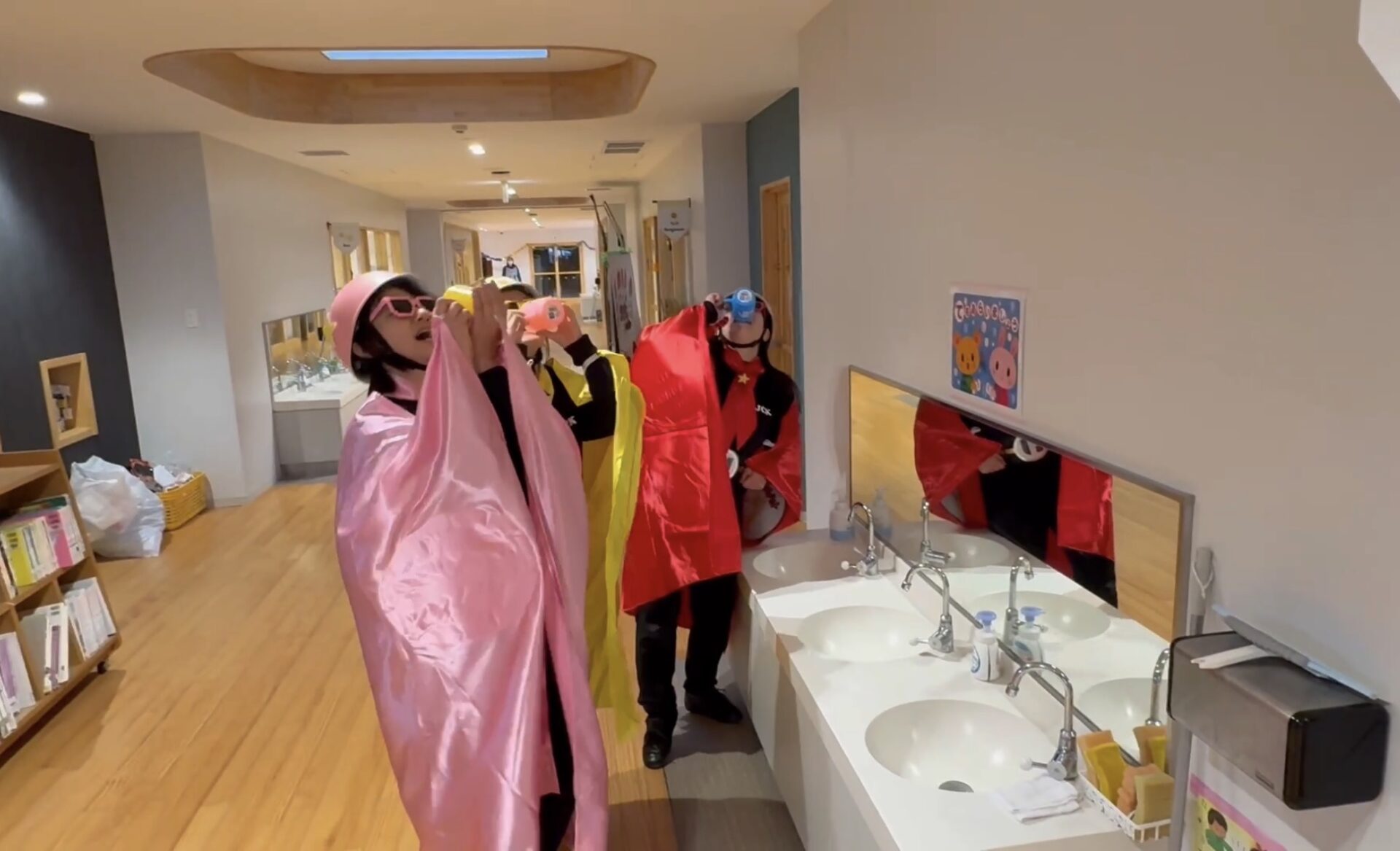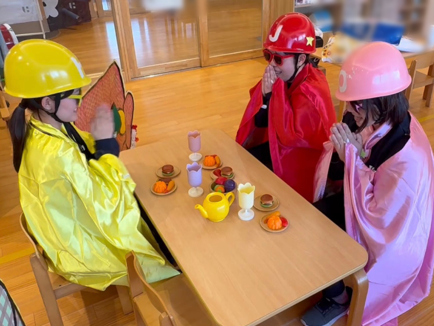 画面にレンジャーが登場すると、保育室は一気に笑顔と歓声に包まれました✨