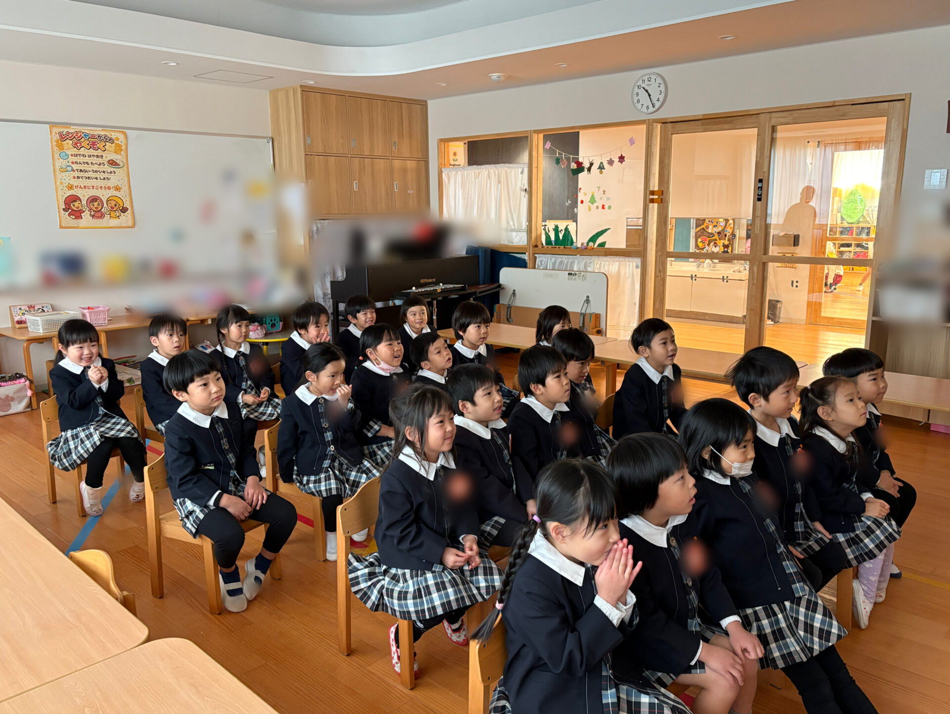 本日、2学期の終業式を行いました。園長先生から冬休みのお約束の話があり、園児は真剣な表情で聞いていました。