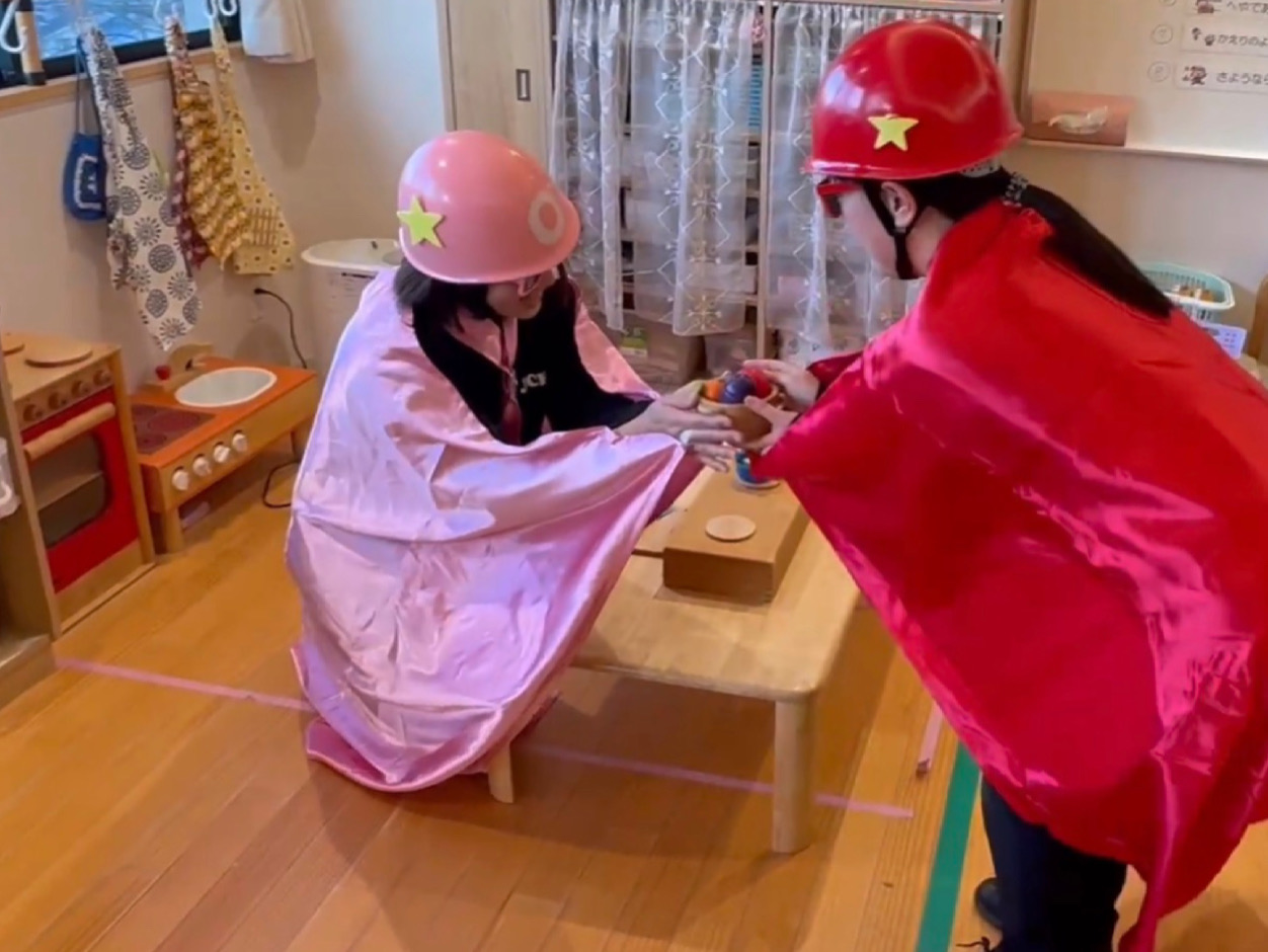 画面にレンジャーが登場すると、保育室は一気に笑顔と歓声に包まれました✨