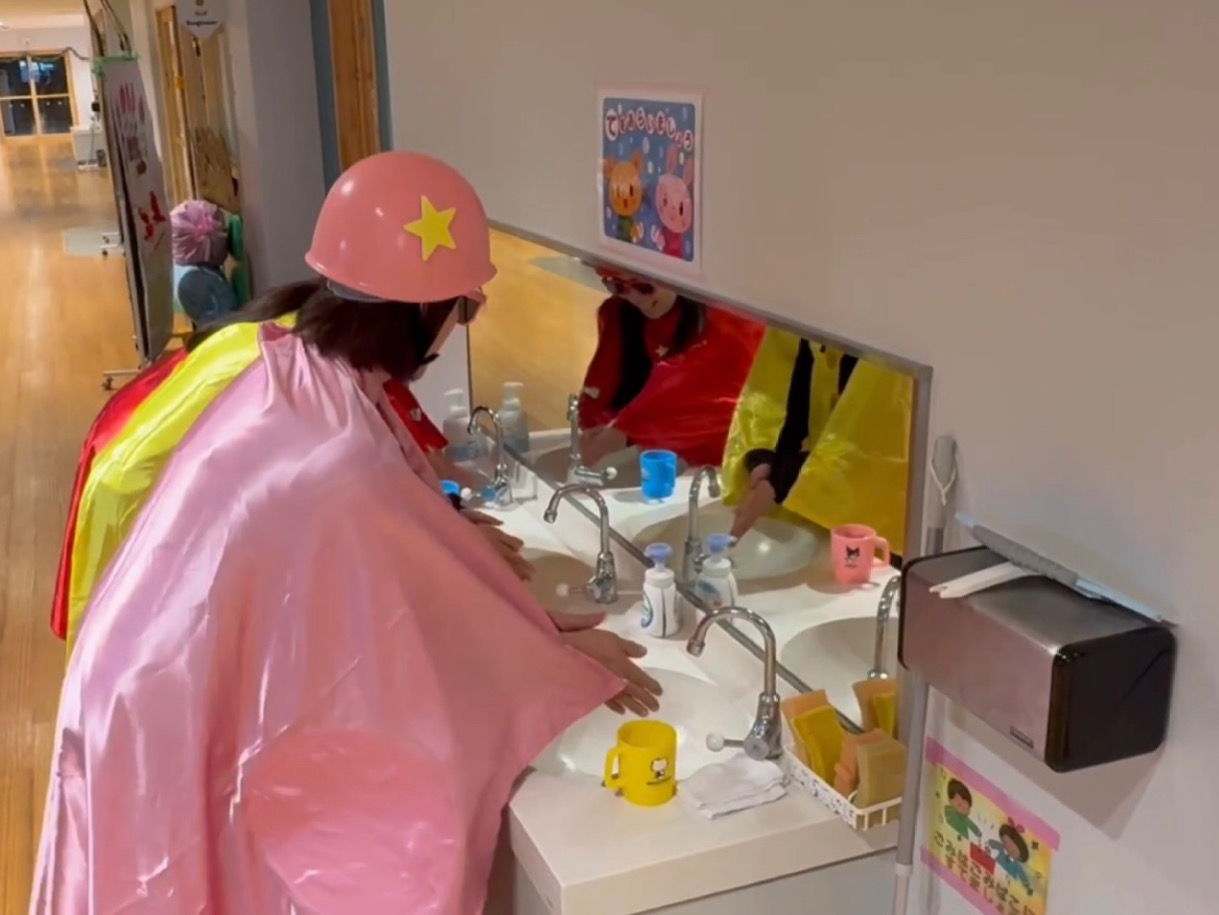 ④手洗いうがいをしよう!『手洗いうがいで、風邪バイ菌をやっつけるぞ!』