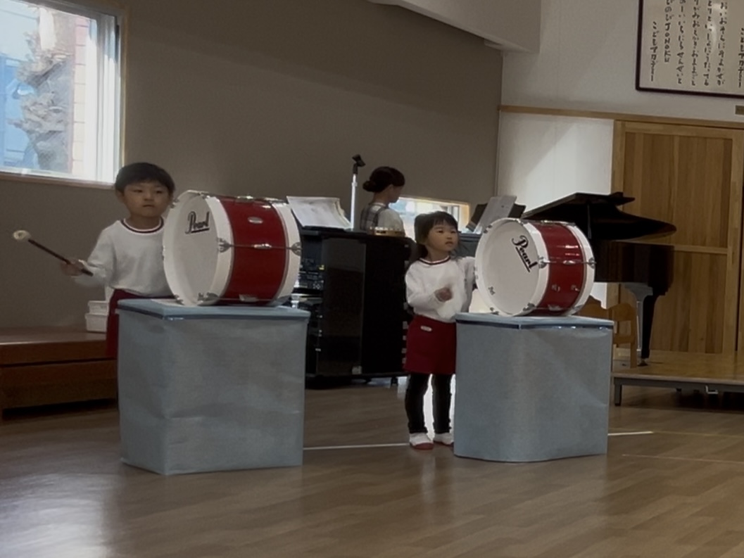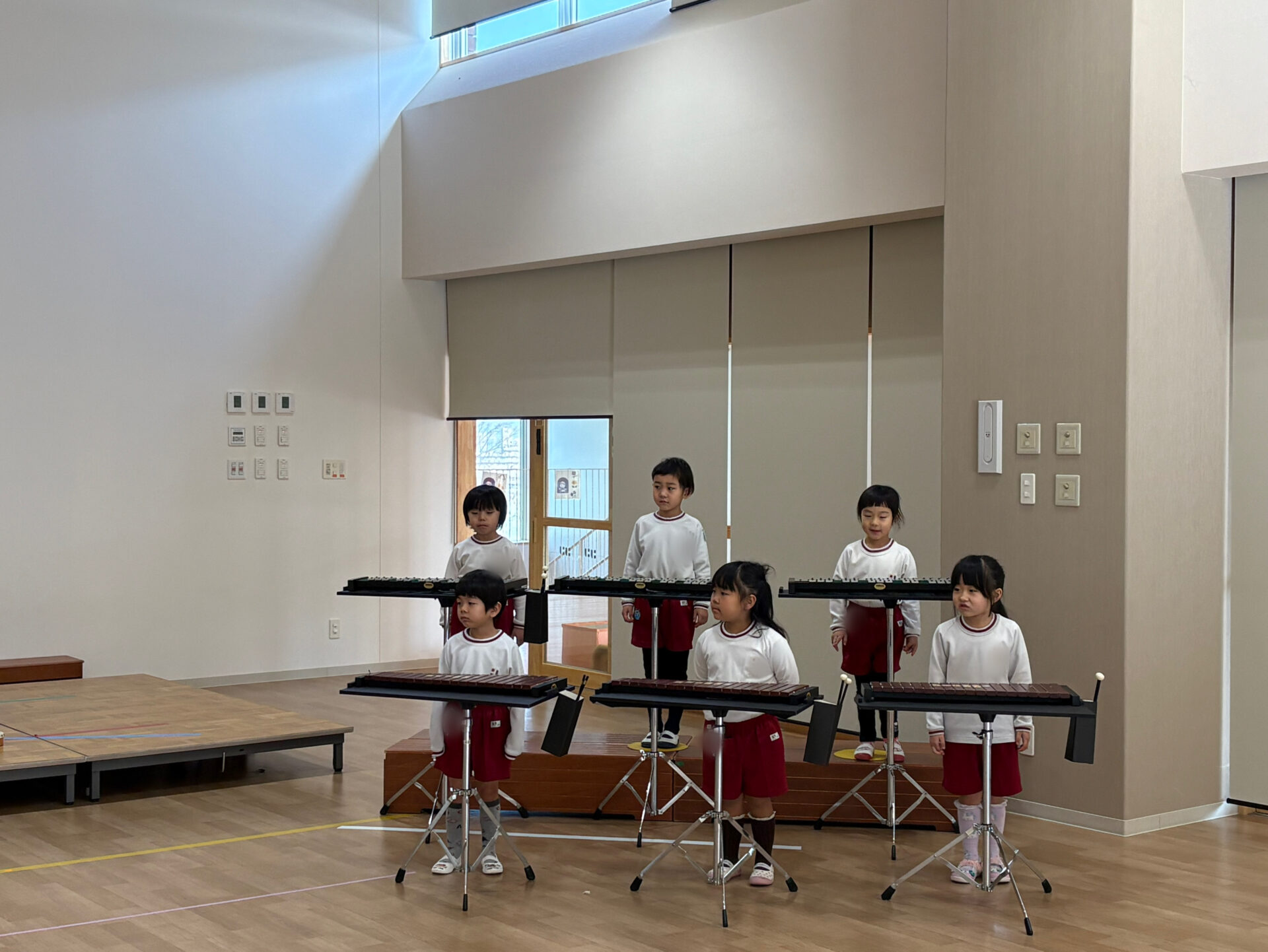 広いホールに響く音や歌声に、園児は少し緊張しながらも、とても真剣な表情で取り組んでいました。