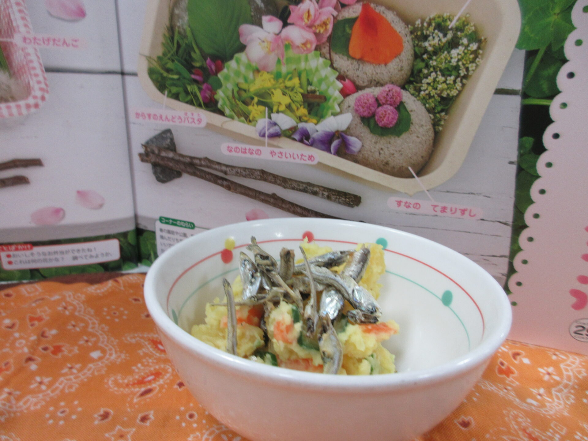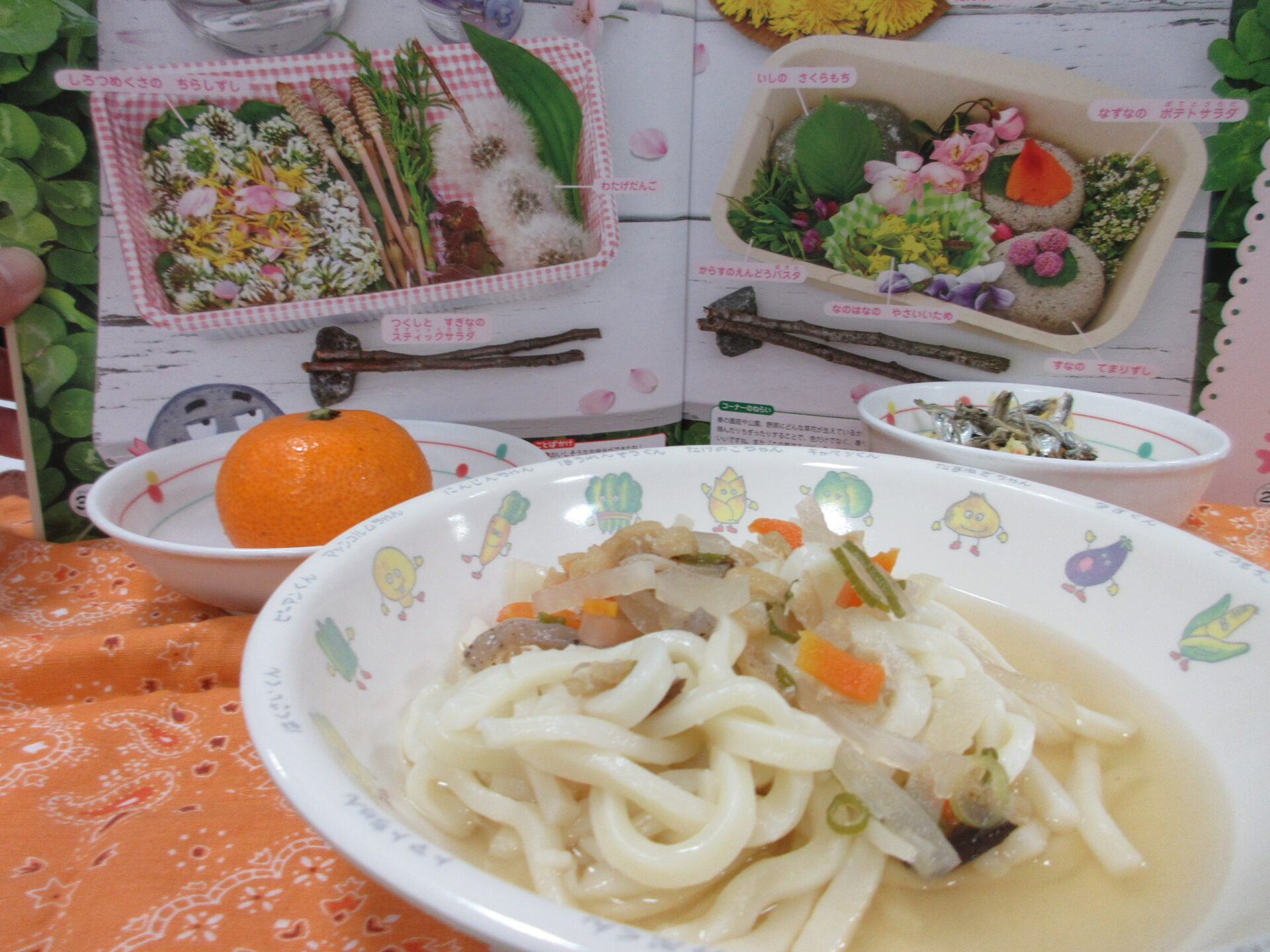 【田舎うどん 🍠さつま芋サラダ 温州🍊みかん 食べる煮干し】