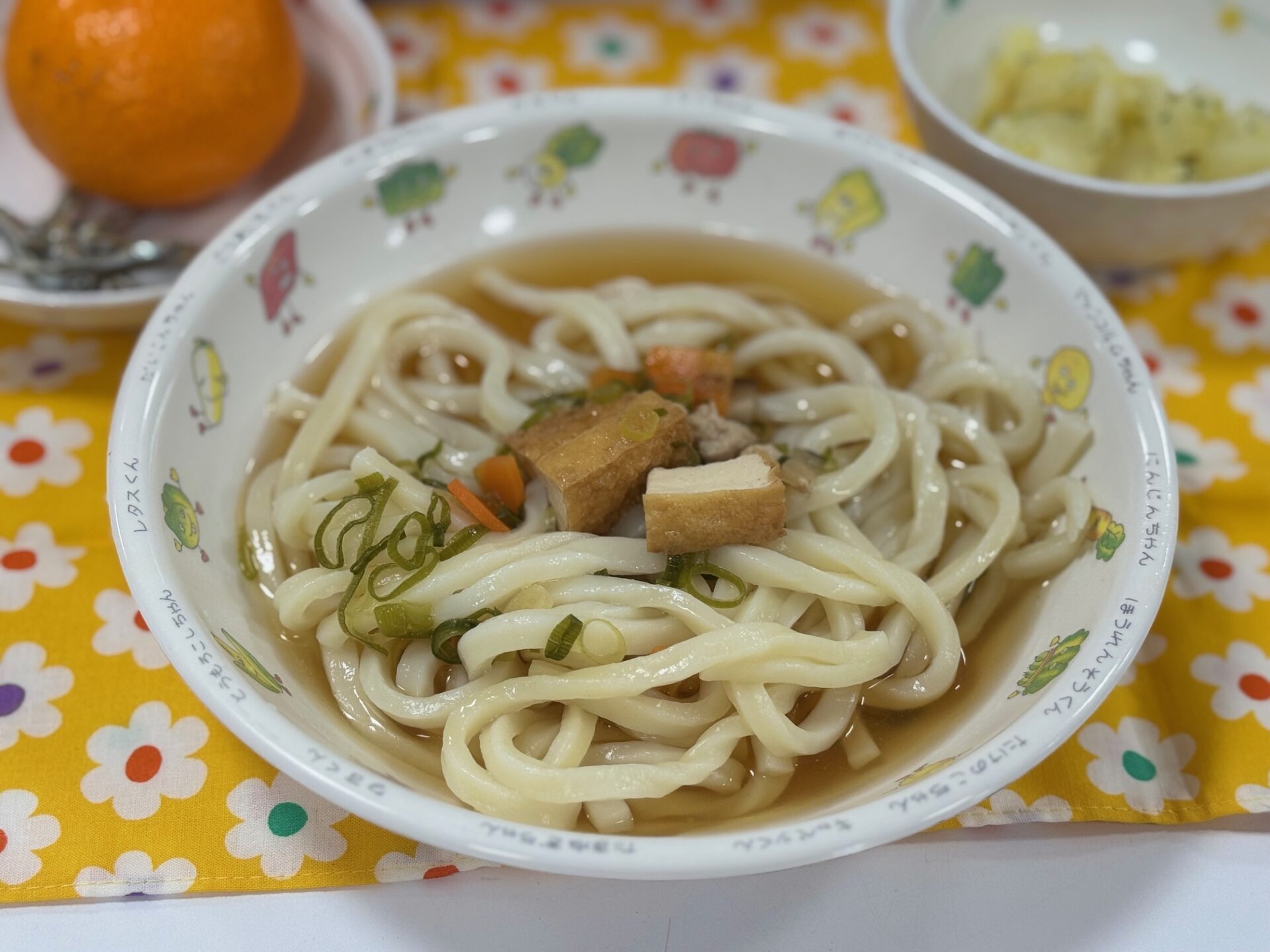 3学期の始まりです。今年は午年ですね。アカデミーでは自慢のうどんでおもてなしです。こふき芋はカレー粉でパンチを利かし、うどんも鶏肉で旨味アップでした。デザートの🍊みかんも甘くて美味しかったです。今年もよろしくお願いいたします。