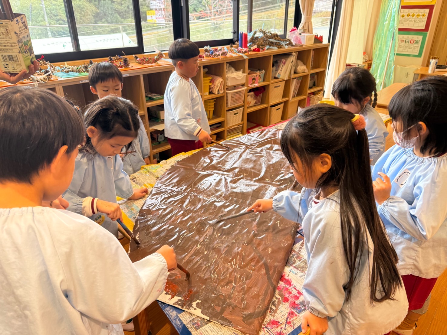 発表会に向けて、子どもたちと一緒に小道具や大道具作りに取り組みました。