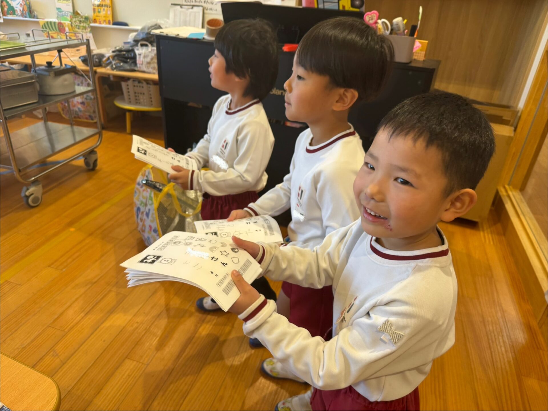 受け取ったクラスの先生やお友達から「ありがとう!」と言われると、少し照れながらも嬉しそうな表情を浮かべる子どもたちでした。