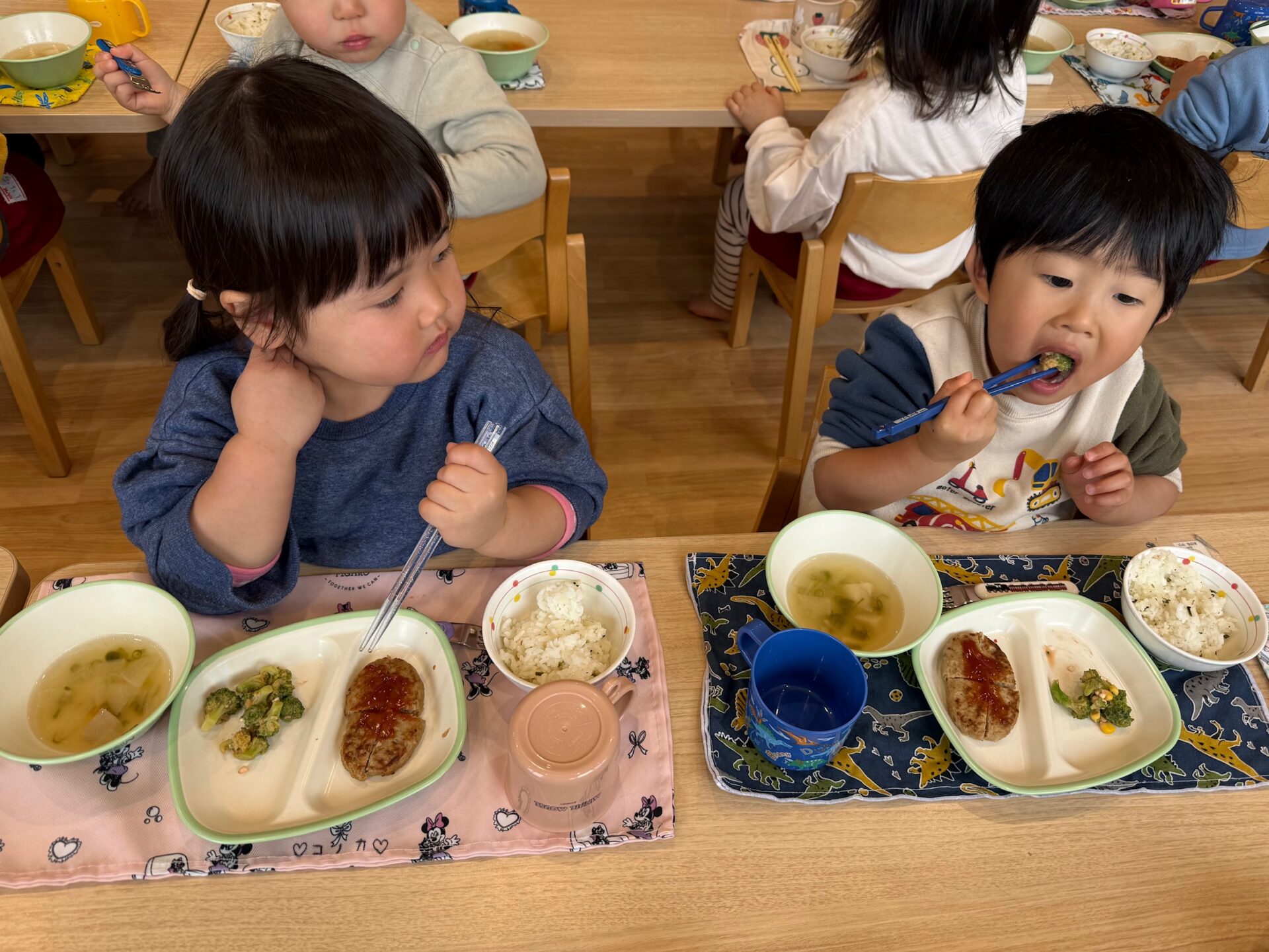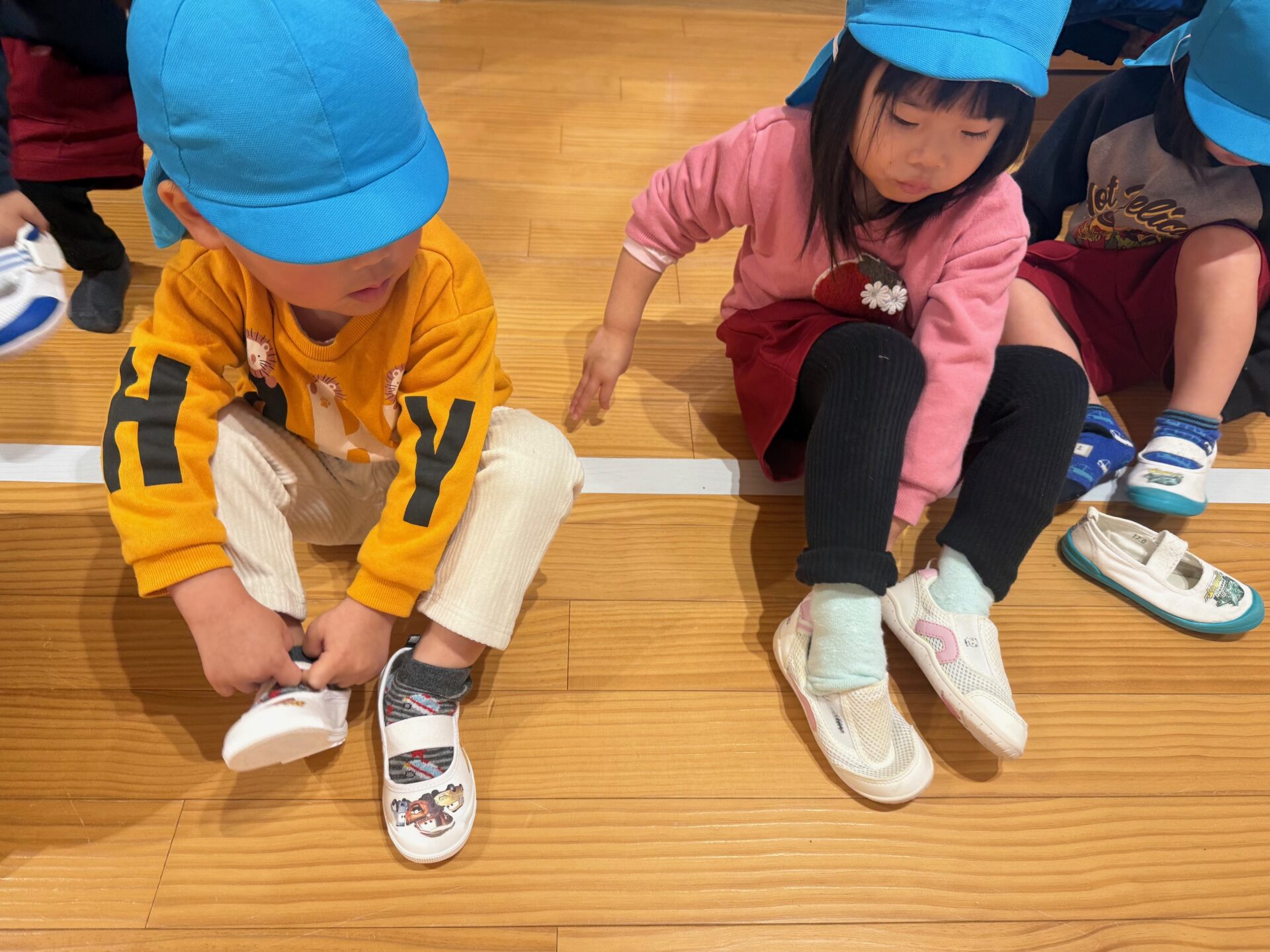 園での取り組みが自信につながるよう、ご家庭でも無理のない範囲で、上靴やお箸、トイレの練習に取り組んでいただけると嬉しいです。
