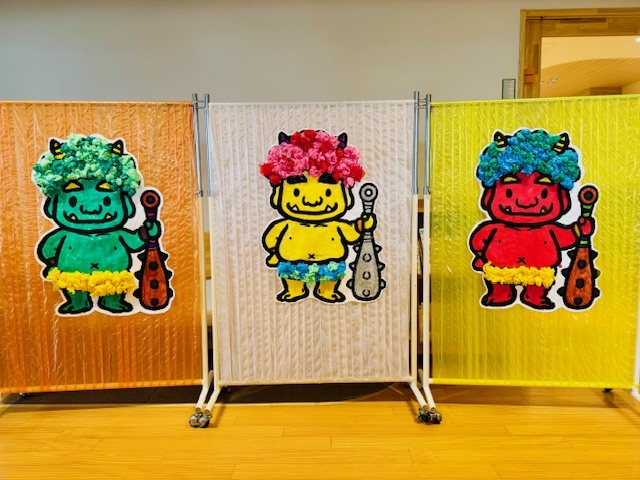 豆を投げるために、各クラスで鬼の的もみんなで手分けして作りました。