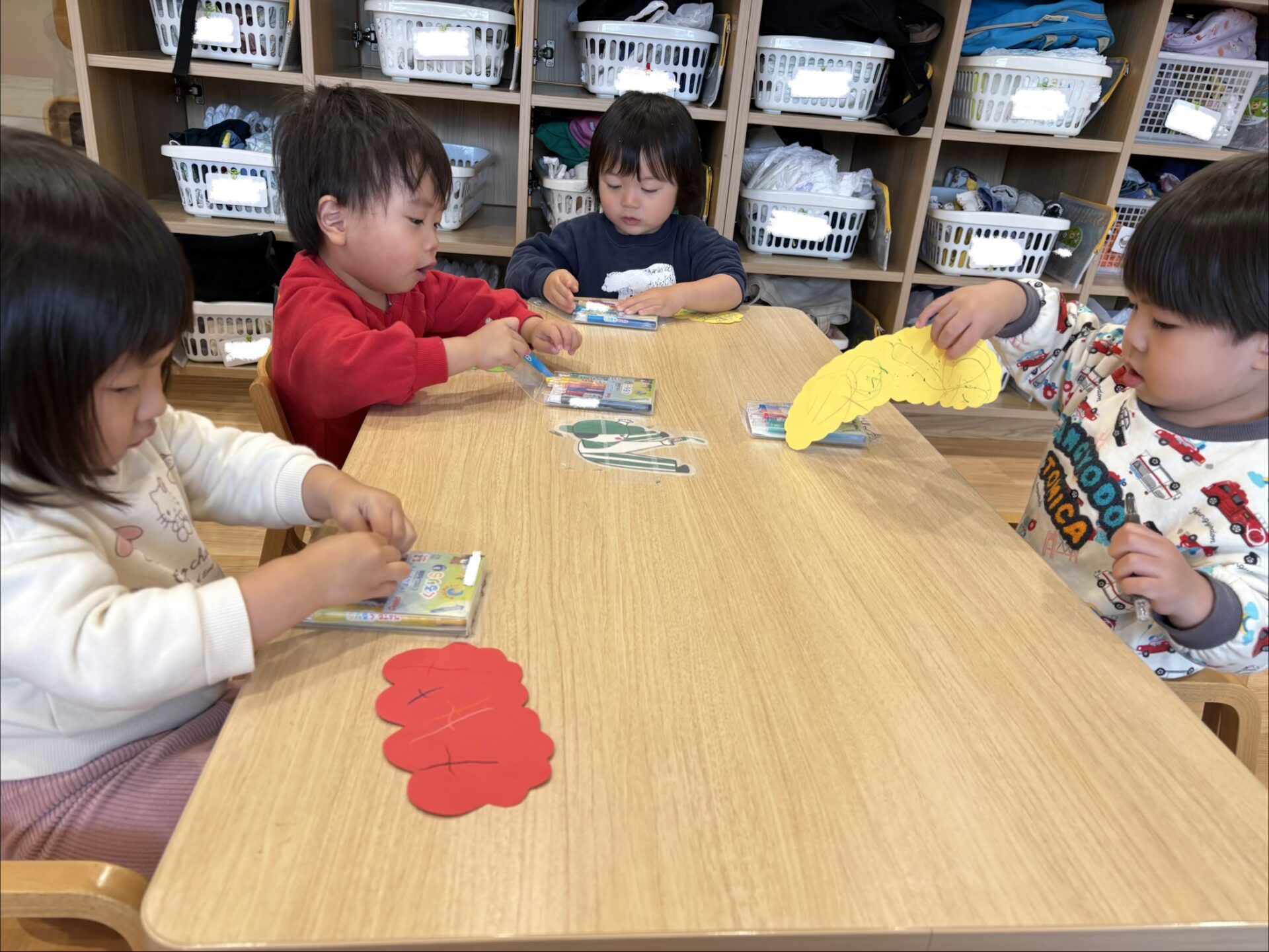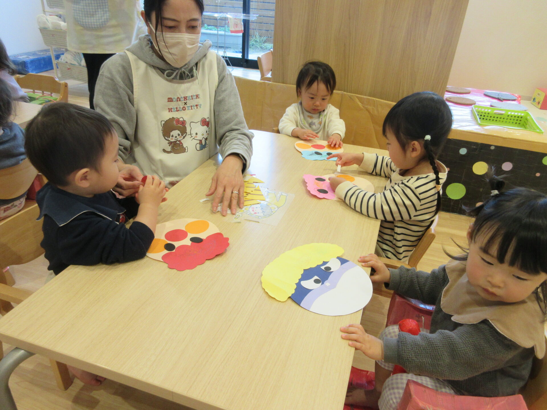 それぞれ「目や口はどこかな?」「角は1本がいい!」「2本にする!」と考えながら貼っていきました!