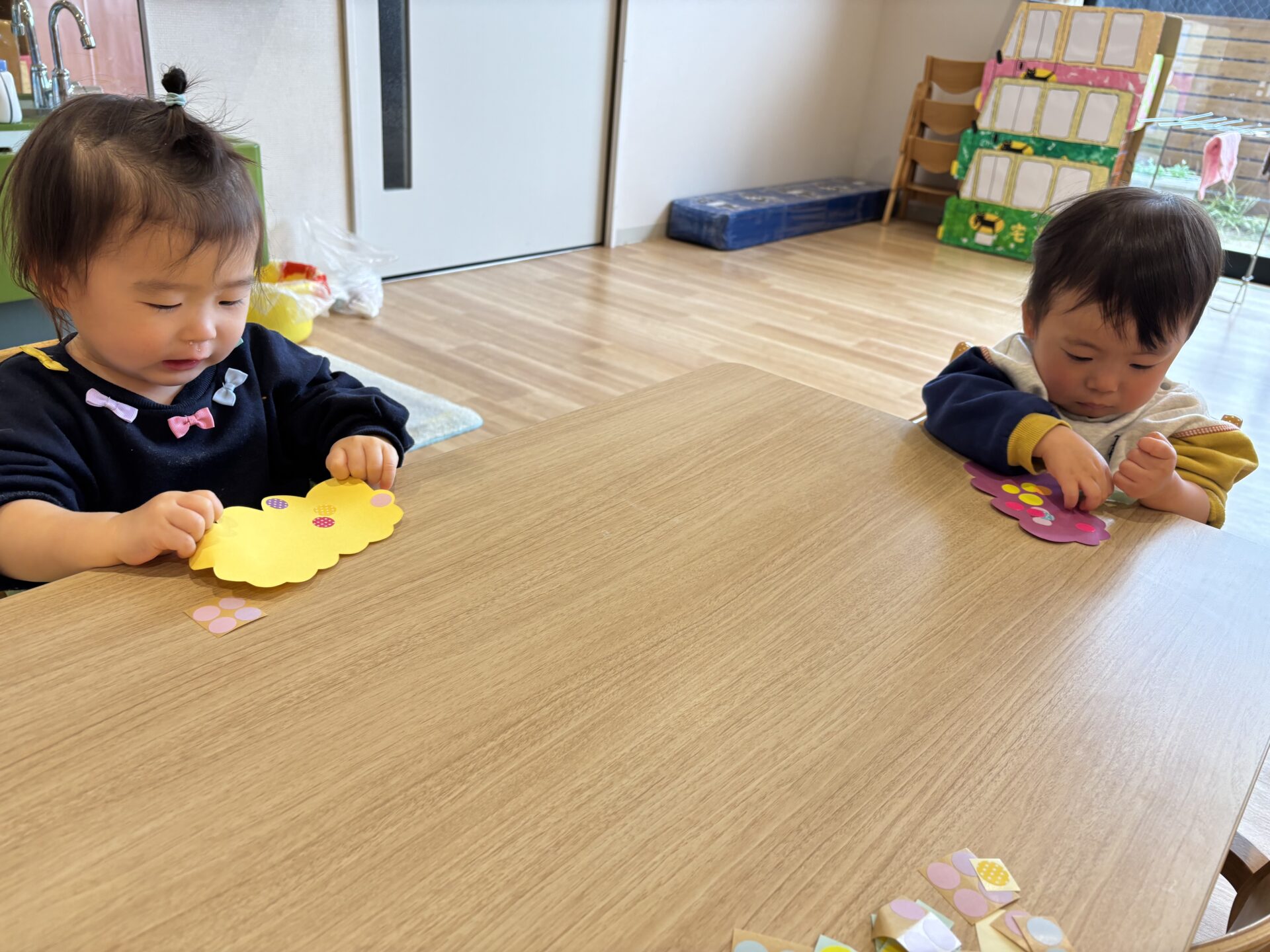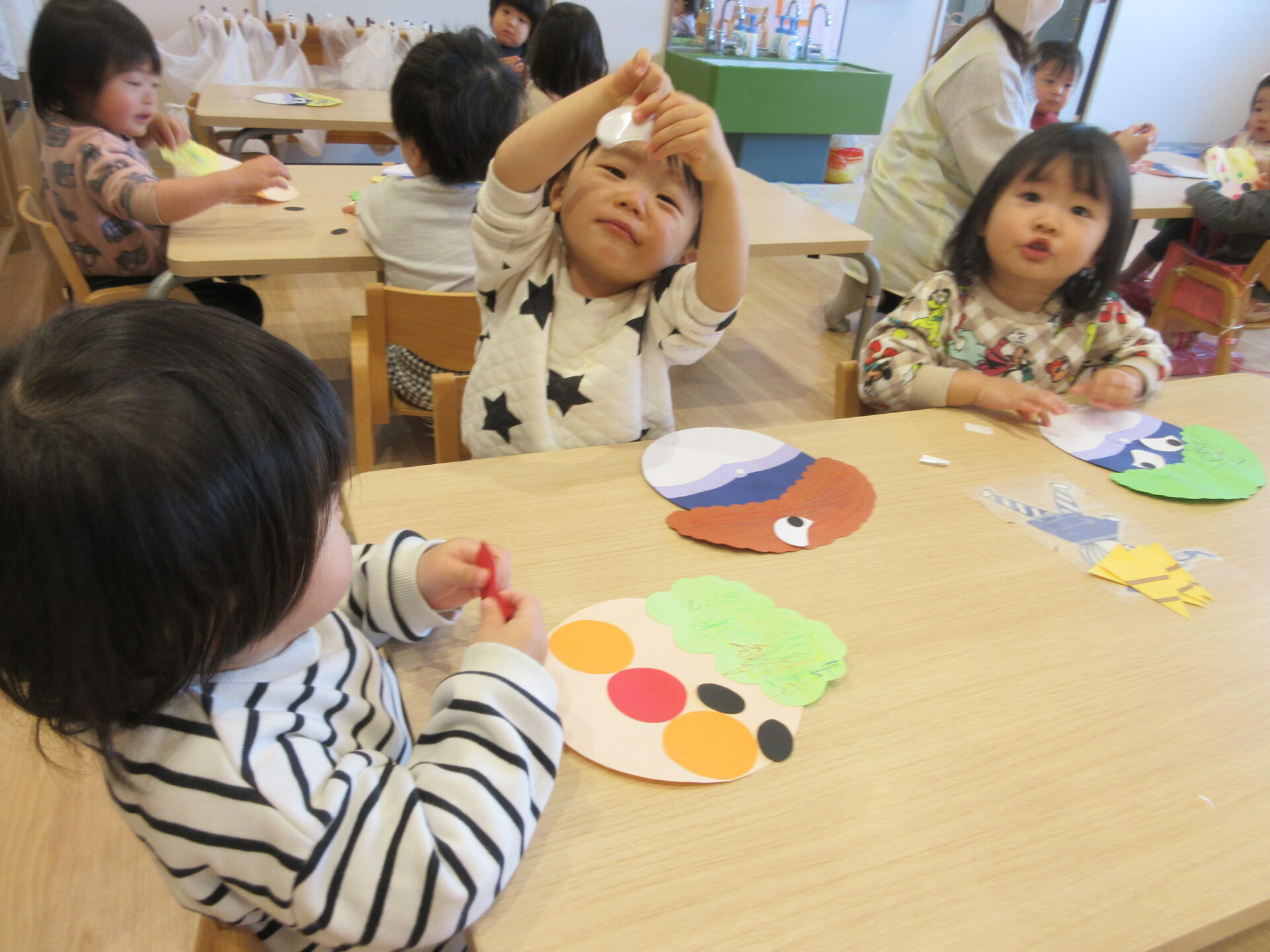 それぞれ「目や口はどこかな?」「角は1本がいい!」「2本にする!」と考えながら貼っていきました!