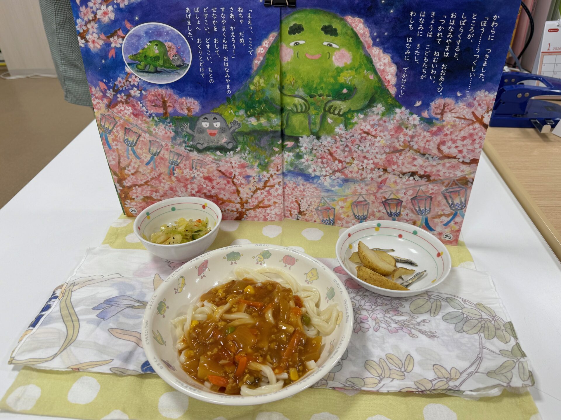 【カレーうどん キャベツのゆかり和え 🍟フライドポテト 食べる煮干し】