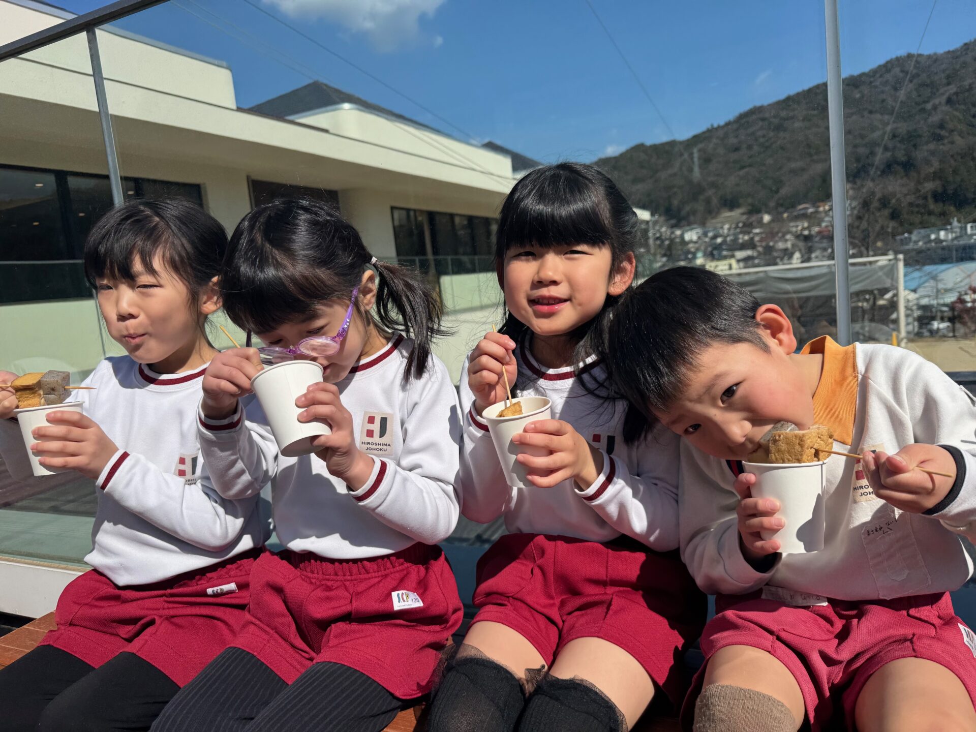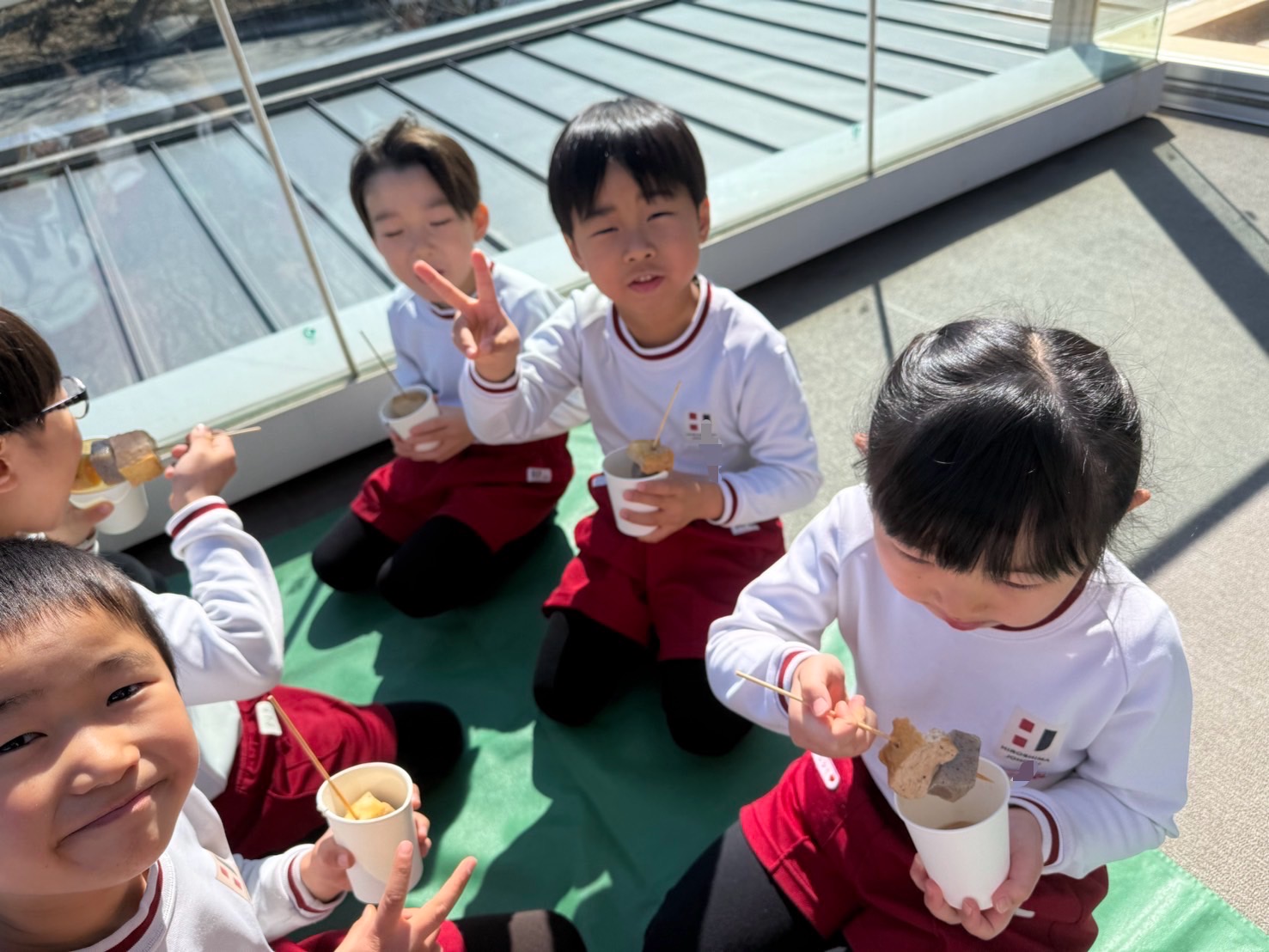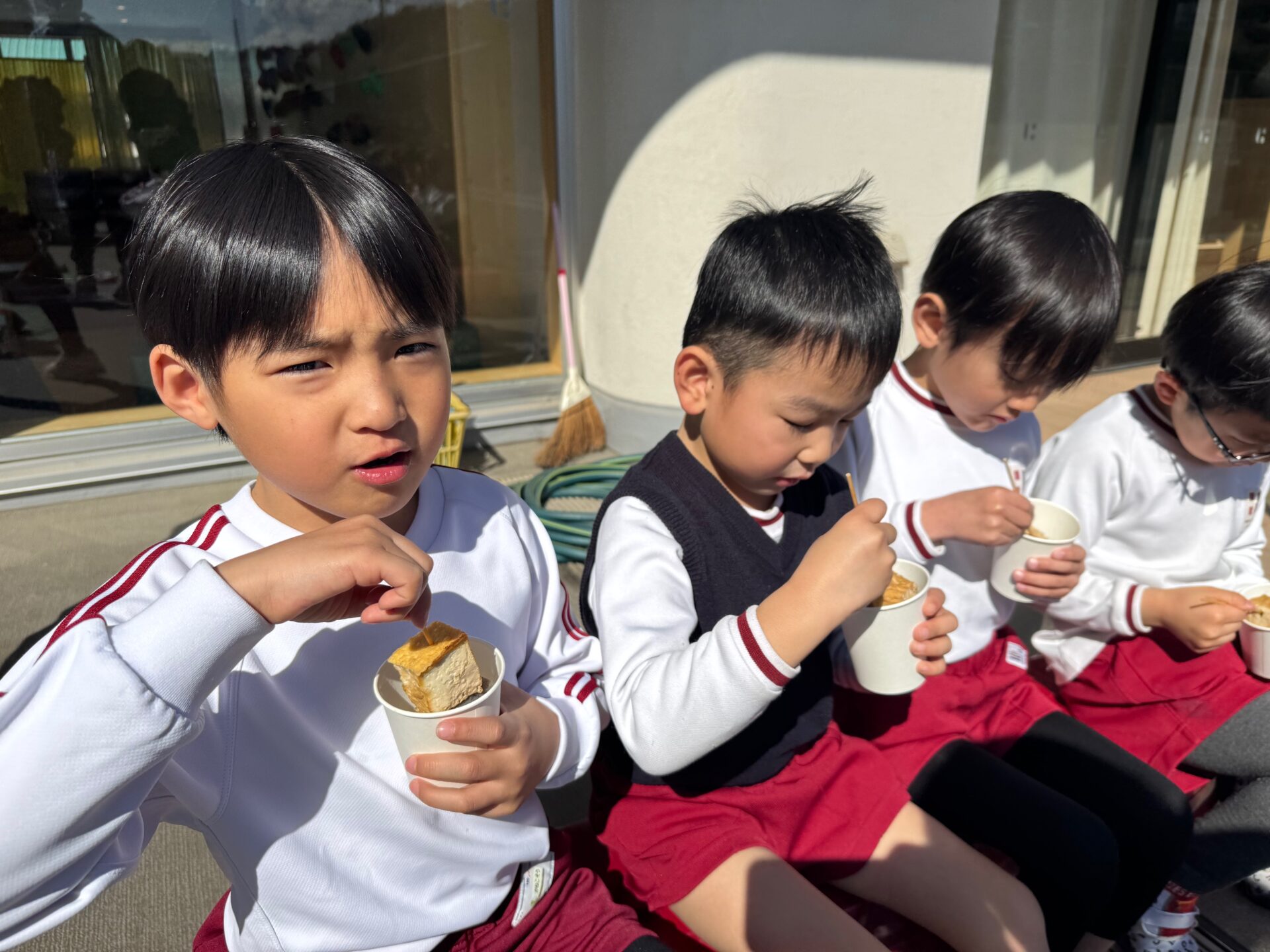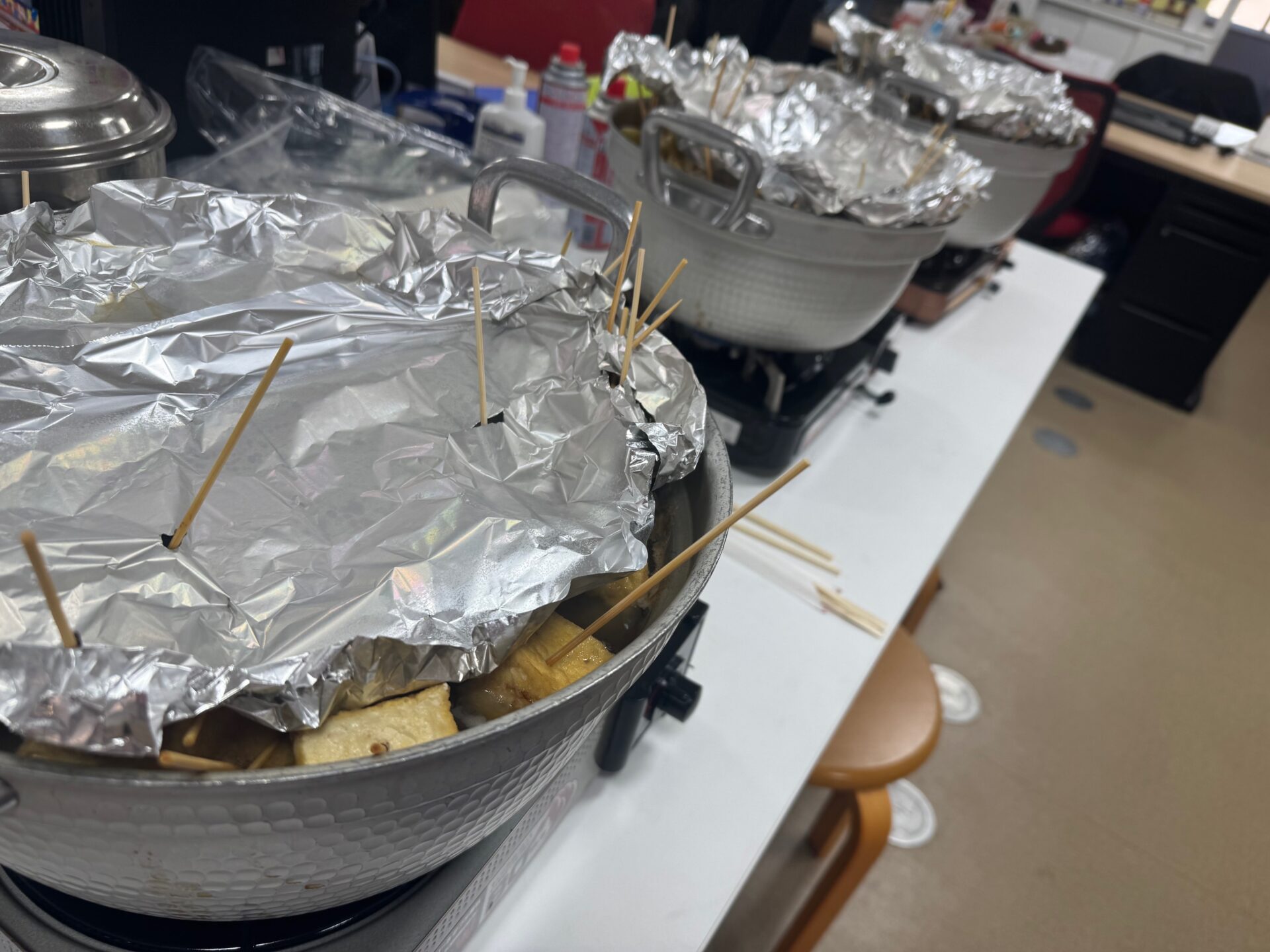 つくったおでんはテラスで食べました。自分たちで育てた大根のおでんは格別。
