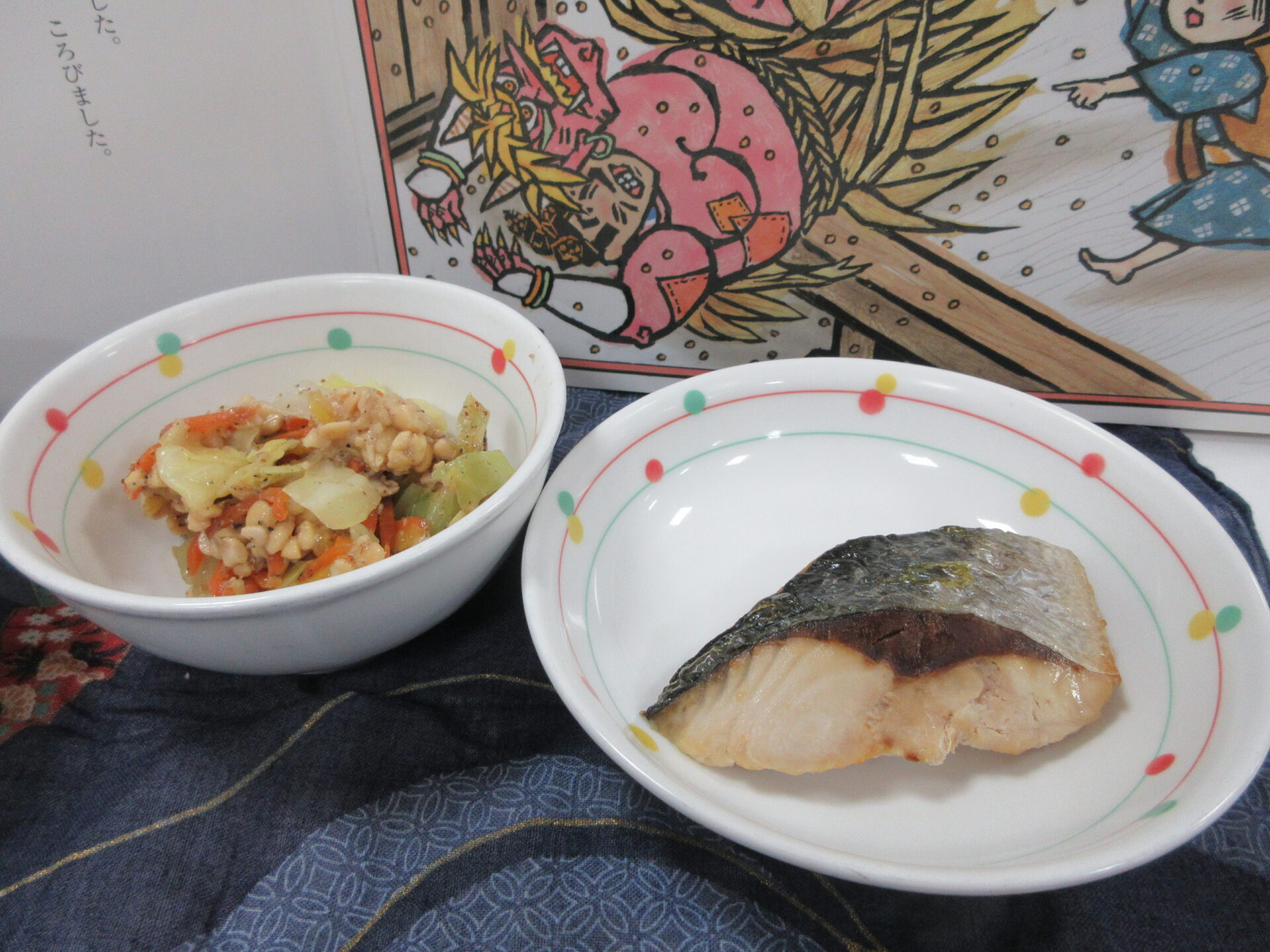 白米のゆかりご飯の日でした。さばの塩焼きとたくあん納豆と味噌汁は和食の美味しさ満載の献立でした。