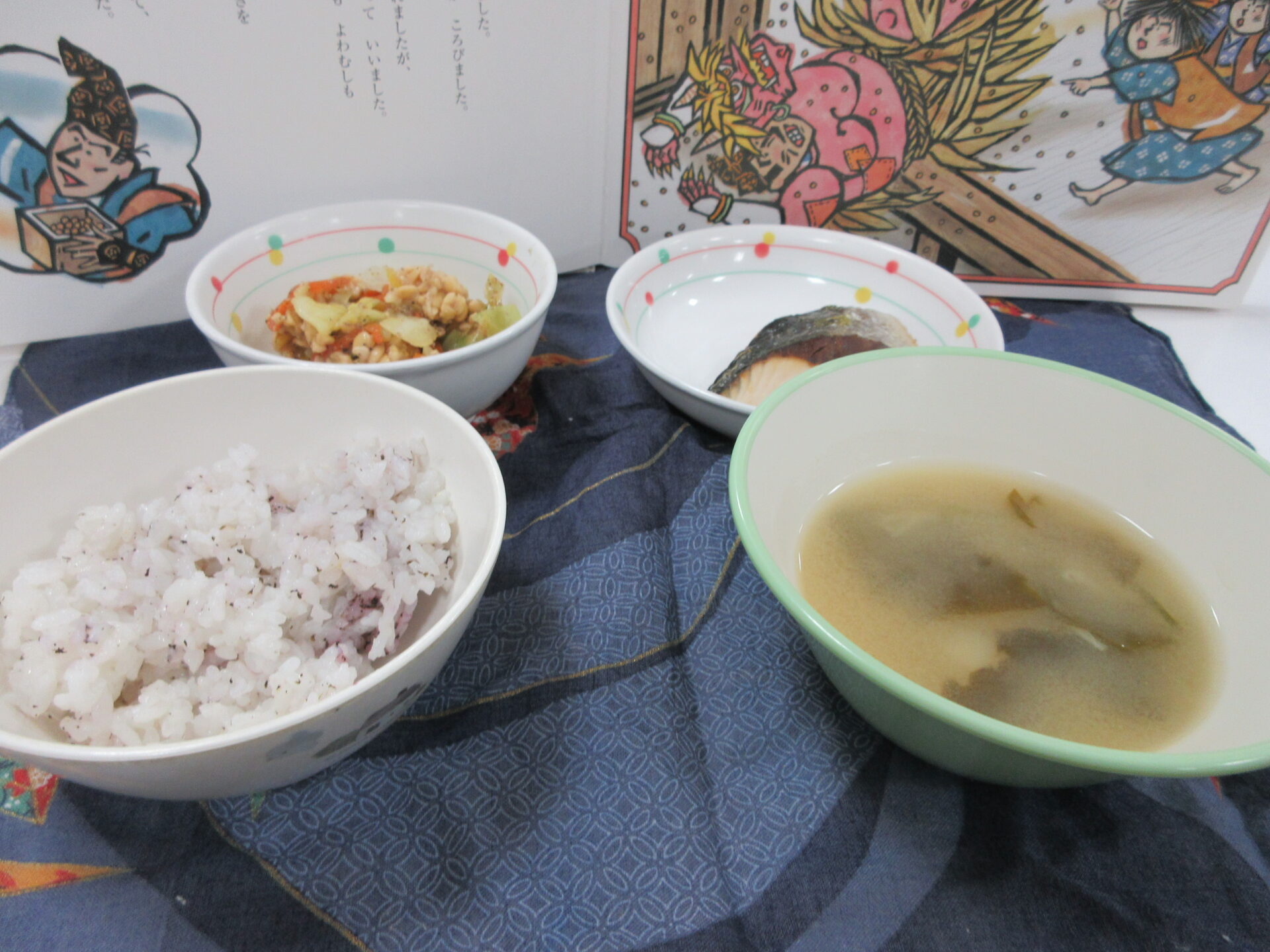 白米のゆかりご飯の日でした。さばの塩焼きとたくあん納豆と味噌汁は和食の美味しさ満載の献立でした。