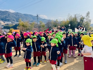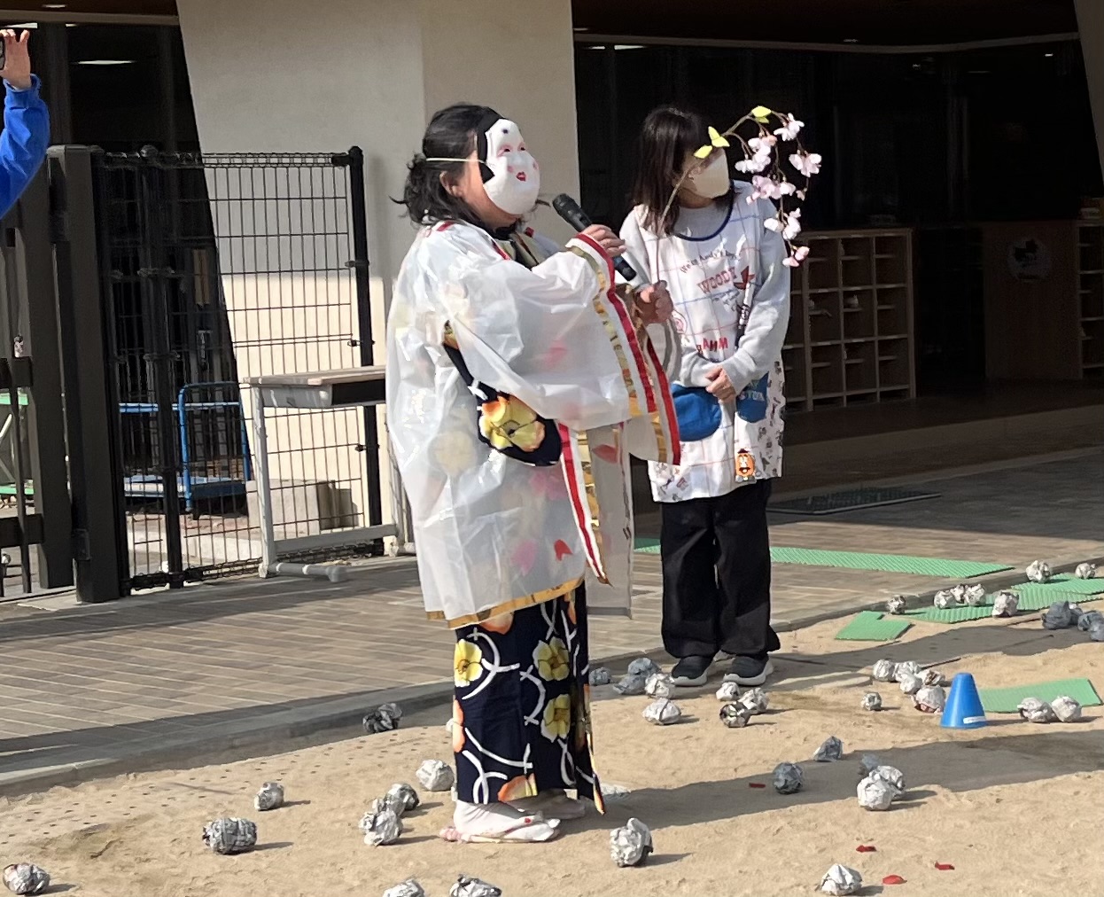 「あー良かった♡」鬼が去り、みんなで安堵していると、今度は福の神様が現れました。ひらひらときれいな花びらを降らしながら「みなさん、春が訪れましたよ🌸元気で大きくなあれ✨」と温かい言葉をかけてくれました。今年も一年、みんな元気で幸せに過ごせますように‼