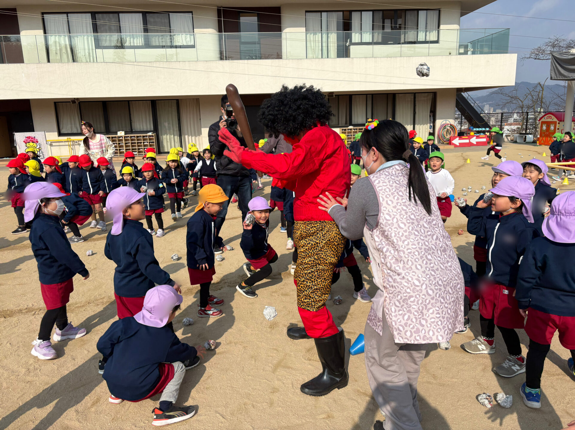 「あー良かった♡」鬼が去り、みんなで安堵していると、今度は福の神様が現れました。ひらひらときれいな花びらを降らしながら「みなさん、春が訪れましたよ🌸元気で大きくなあれ✨」と温かい言葉をかけてくれました。今年も一年、みんな元気で幸せに過ごせますように‼