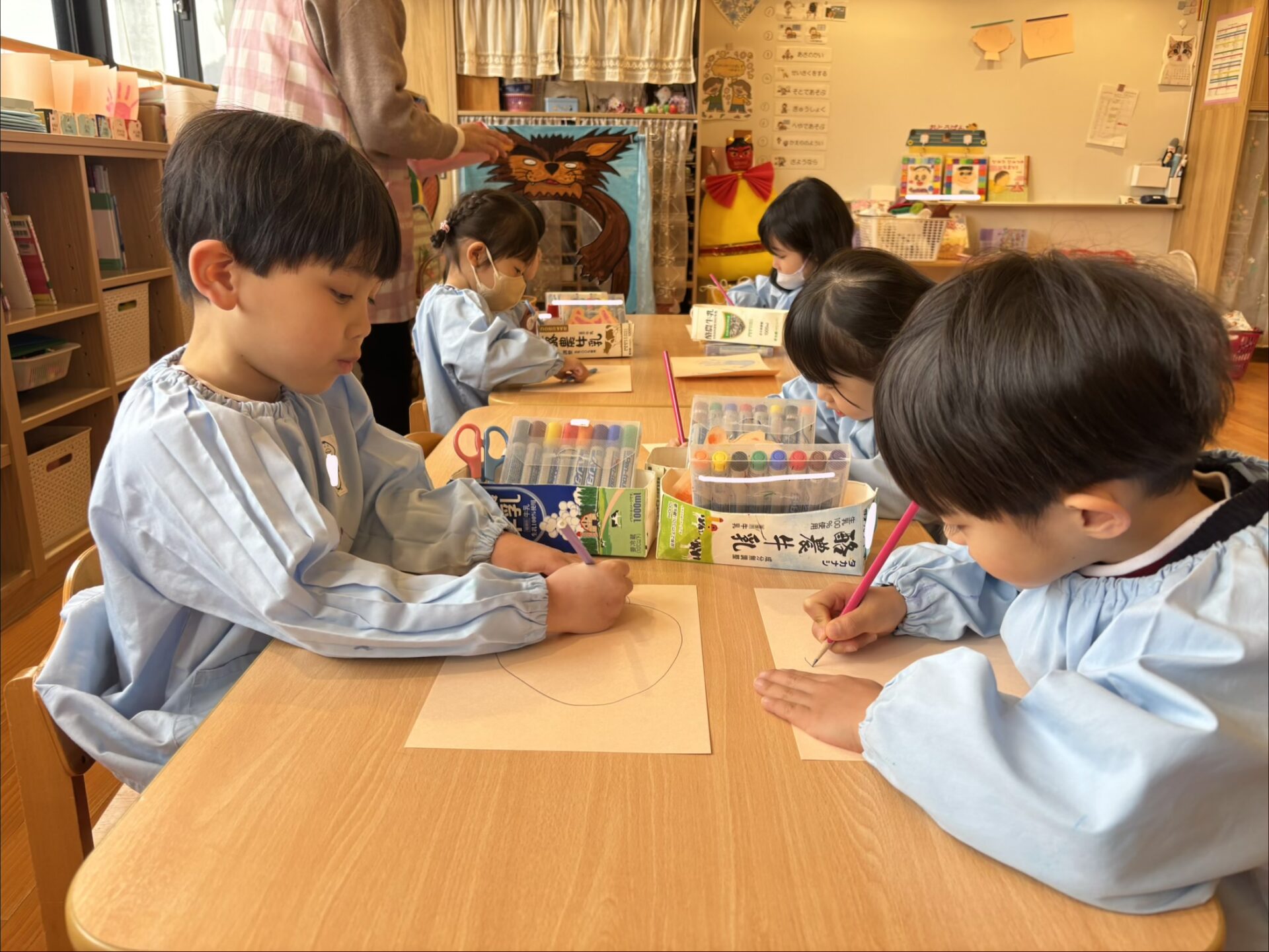 楽しさの中で、表現する力や道具を使う力、そして自分を大切に思う気持ちが伸びている年中さん。