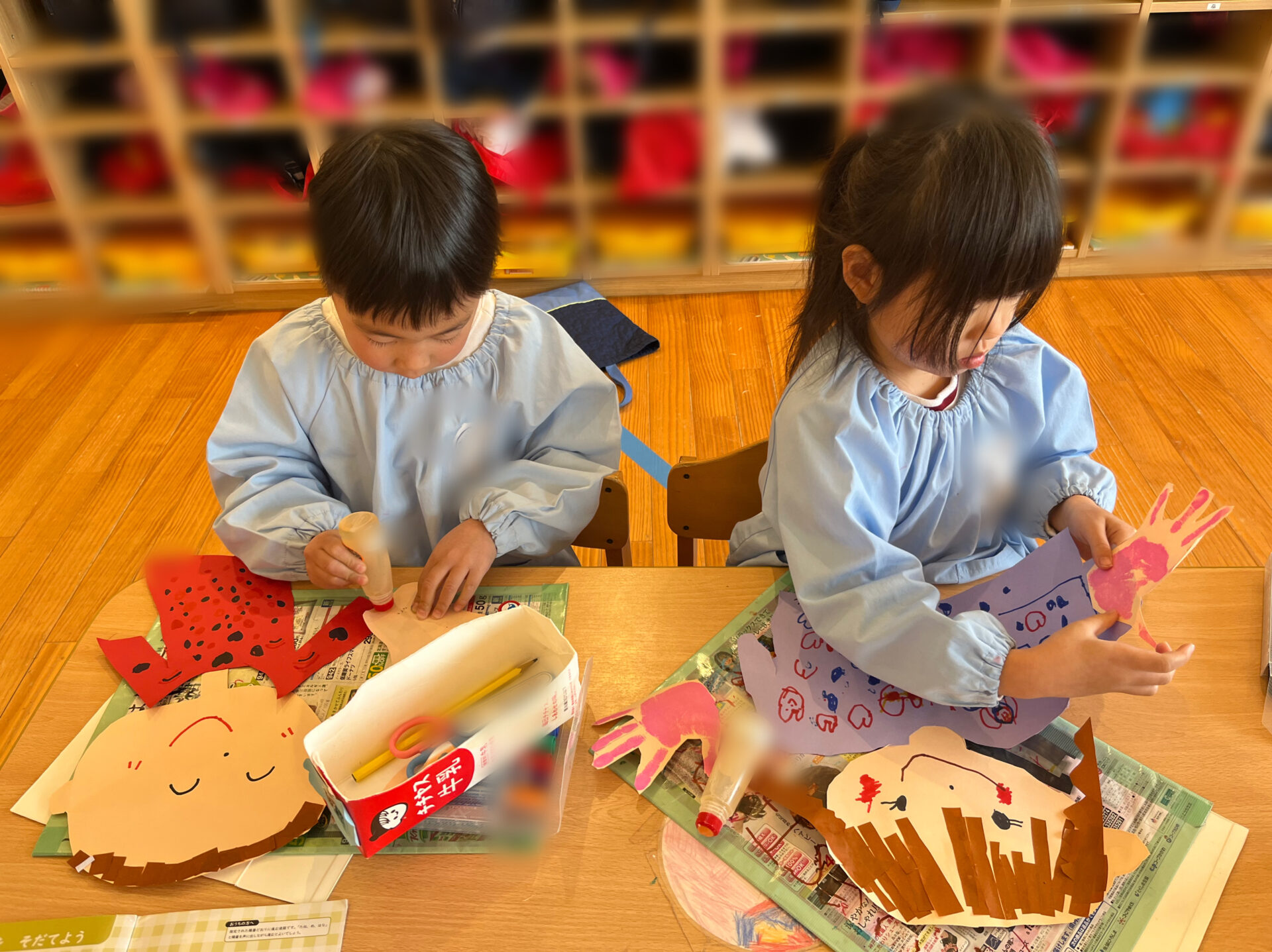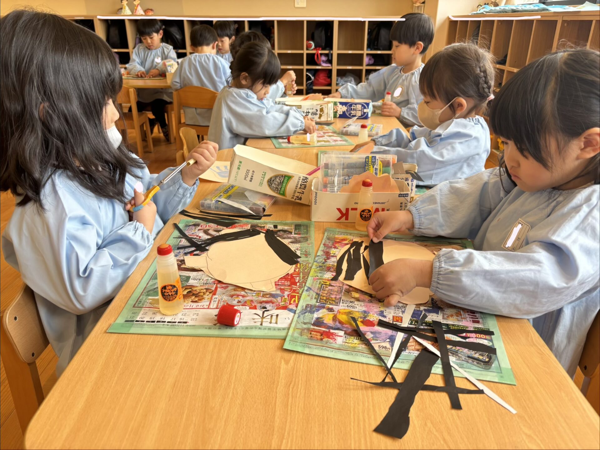 髪の毛も折り紙を使っての細かな製作でしたが、真剣に取り組んできました。