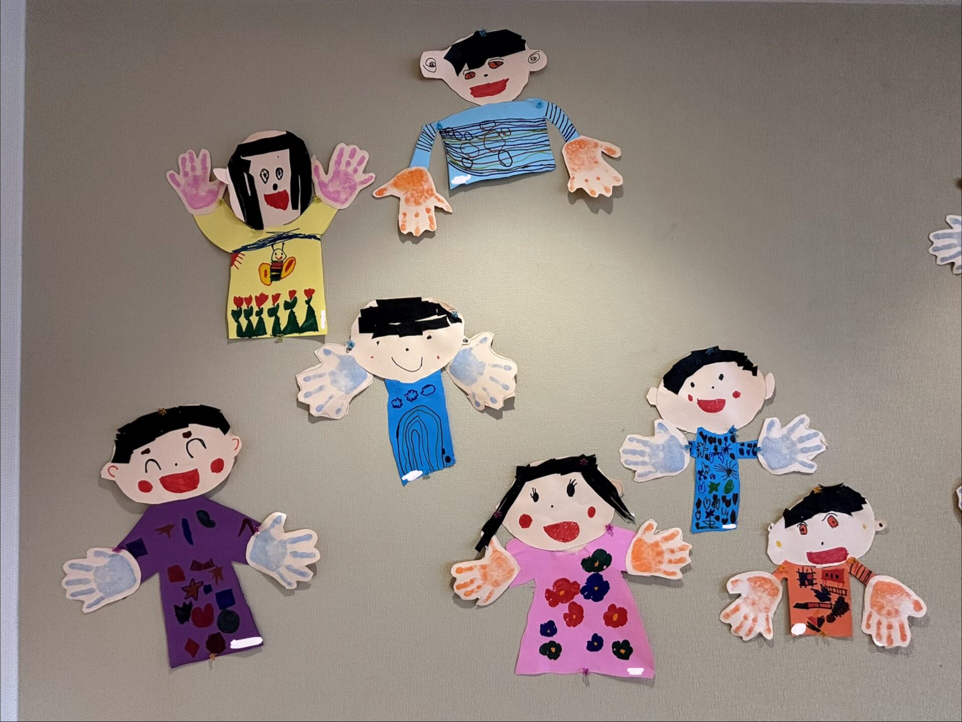 (保育室の壁面に展示しています!壁面の中央には園児の楽しい写真を貼って完成となりますのでお楽しみに😊)