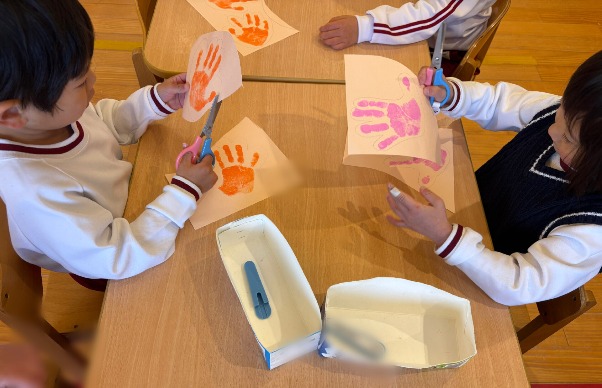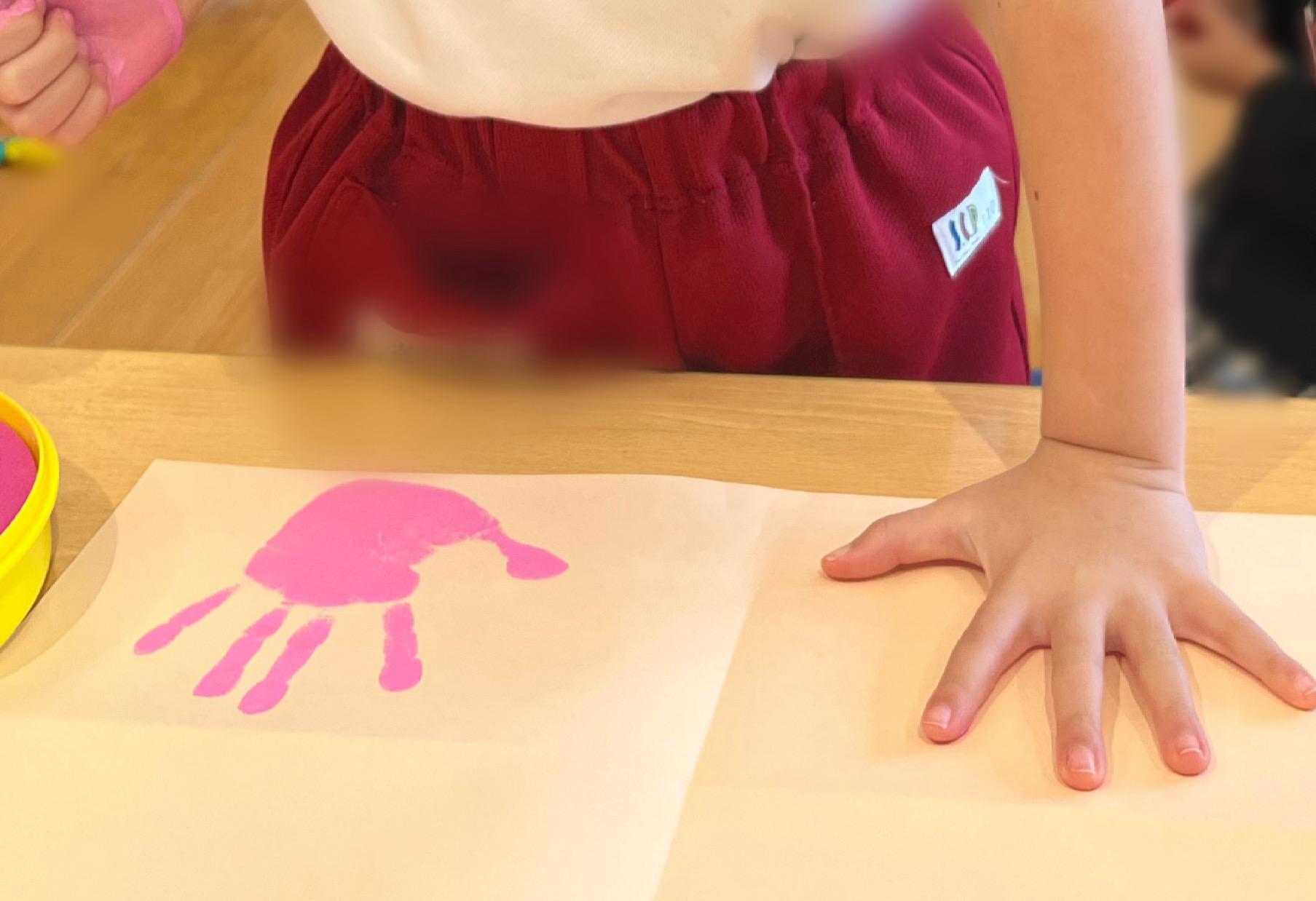 また、手形をとってみると、「こんなに大きいの?!」と自分の手を見てびっくりする園児。