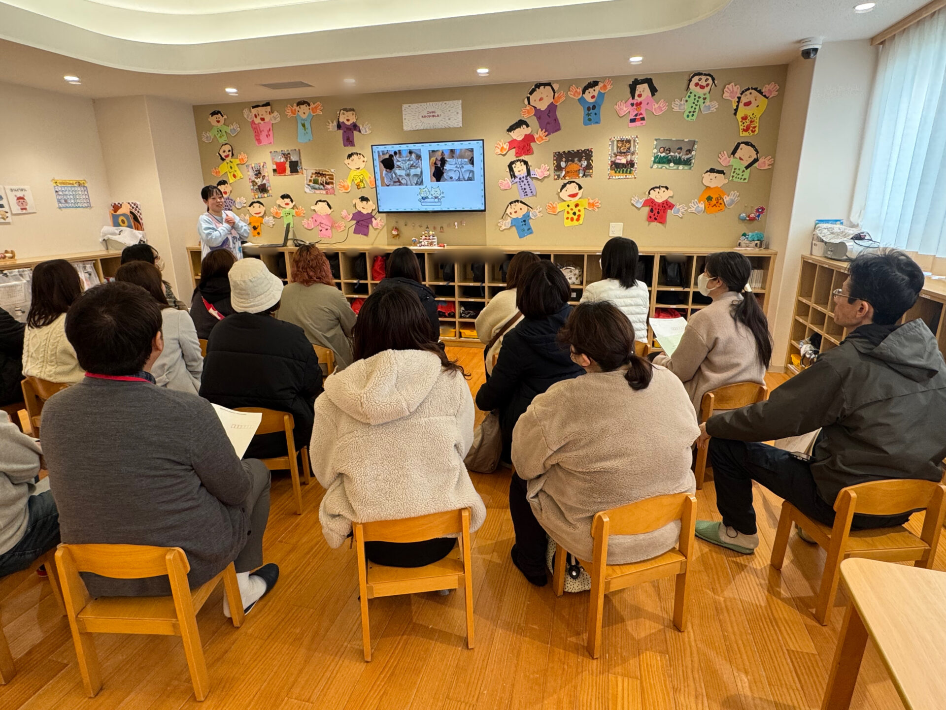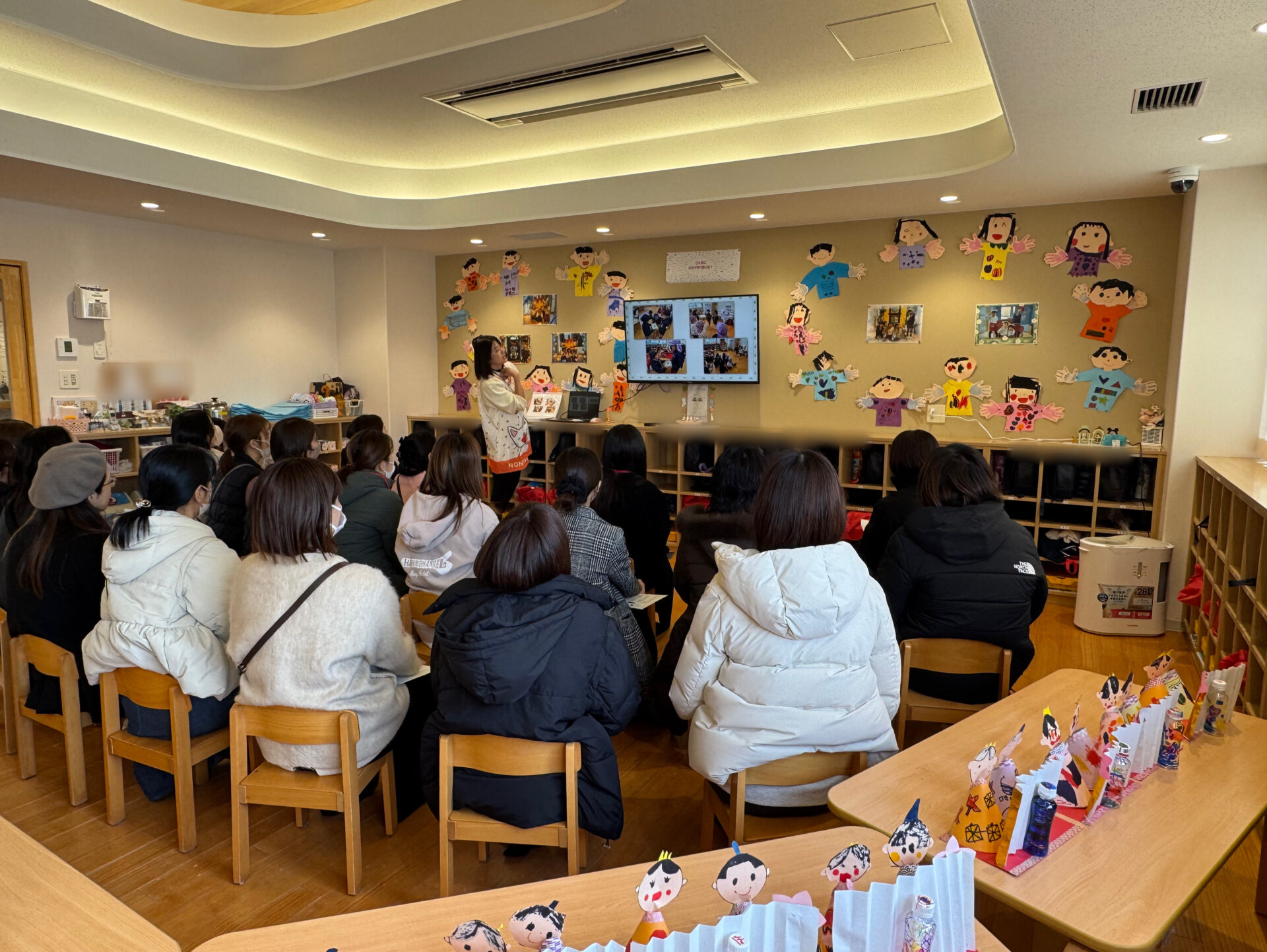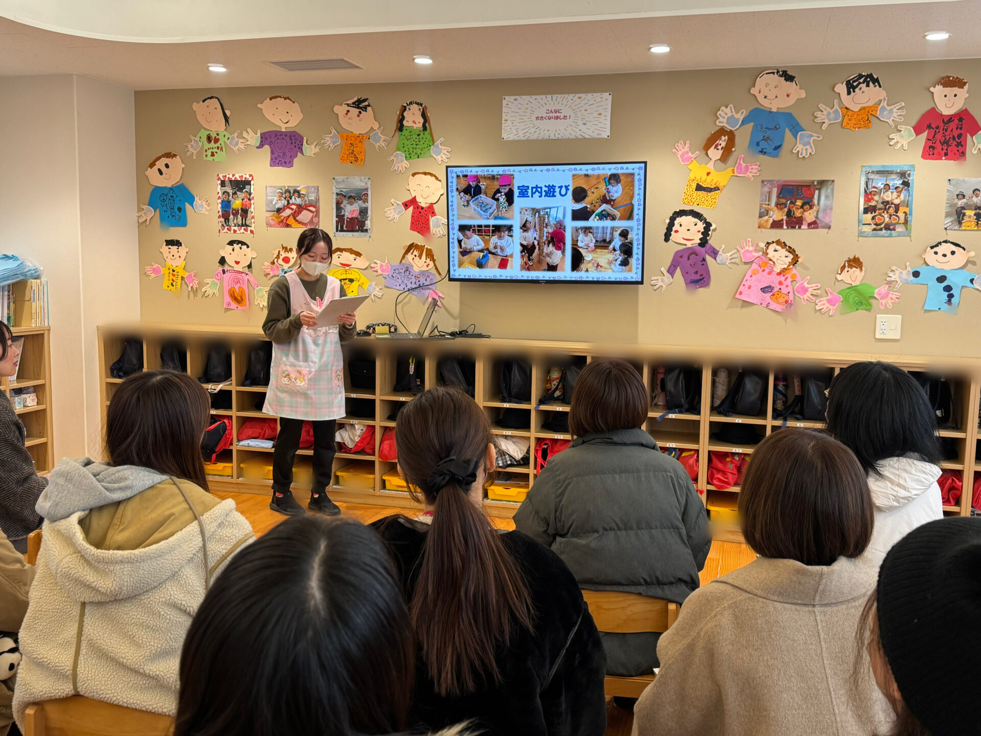 「やってみたい」という気持ちを大切にしながら取り組んできたこの一年。懇談会では、園で大切にしていることや園児の様子をお伝えさせていただきました。日々の成長の背景には、ご家庭での温かな見守りや励ましがあることを改めて感じています。いつもご理解とご協力をいただきありがとうございます。