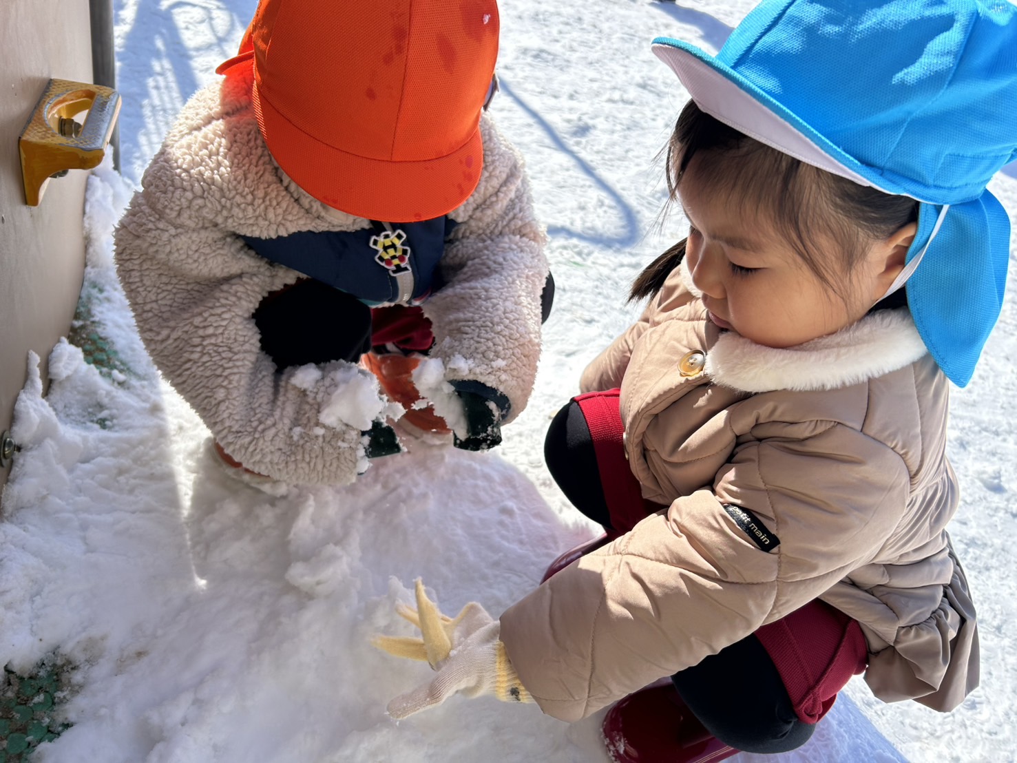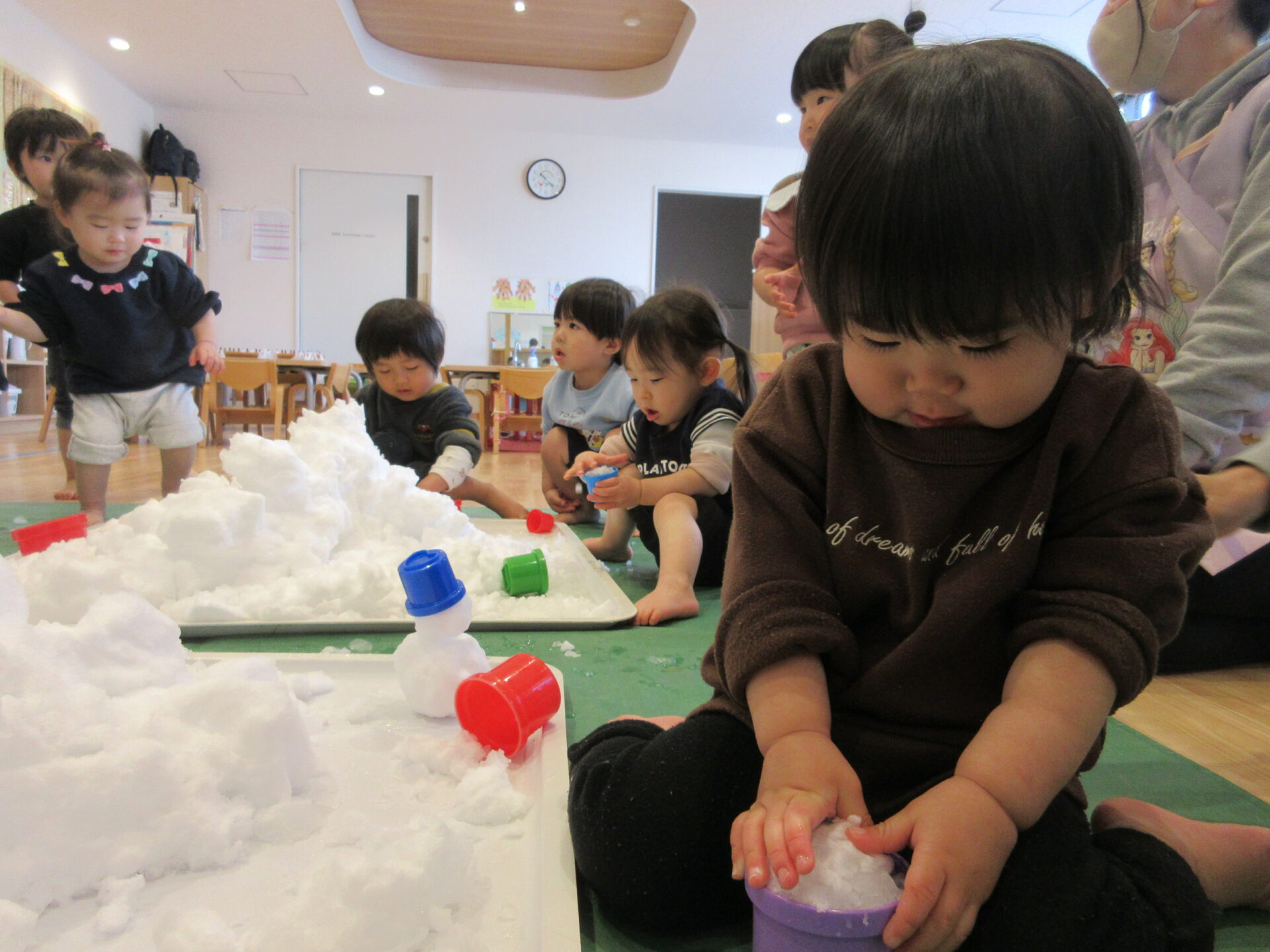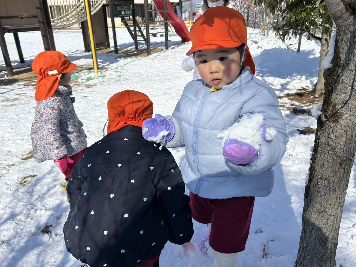 保育教諭と一緒に小さなゆきだるまを作ったり、「つめたっ!😆」と言ったりしながら楽しみました!