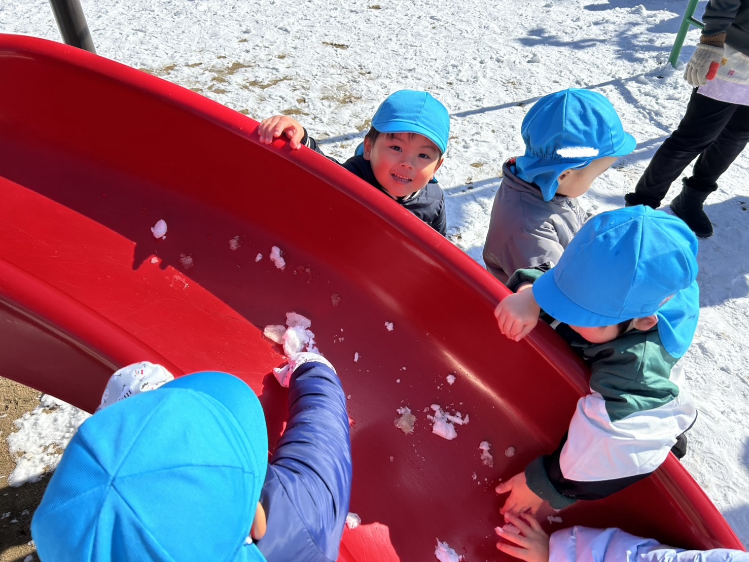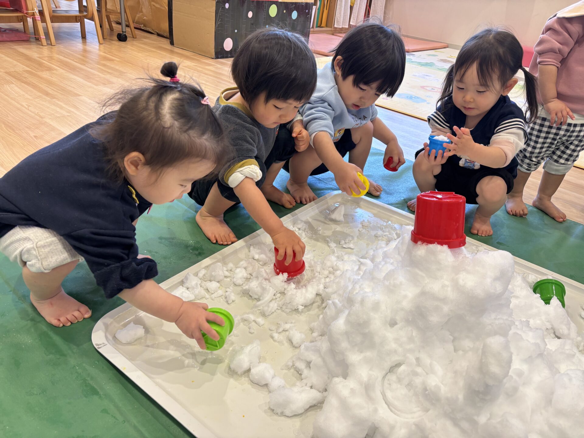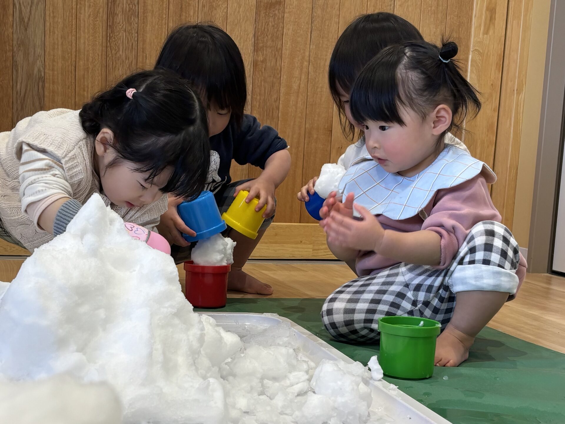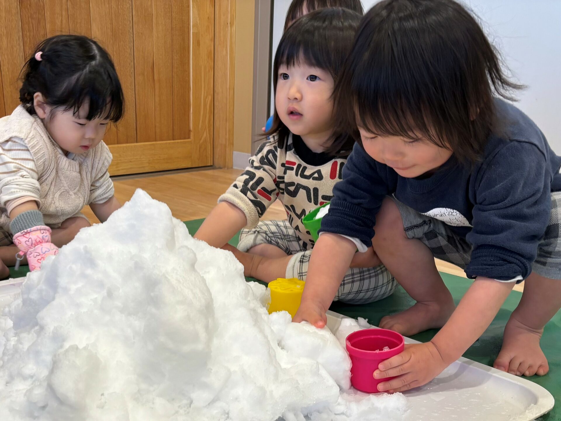 保育教諭と一緒に小さなゆきだるまを作ったり、「つめたっ!😆」と言ったりしながら楽しみました!