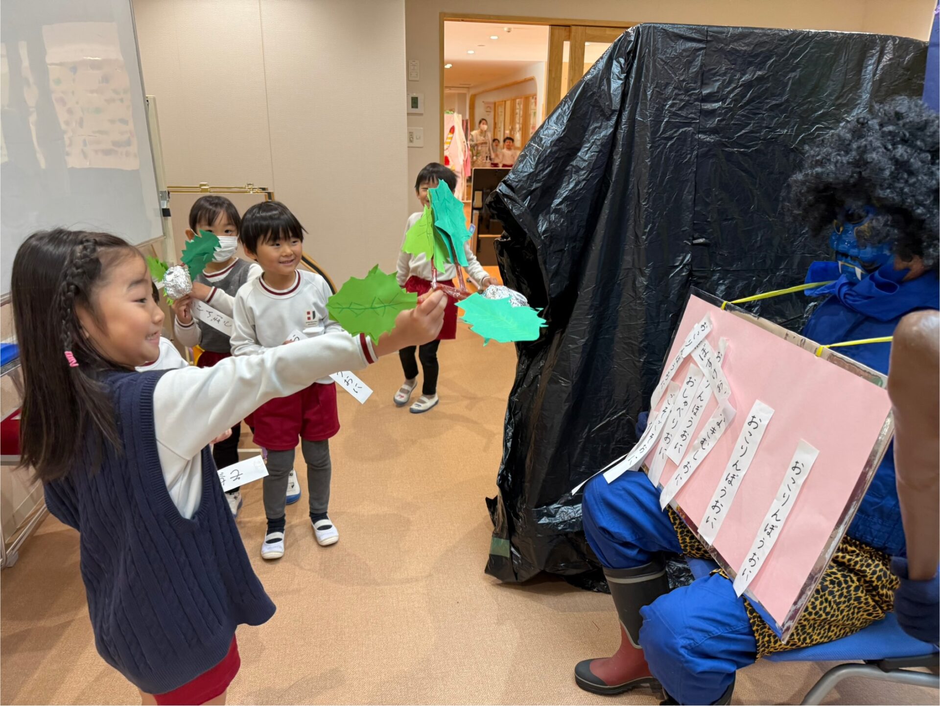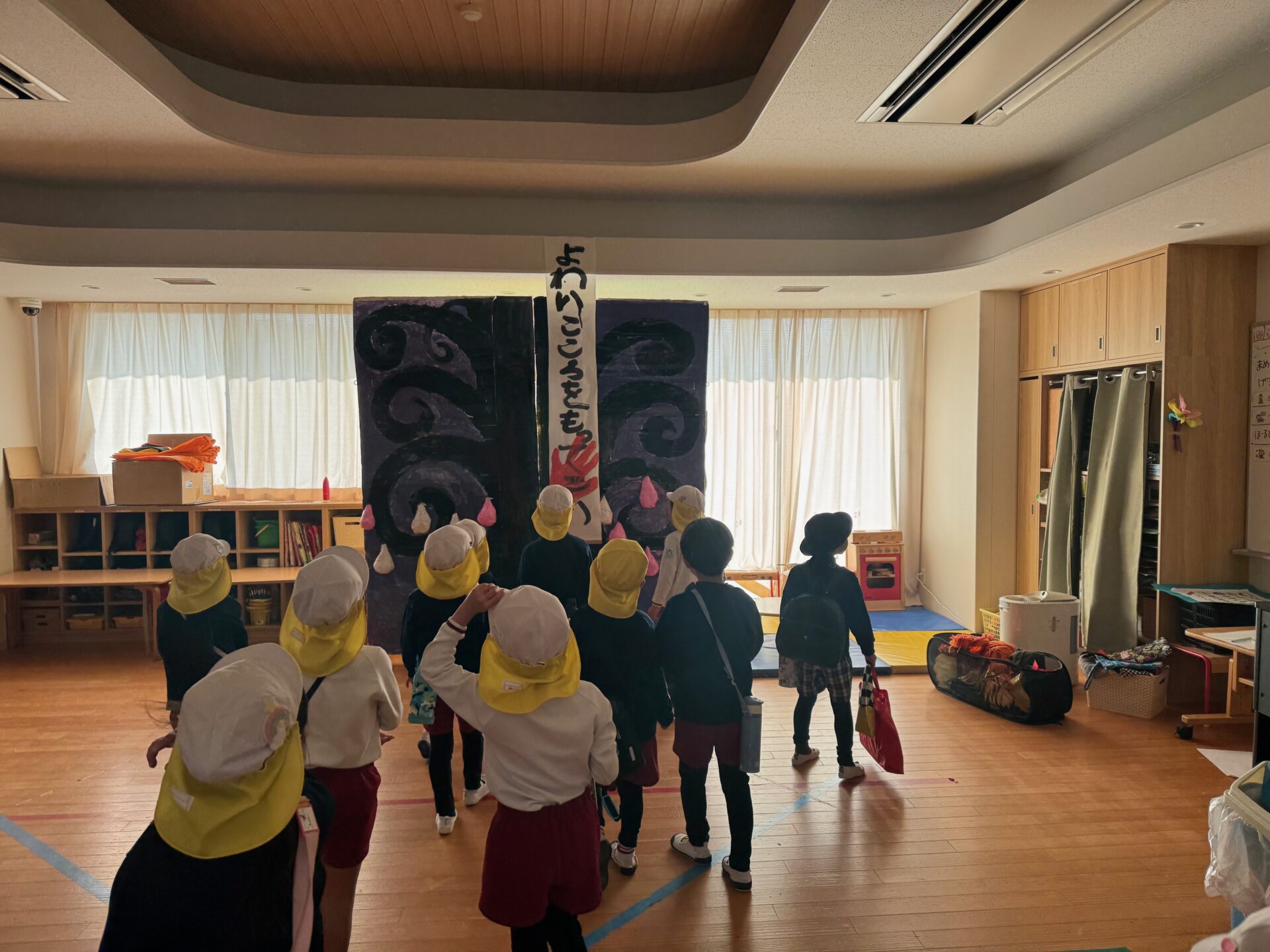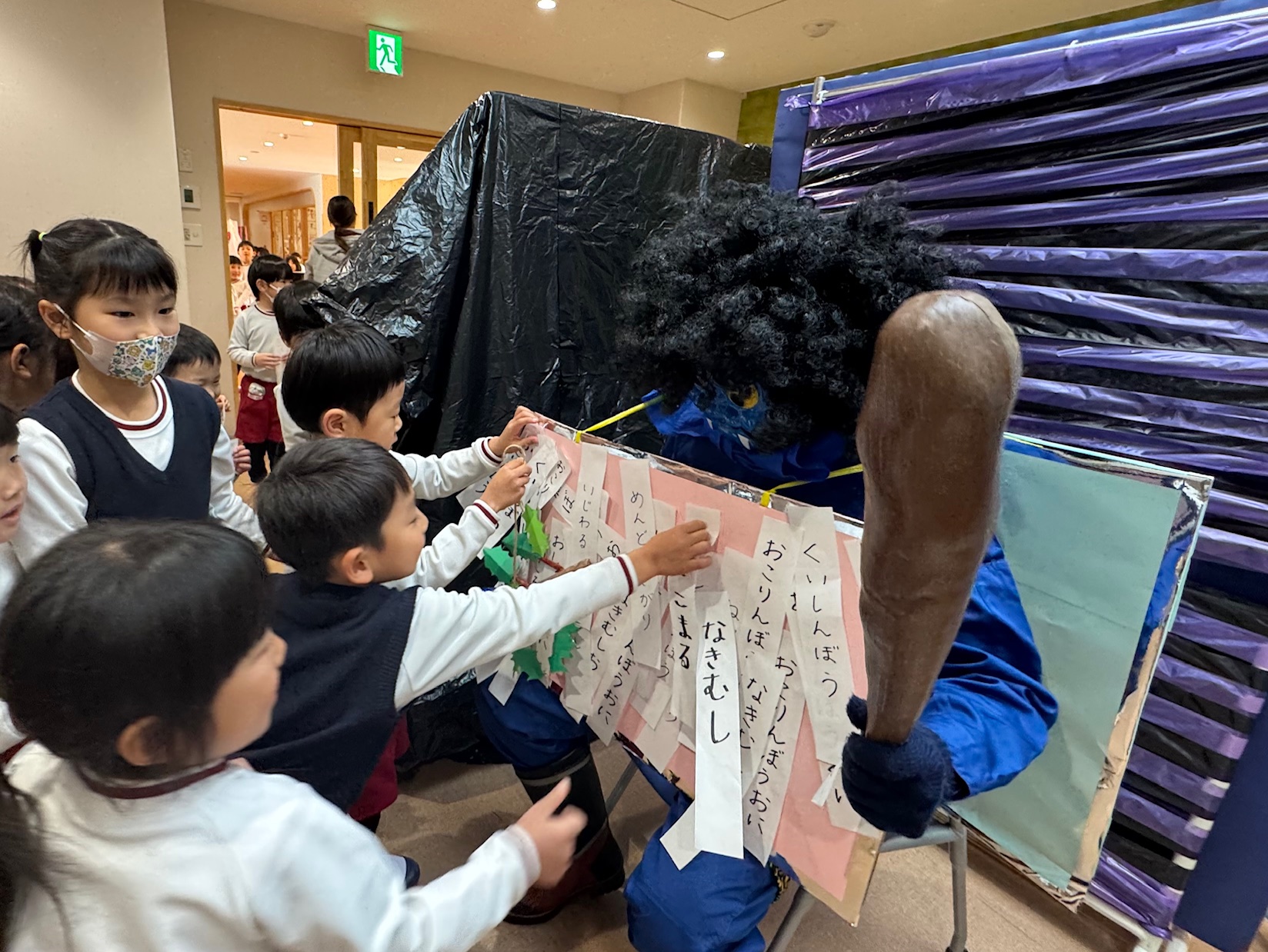 鬼が待ち構える部屋に入り、自分の弱い心を鬼に貼り付けた子どもたち。