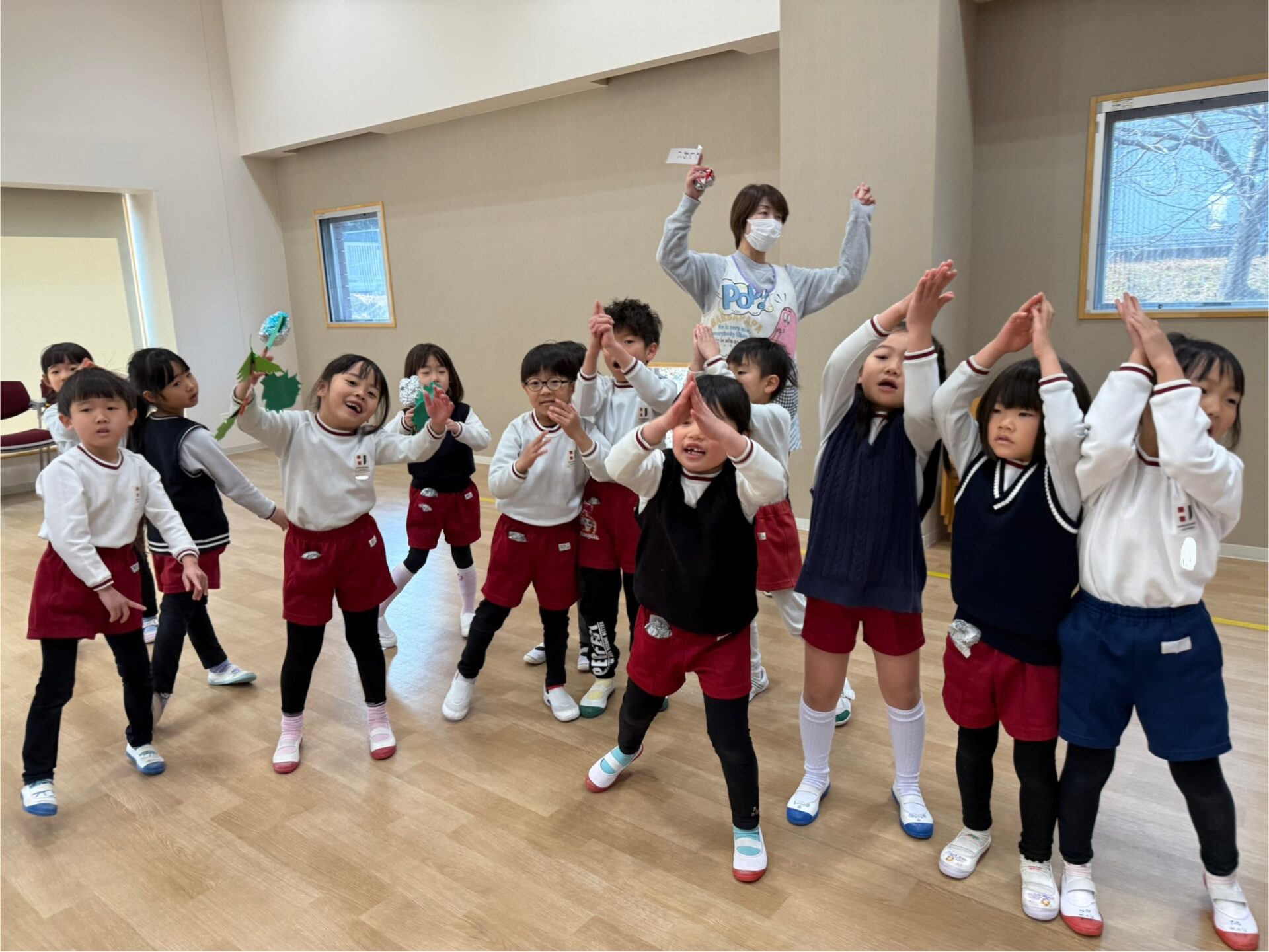 みんなで「まめまき」の歌を歌いながら、春が来る楽しみを一緒に味わいました。
