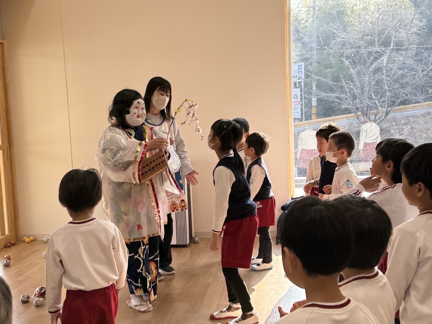 みんなで「まめまき」の歌を歌いながら、春が来る楽しみを一緒に味わいました。
