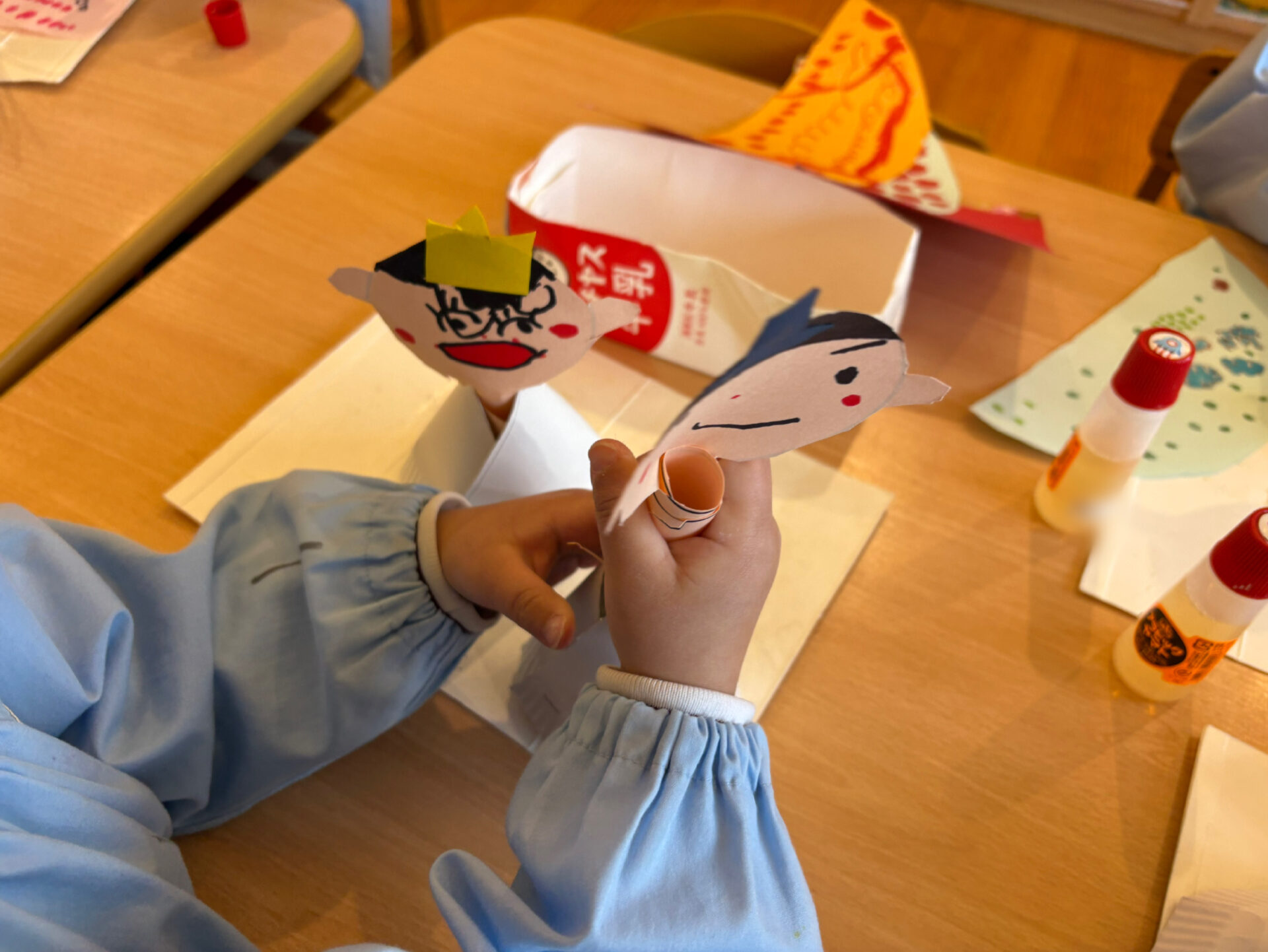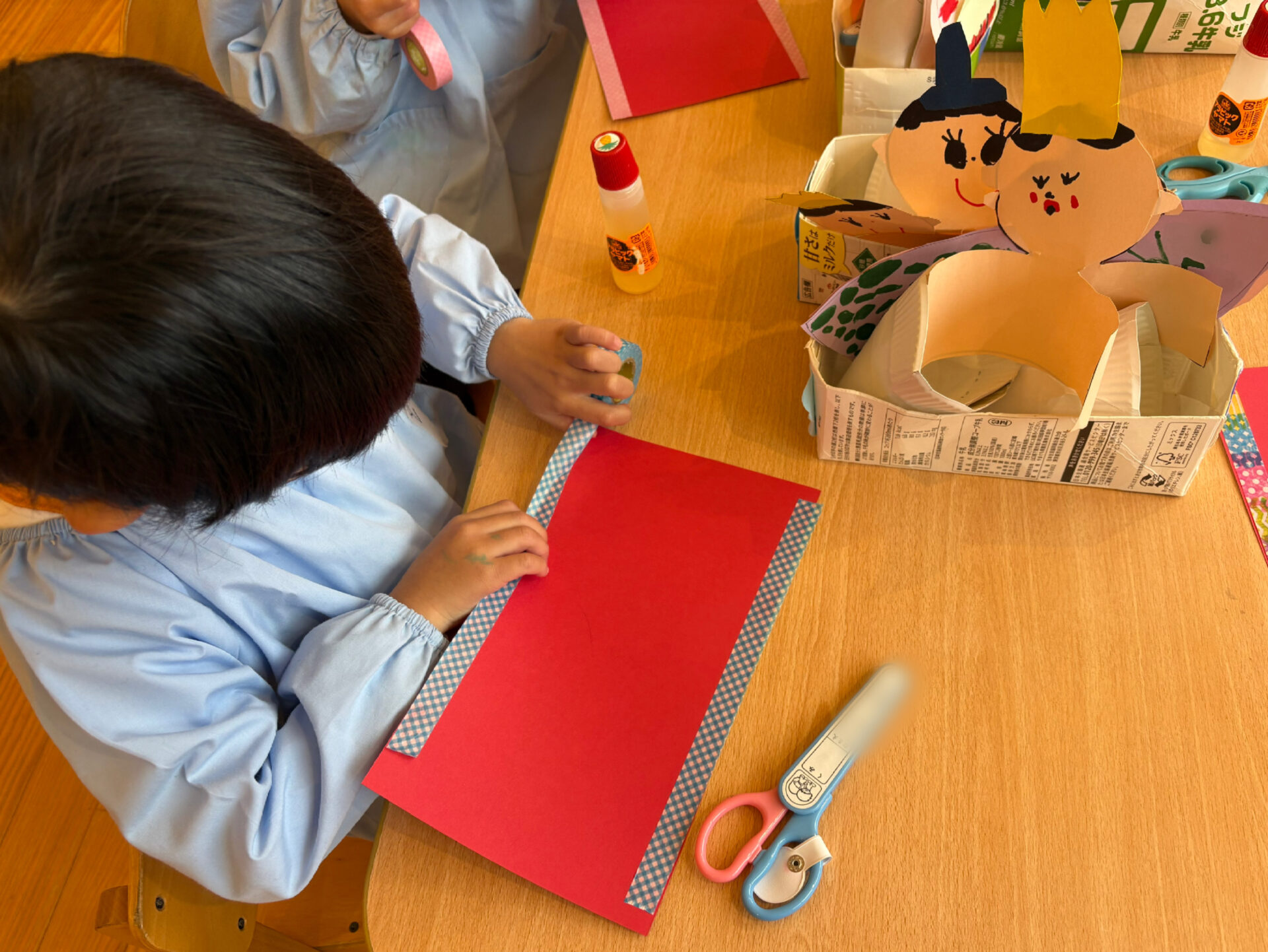 次は、はさみ・鉛筆・ マジック・のりなど様々な道具を使い、男雛・女雛のお顔も表情豊かに作っていきます✨