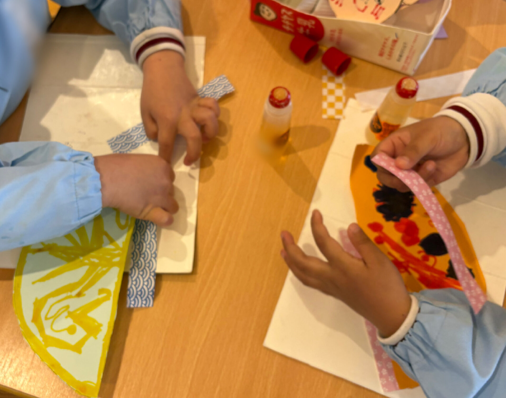 次は、はさみ・鉛筆・ マジック・のりなど様々な道具を使い、男雛・女雛のお顔も表情豊かに作っていきます✨