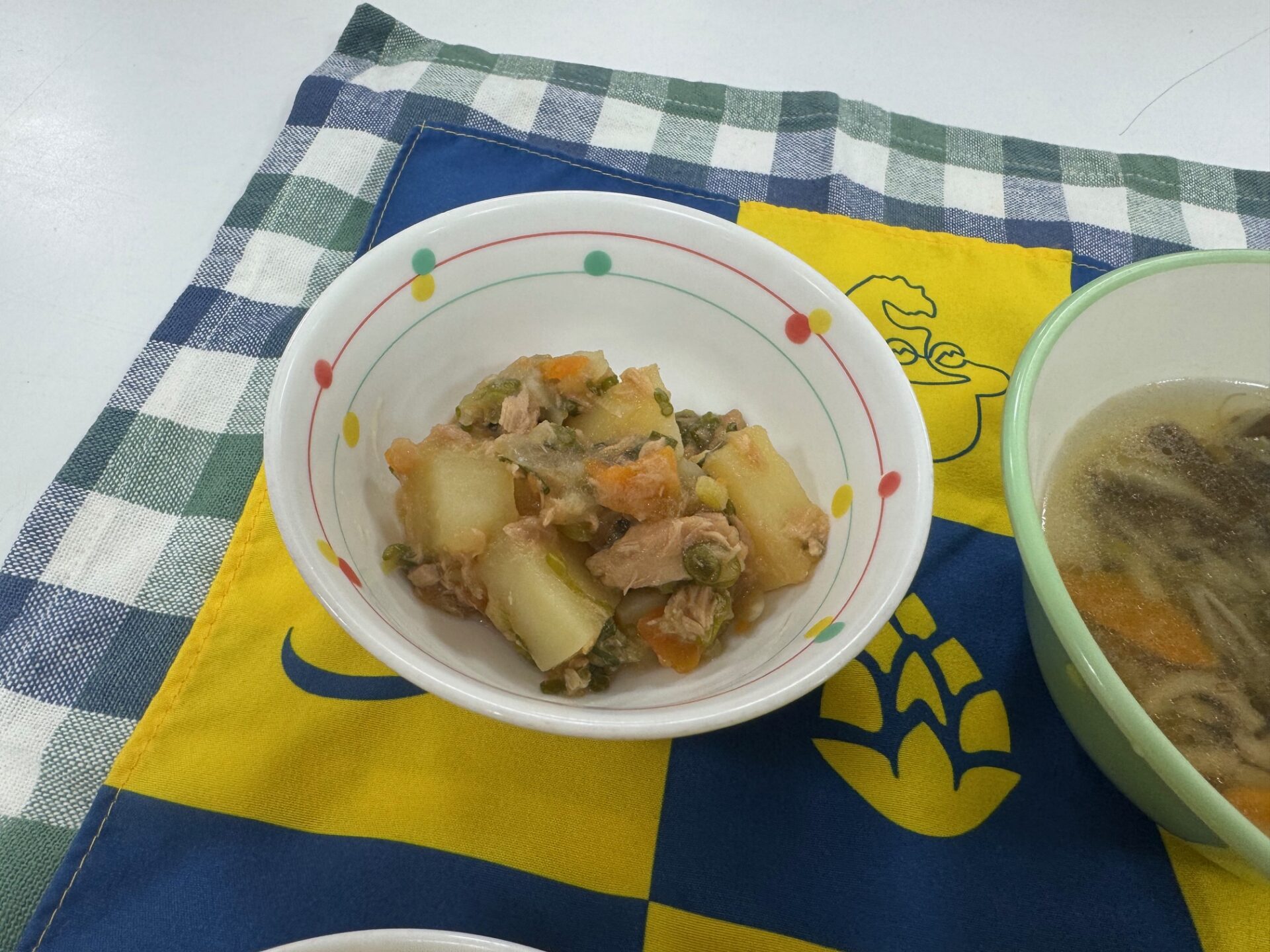 【椎茸ご飯 じゃが芋とツナの煮物 おかか納豆和え わかめスープ】