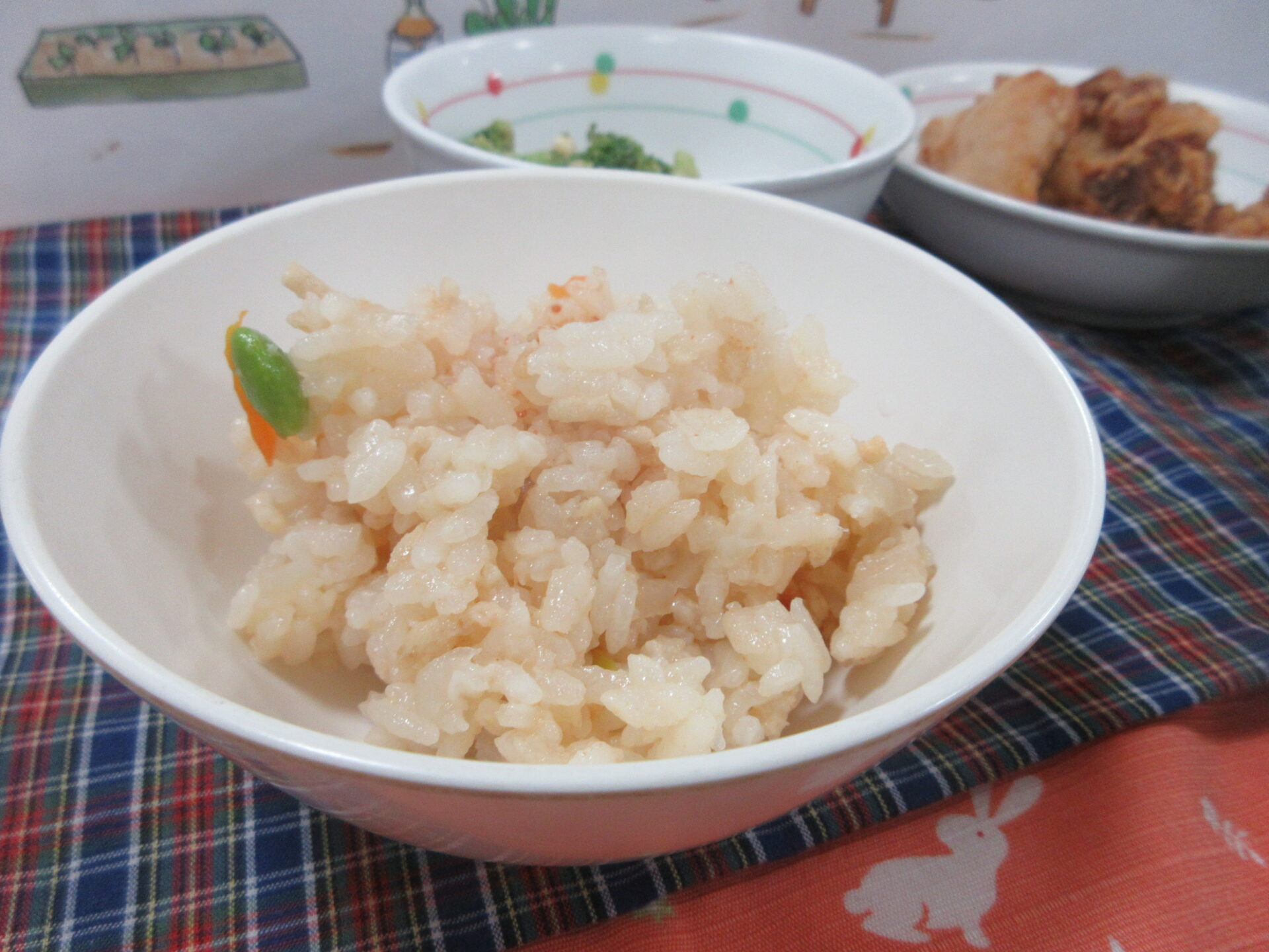 【チキンライス(白) 鶏唐揚げ 🥦ブロッコリー豆乳チーズサラダ 豆乳シチュー】
