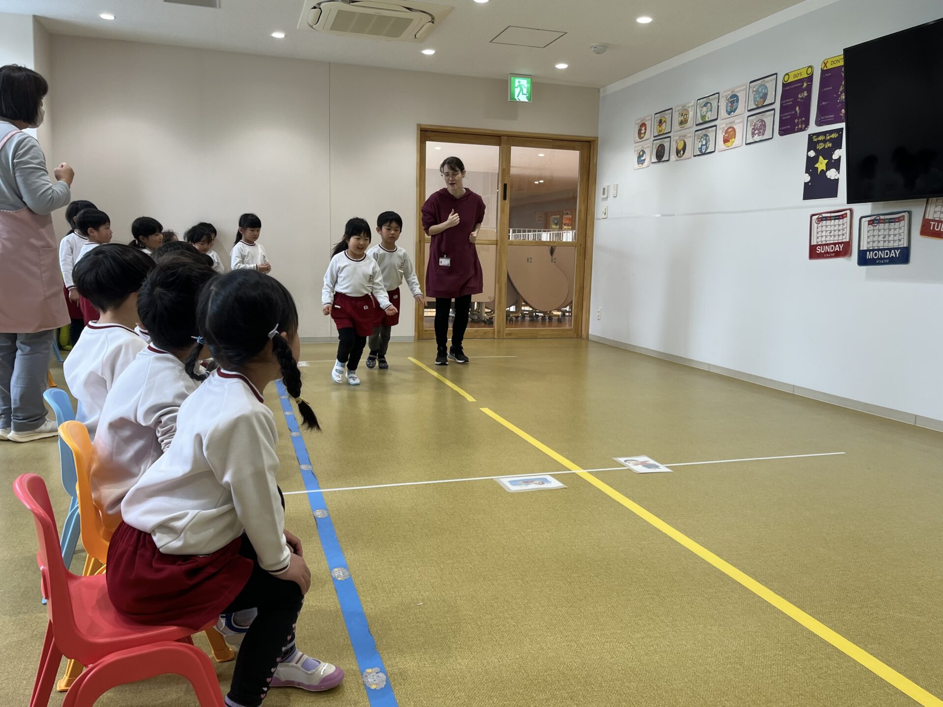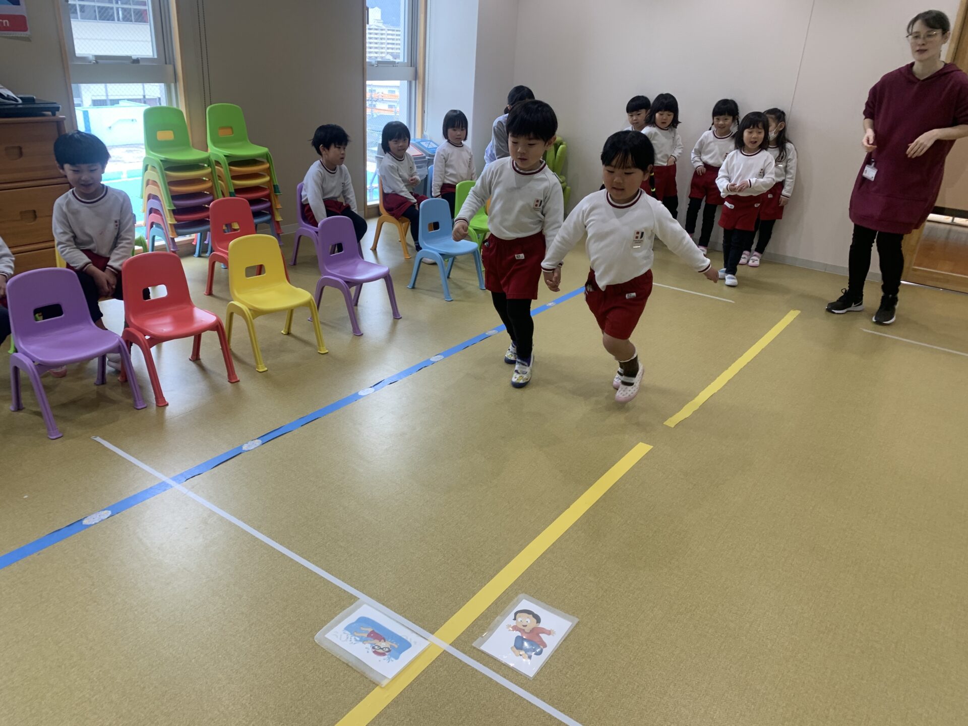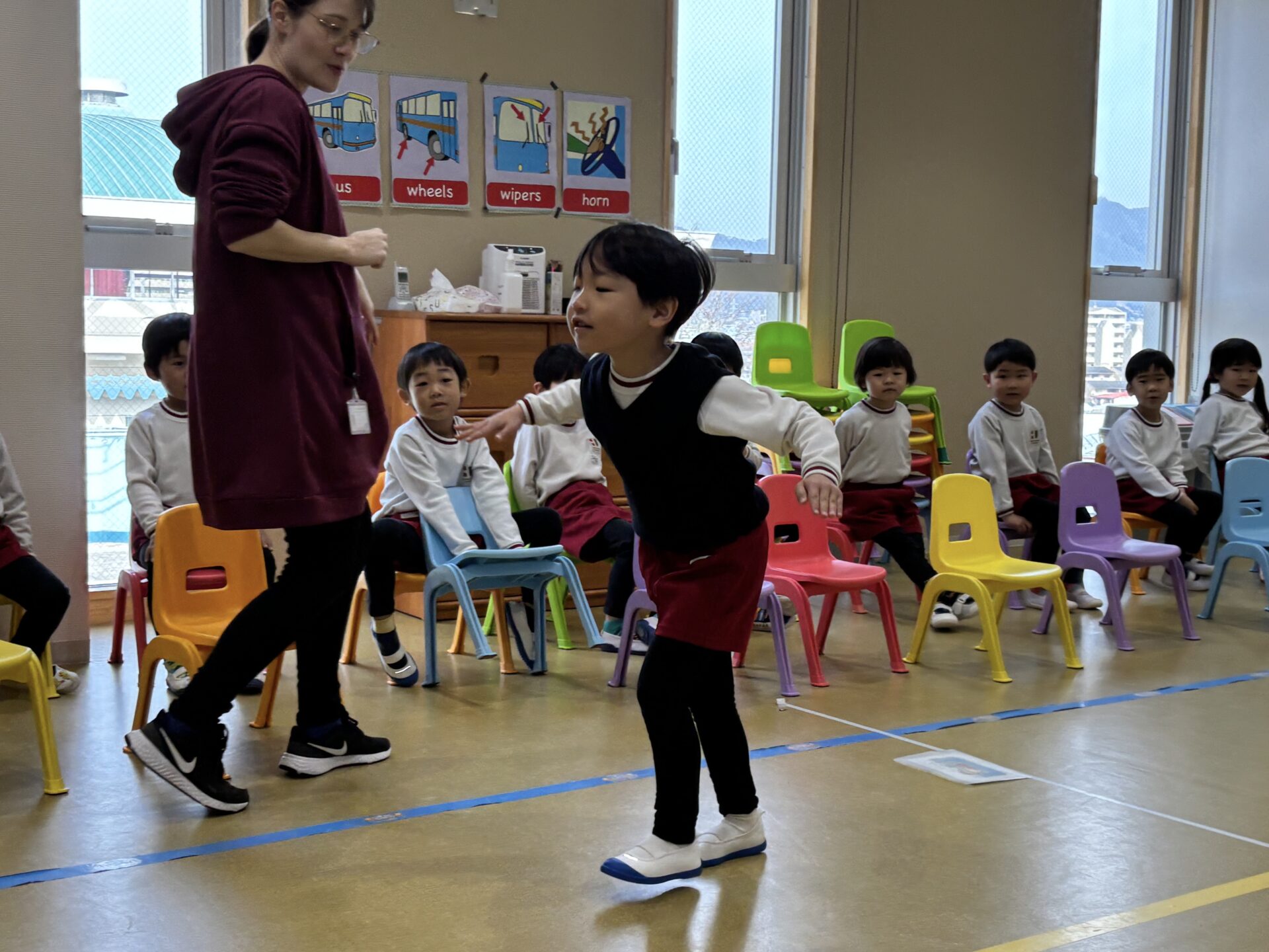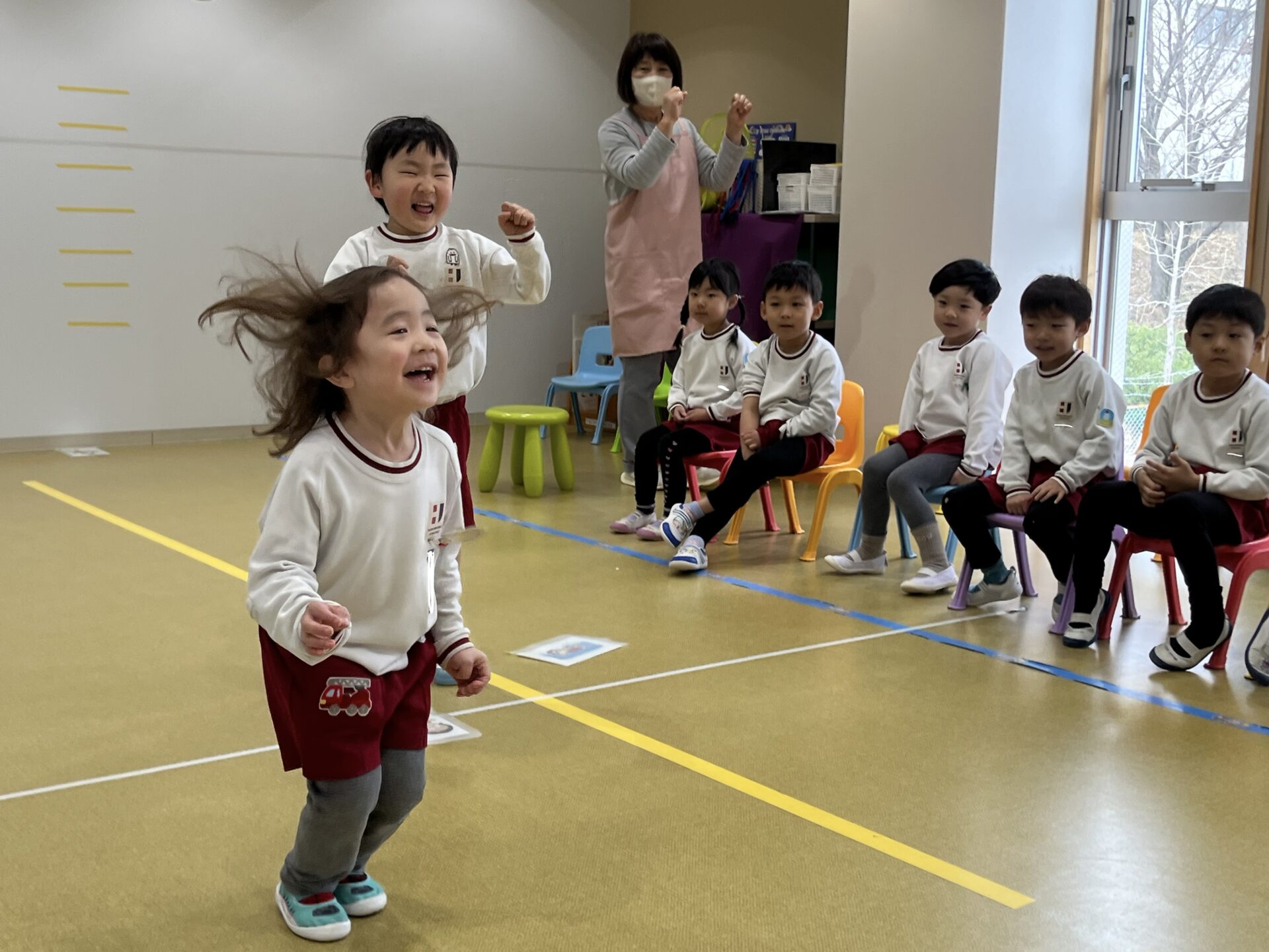 自信たっぷりにどんどん進むお友だちもいれば、少し恥ずかしそうにしながらも一生懸命チャレンジするお友だちもいました。みんなそれぞれ、とてもよく頑張っていました!