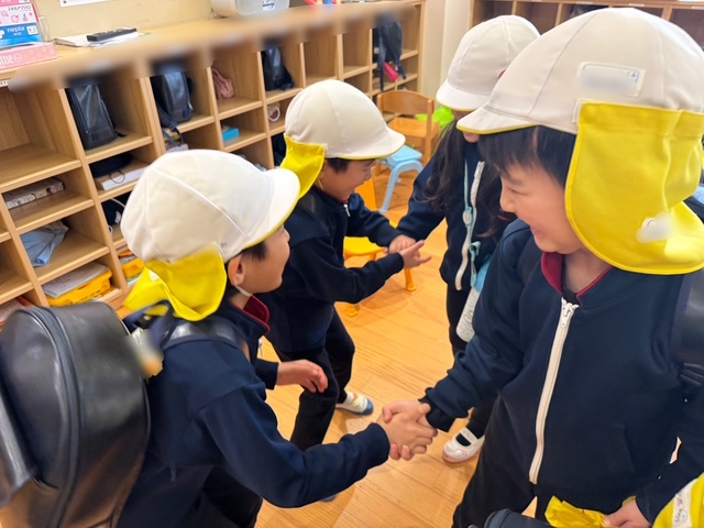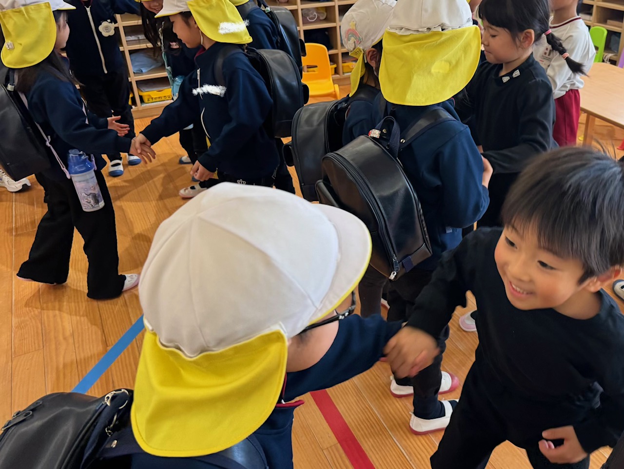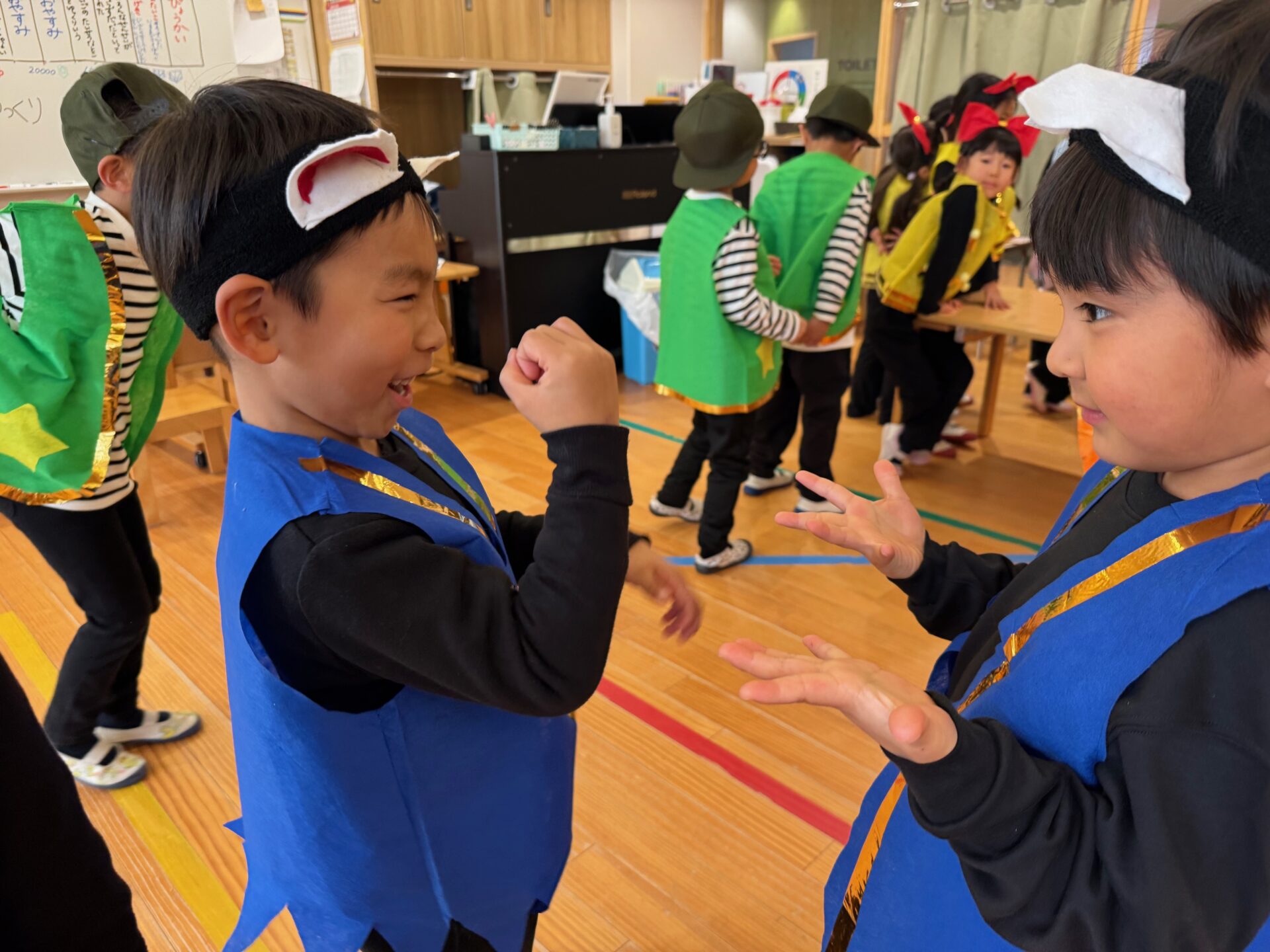 保育室に戻って「楽しかったね!また(発表会)やりたいね!!」とねぎらいあうStarクラス。