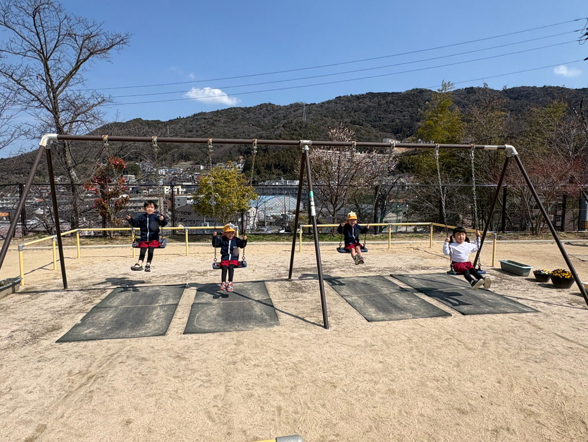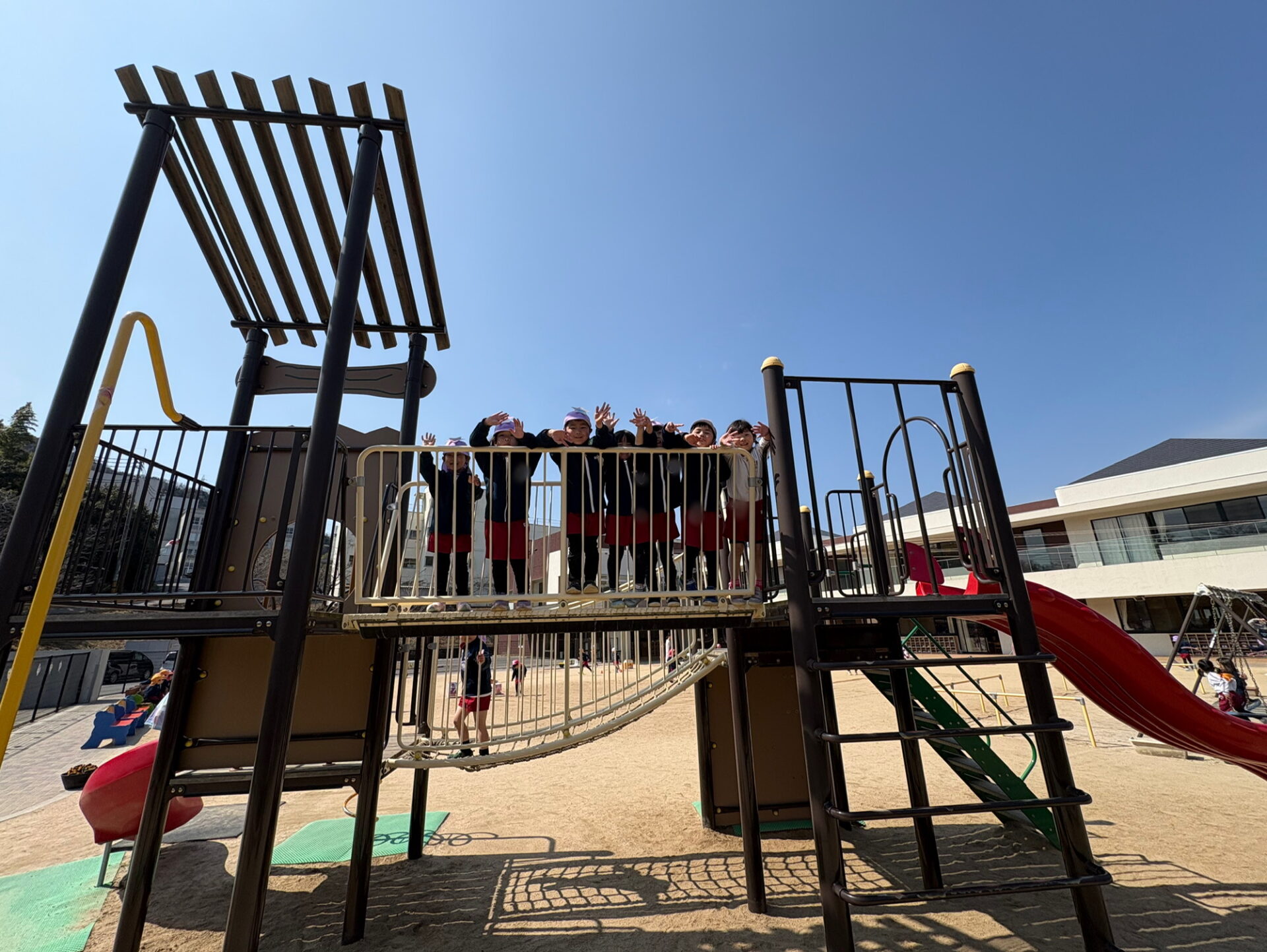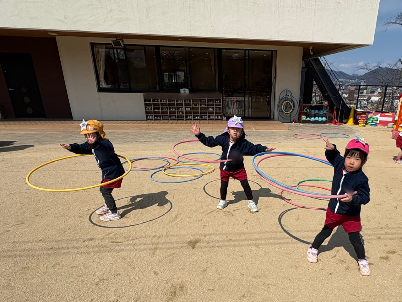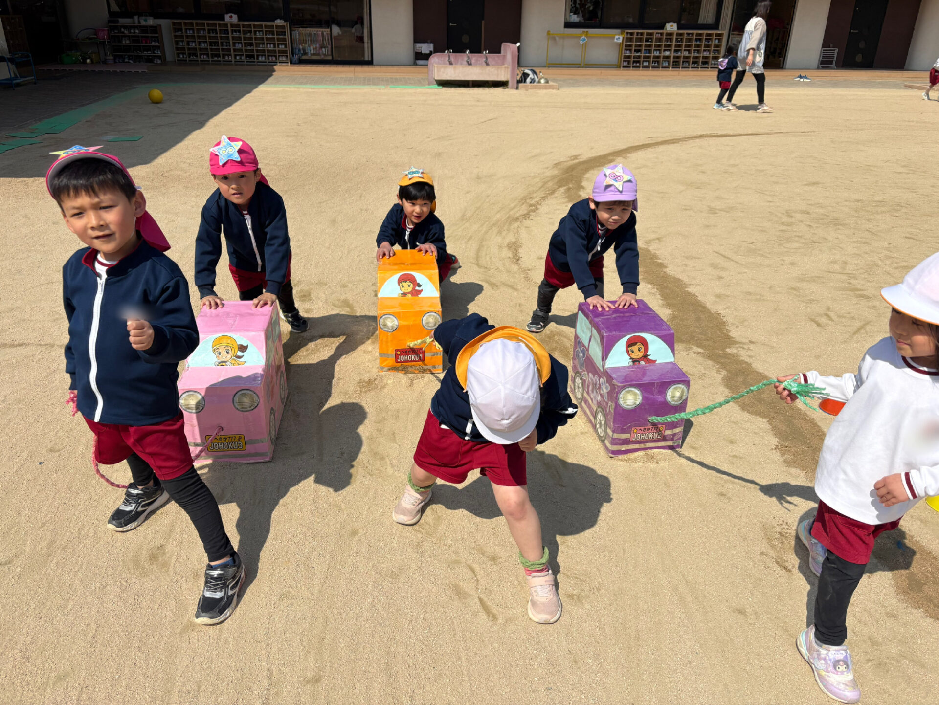 その後は戸外へ出て、リレーやレンジャーカー競走に挑戦。「がんばれー!」「まけないぞ!」と元気な声が園庭に響き、レンジャーになりきって思いきり体を動かして戸外遊びをしました😊💙