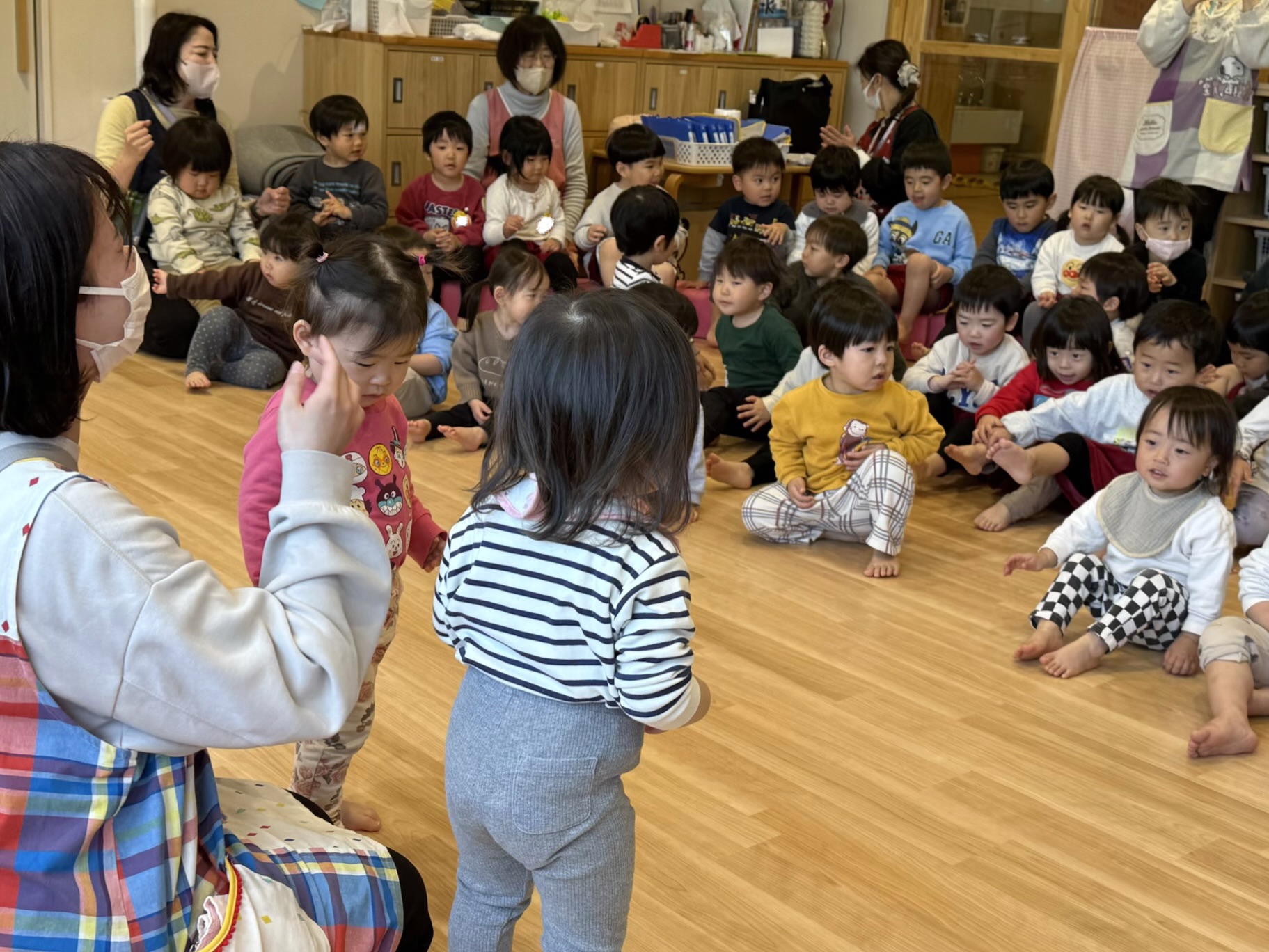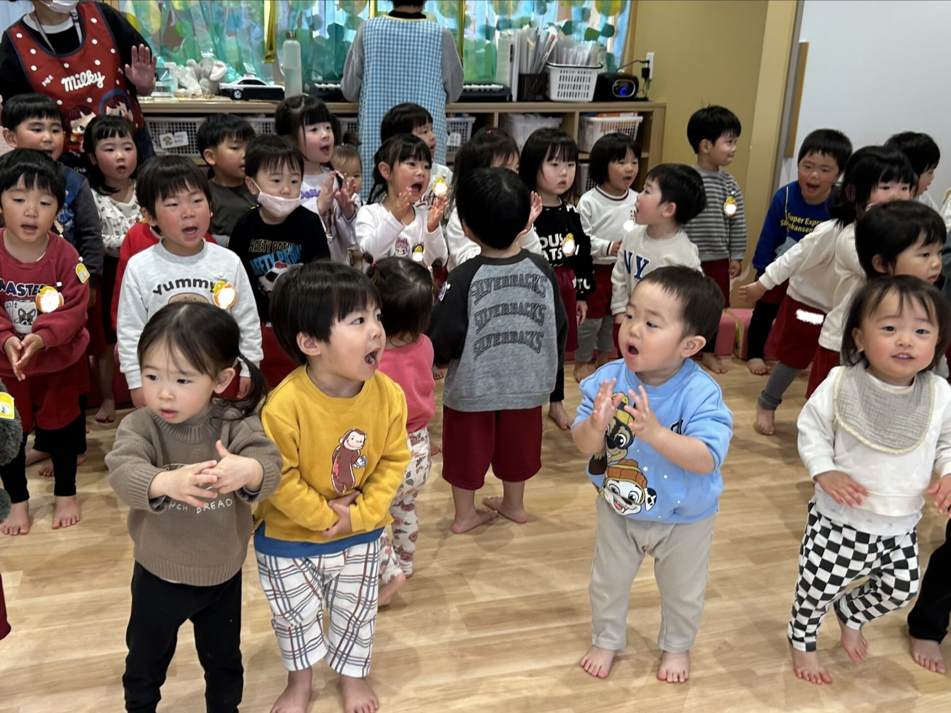 だるまさんのマネっこをしたり、元気な声で歌ったりしました!