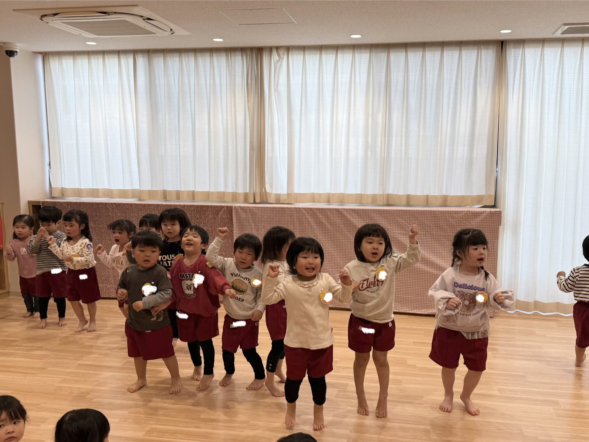 1年を通してたくさんのことができるようになり、友達の前で1クラスずつ歌やダンスなどを発表しました✨