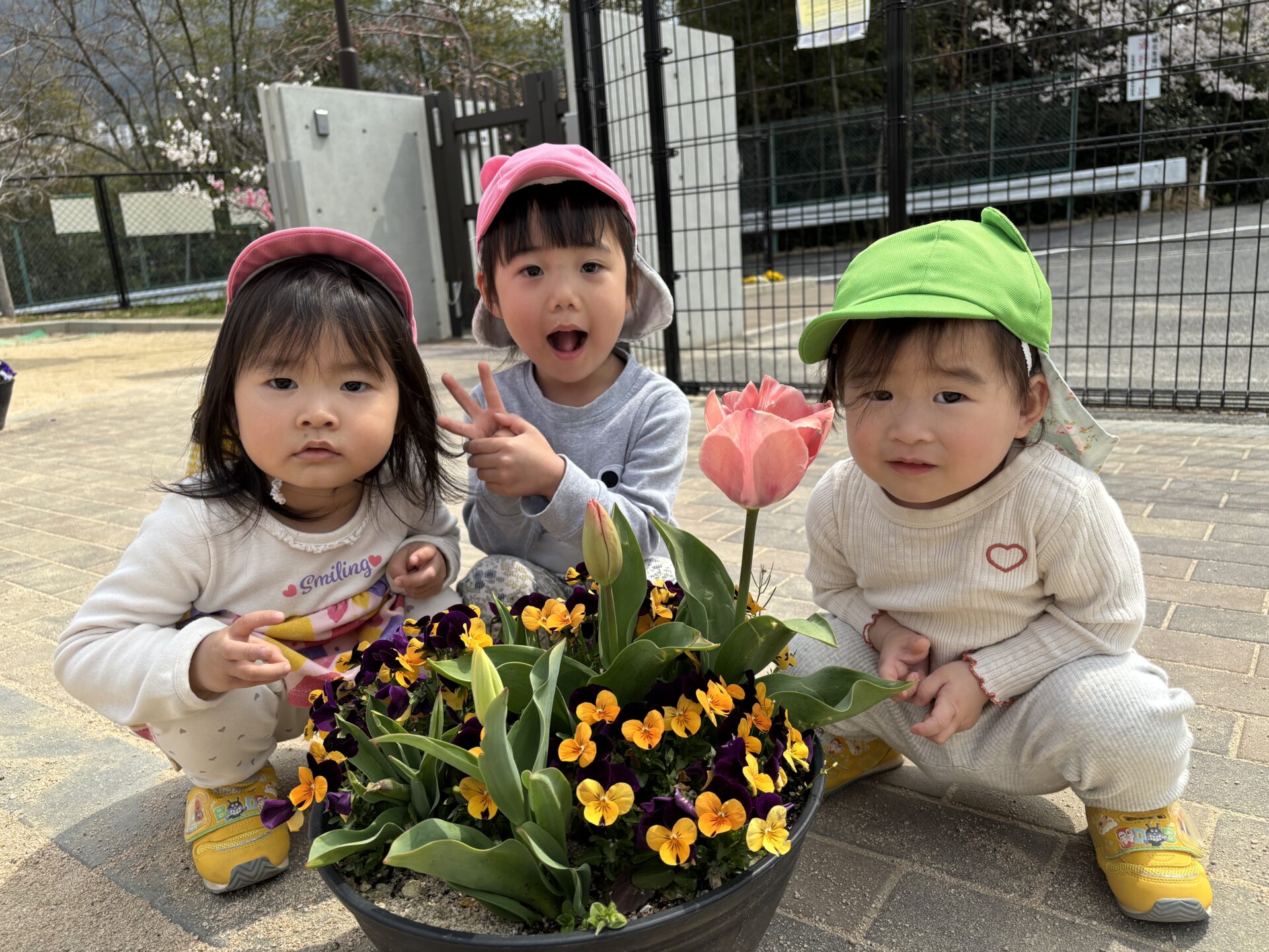 桜やチューリップが咲いているのを見て、「可愛いね!」と言う姿がありました🌷🌸