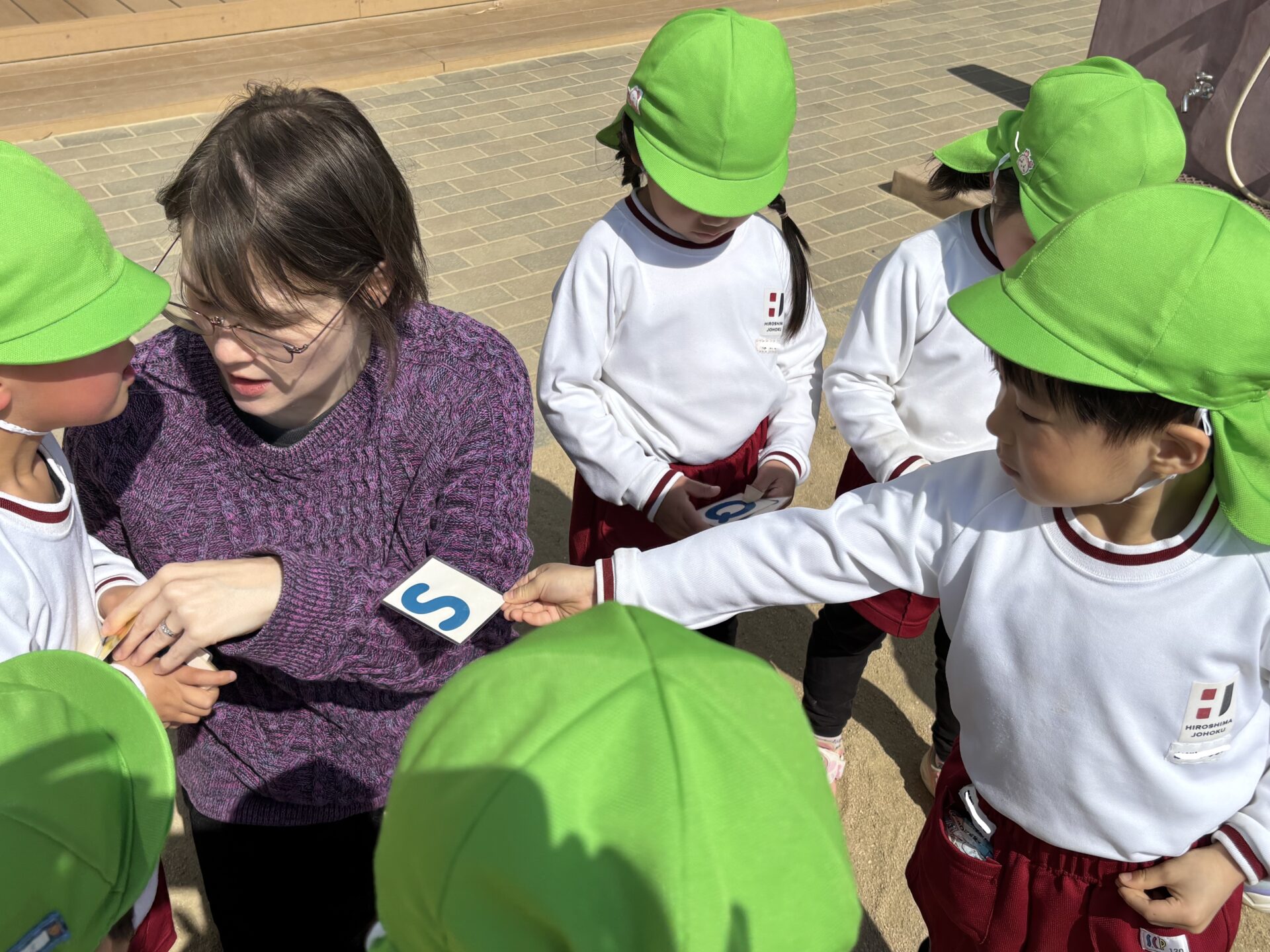 For Nensho’s last English Play we went outside for hide and seek. It was beautiful weather☀️ and it added to the excitement. After reviewing the alphabet one by one for the last time everyone closed their eyes and made like a roly-poly🫣. Several alphabet cards were hidden around the playground and on the count of 3 everyone went searching! Cards were found by benches, slides, trees, under the jungle gym, and all around. Everyone’s smiling faces showed how much they were enjoying. See you next time as Nenchu!✨