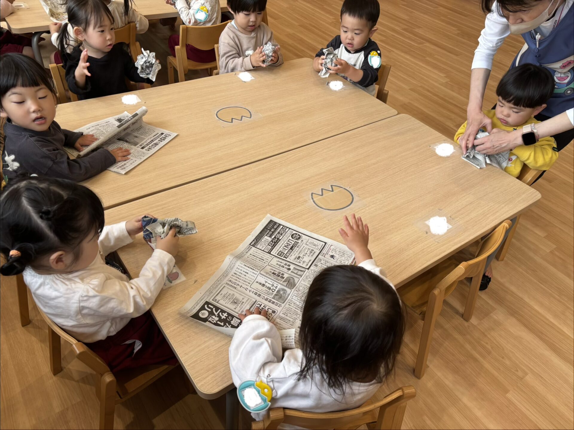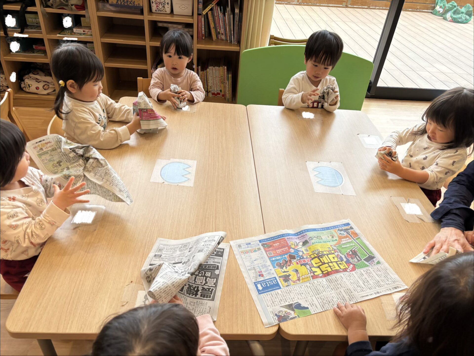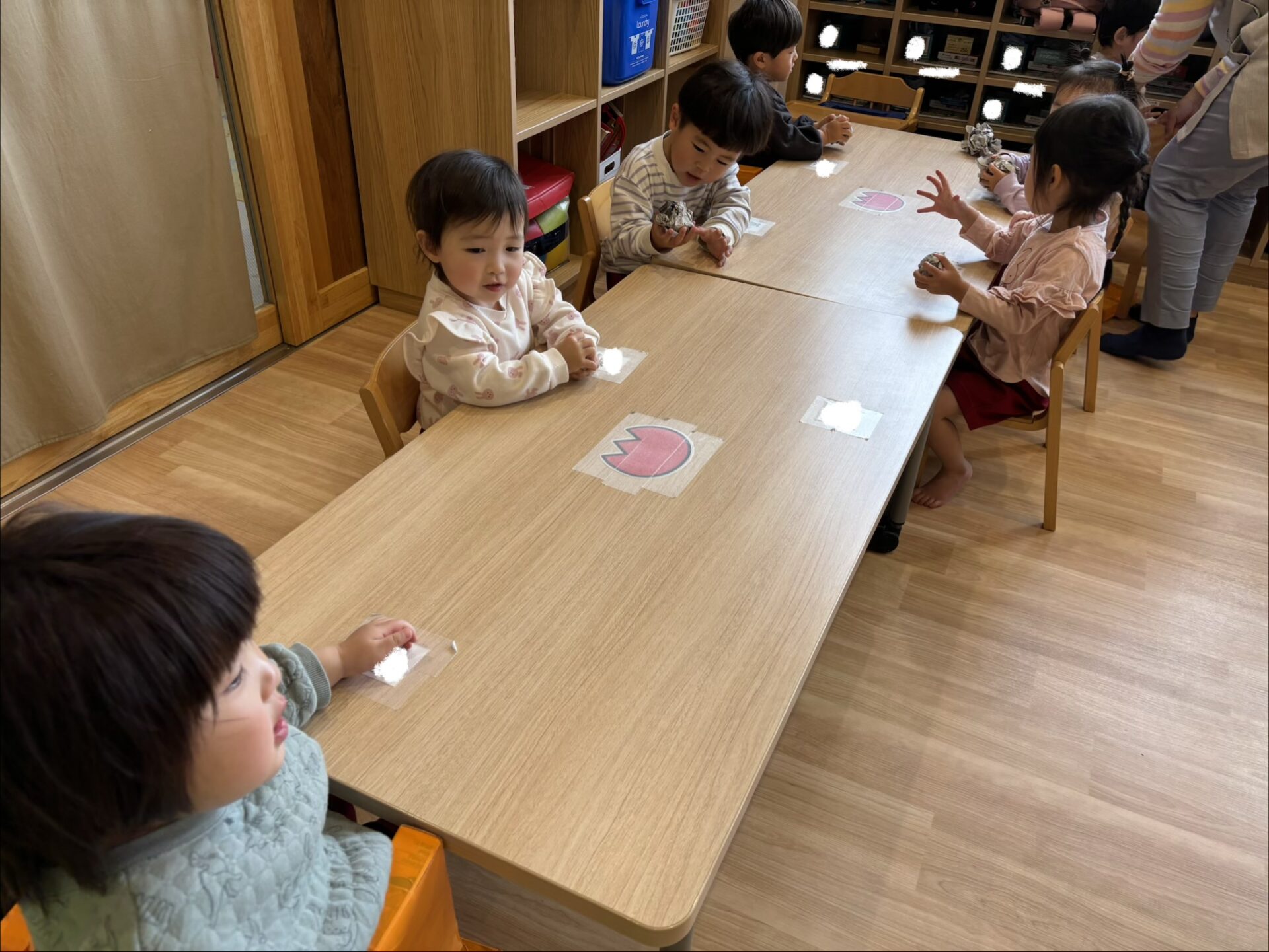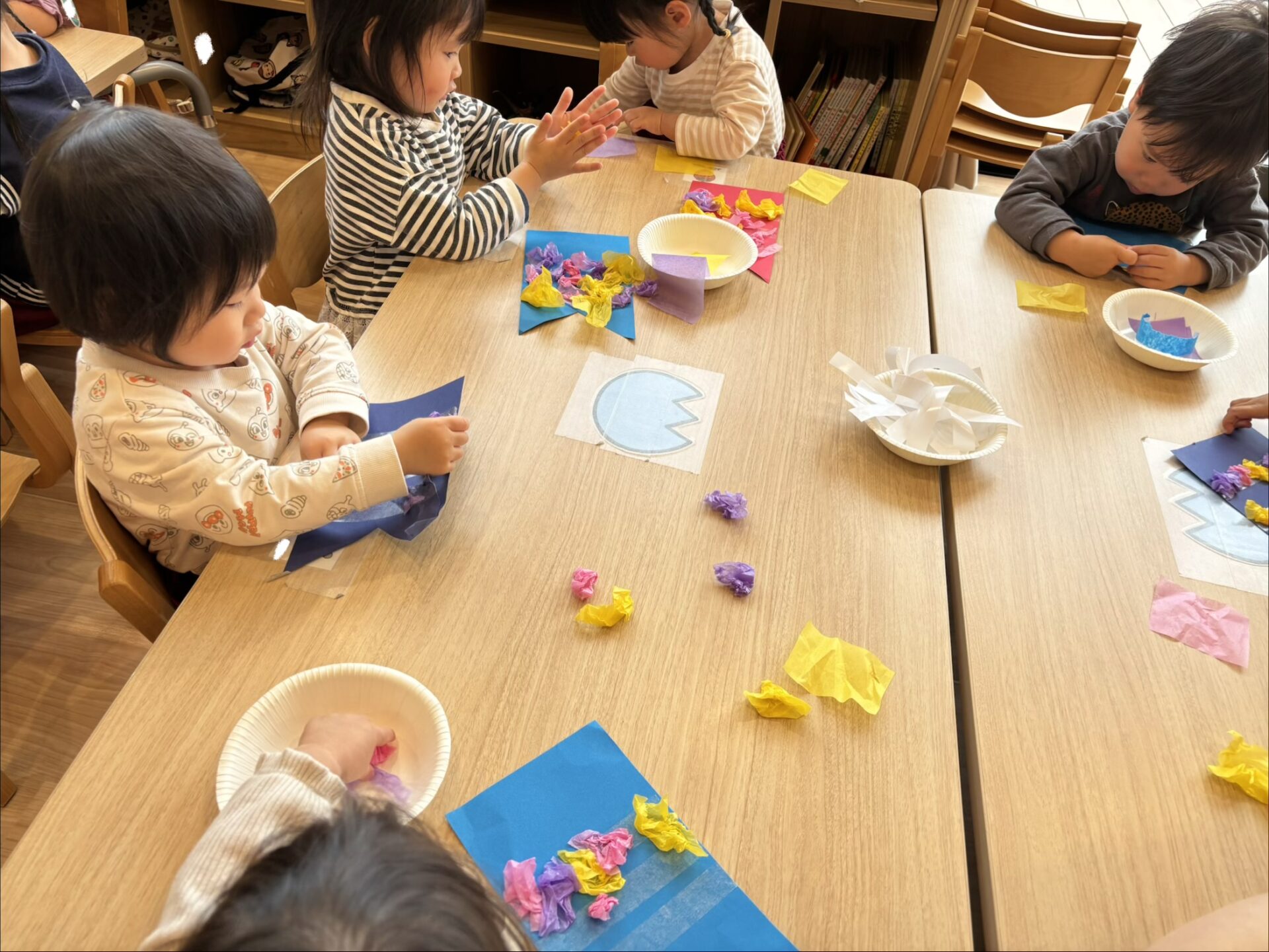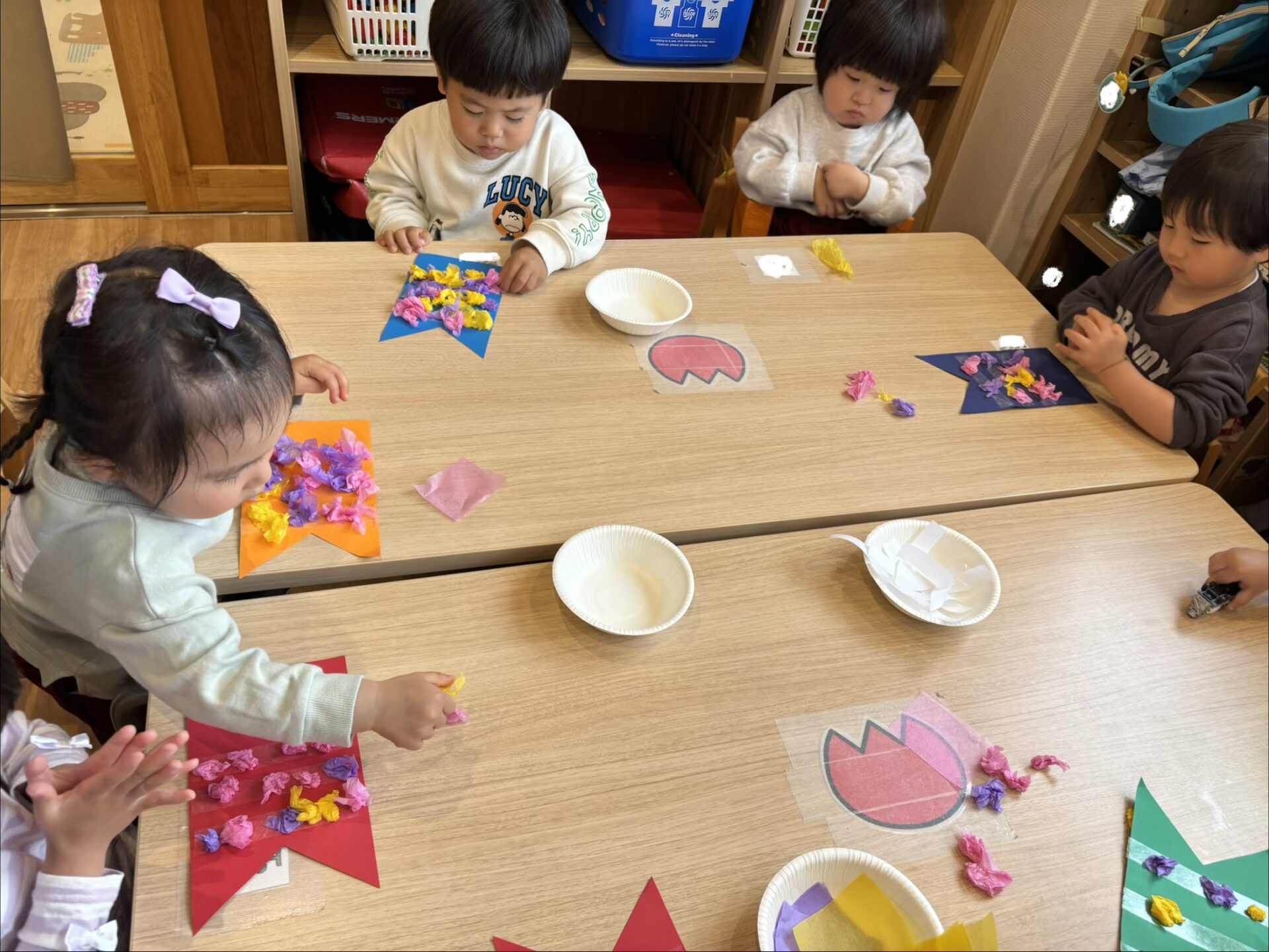 花紙を丸めて「可愛くなった!」「見て見て!」と嬉しそうに見せてくれました✨