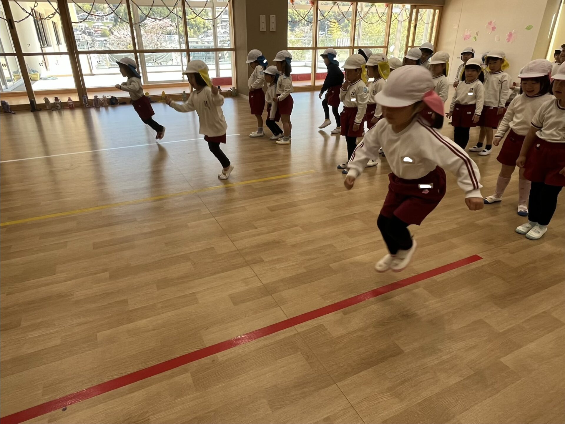今週は雨の降る日もありましたが、年長組全員でホールに集まって《リズムジャンプ》をすることでしっかり身体を動かすことができました🌟2回目のリズムジャンプは少し難しいステップもありましたが、先生たちの動きをよく見て楽しく取り組む姿が見られました!リズムジャンプは全身を使うことでバランス感覚やリズム感が身につき、周りの友達と息を合わせて同じリズムで動くことで協調性が養われ楽しみながら運動能力を高めることができます😊