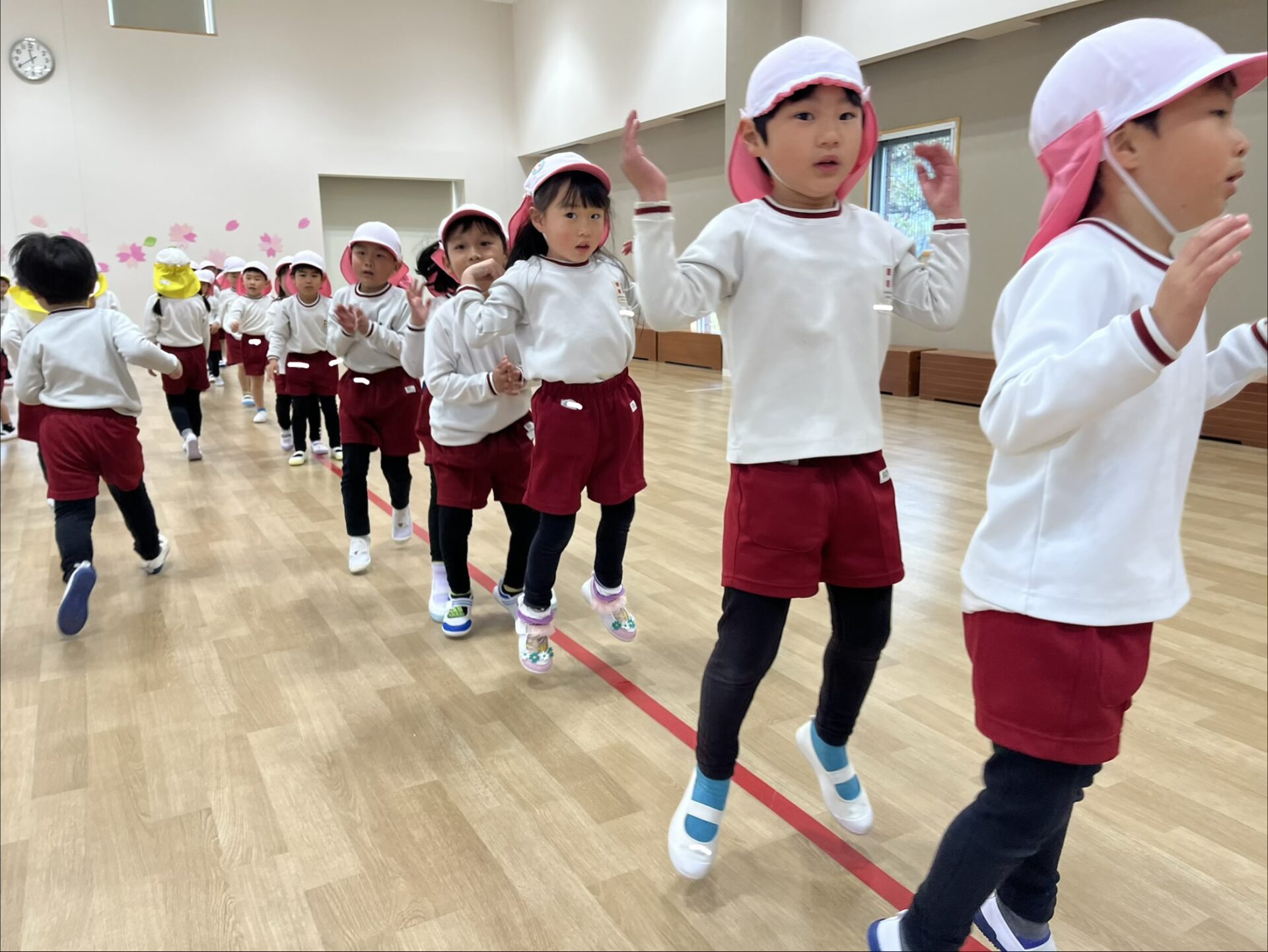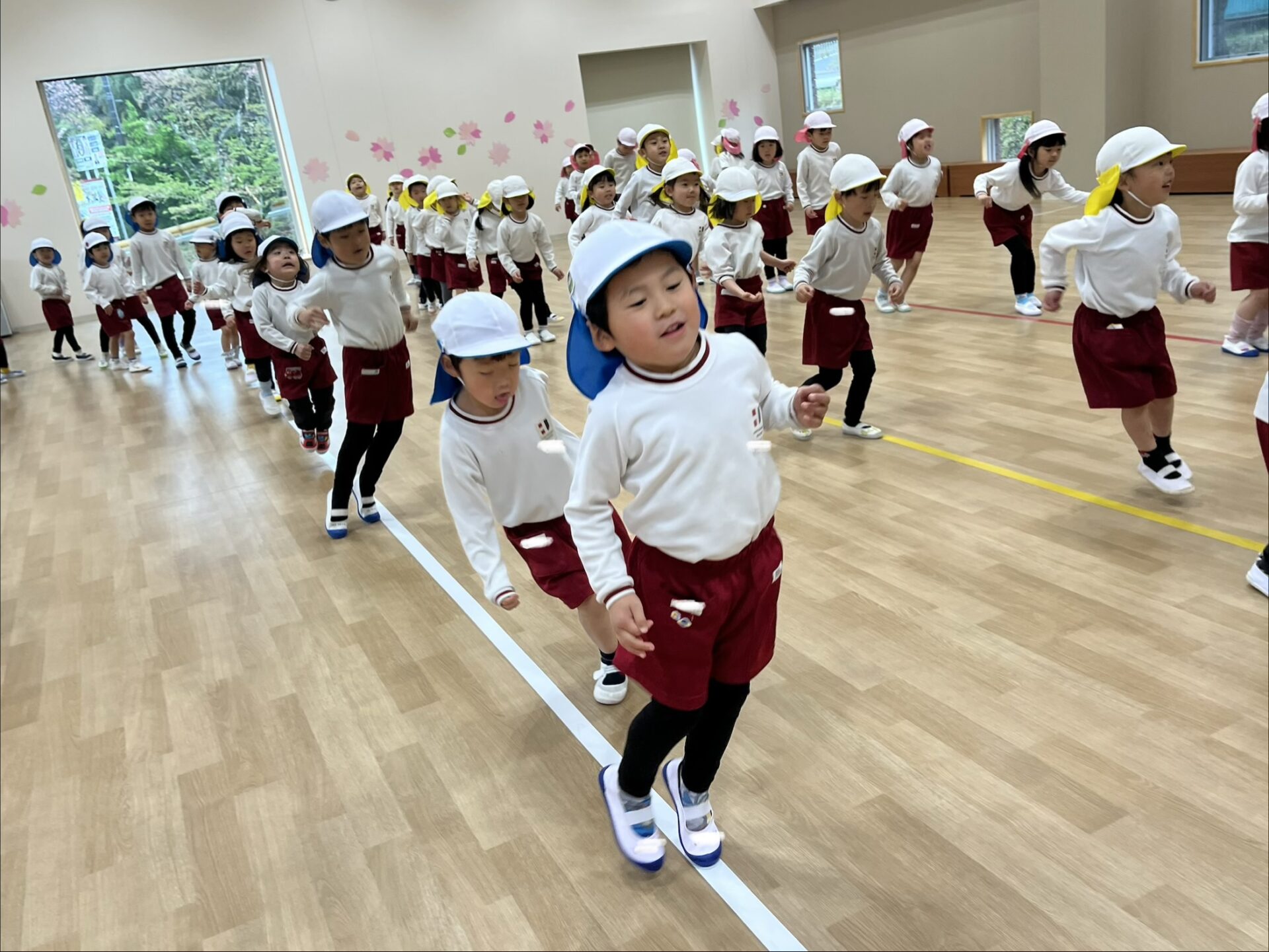 今週は雨の降る日もありましたが、年長組全員でホールに集まって《リズムジャンプ》をすることでしっかり身体を動かすことができました🌟2回目のリズムジャンプは少し難しいステップもありましたが、先生たちの動きをよく見て楽しく取り組む姿が見られました!リズムジャンプは全身を使うことでバランス感覚やリズム感が身につき、周りの友達と息を合わせて同じリズムで動くことで協調性が養われ楽しみながら運動能力を高めることができます😊