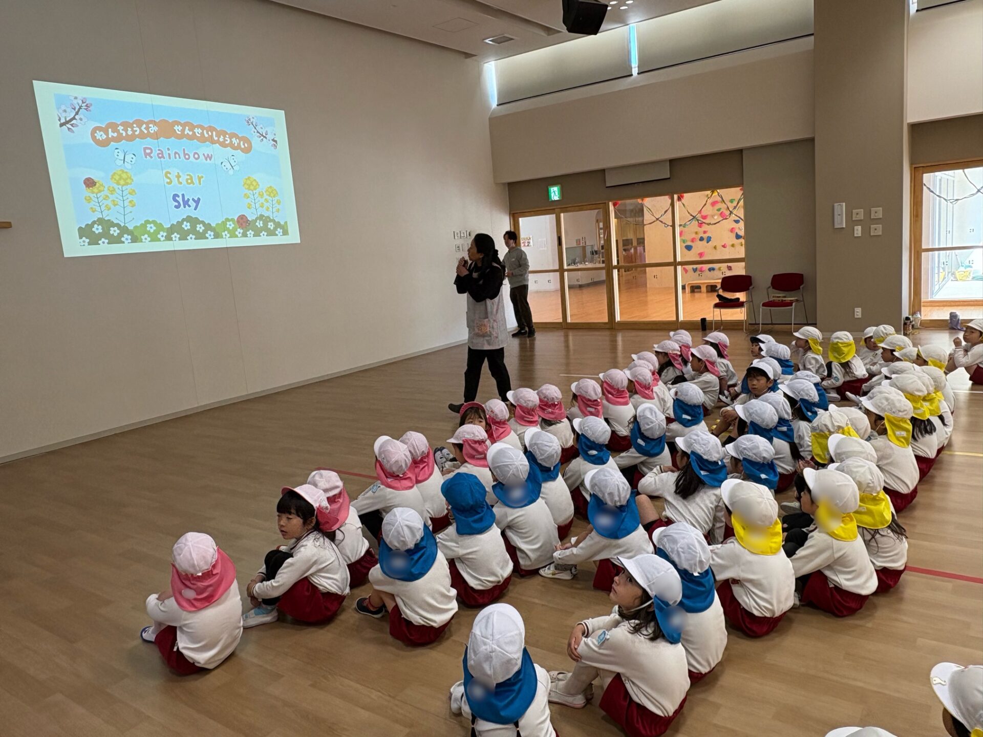 進級して1週間が経ちました!今週の活動の様子を紹介します🌟先生紹介では、先生が好きな事や得意な事を発表しました✨園児たちも「知ってる!」「やったことある!」と嬉しそうに見ていました💛